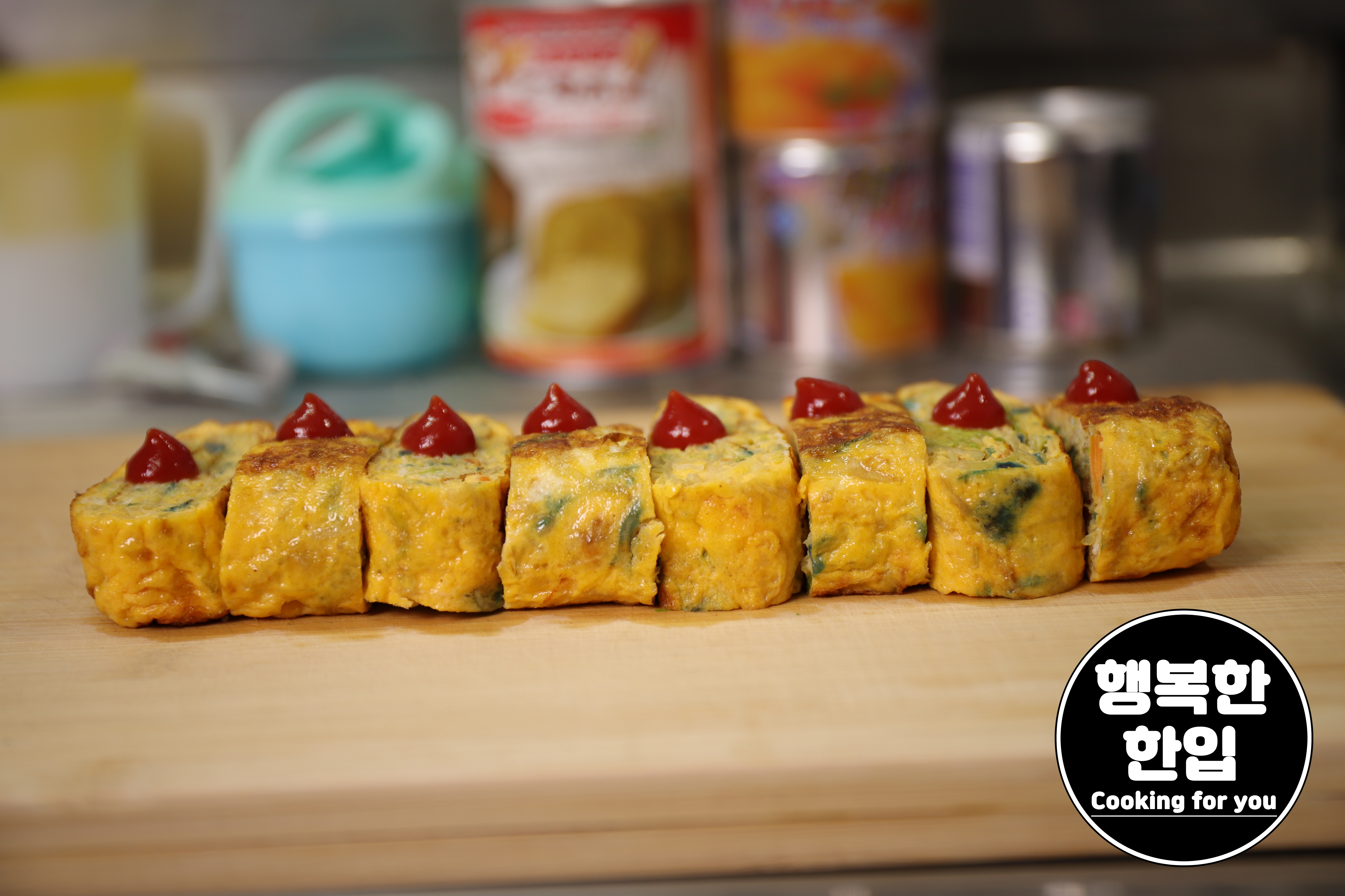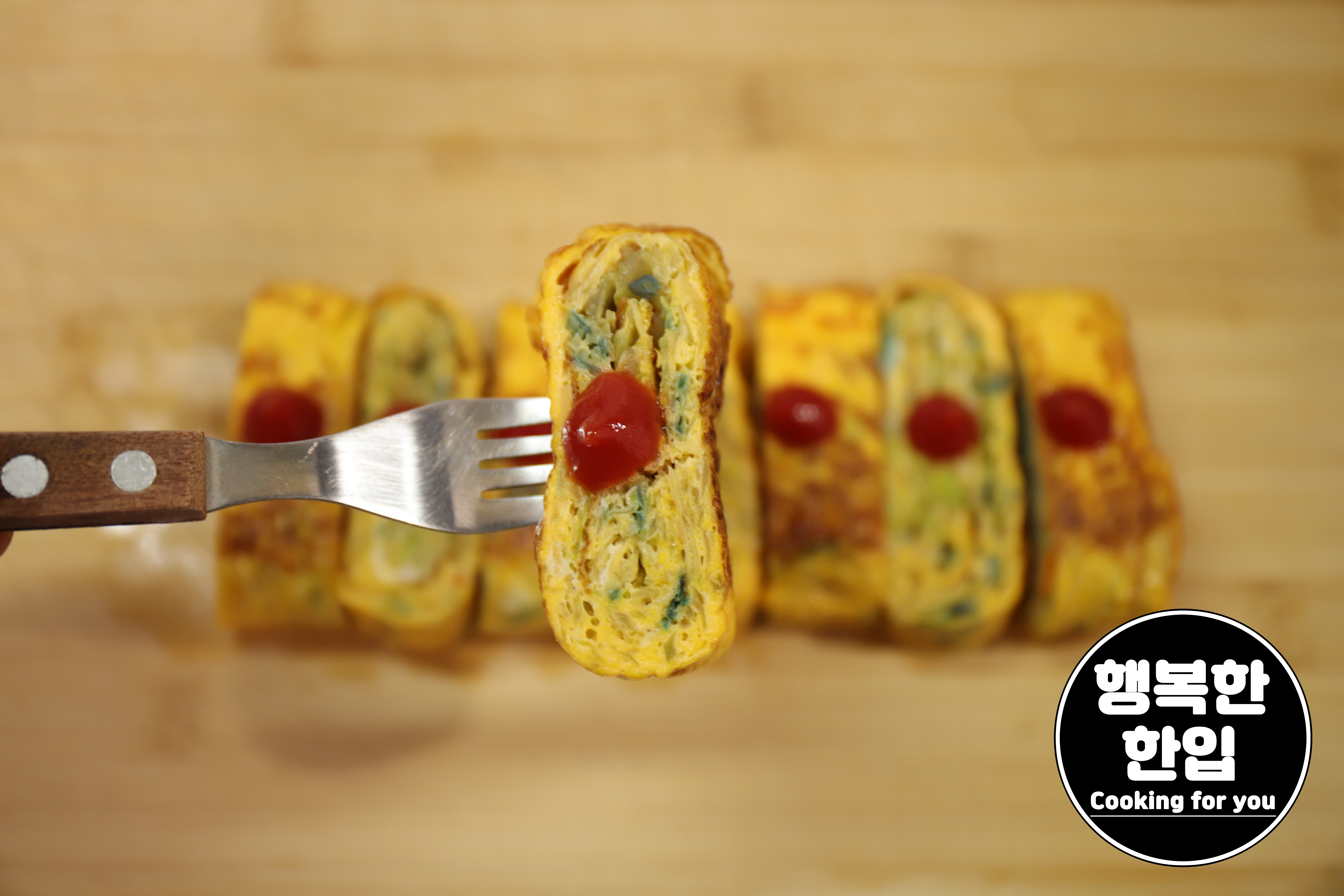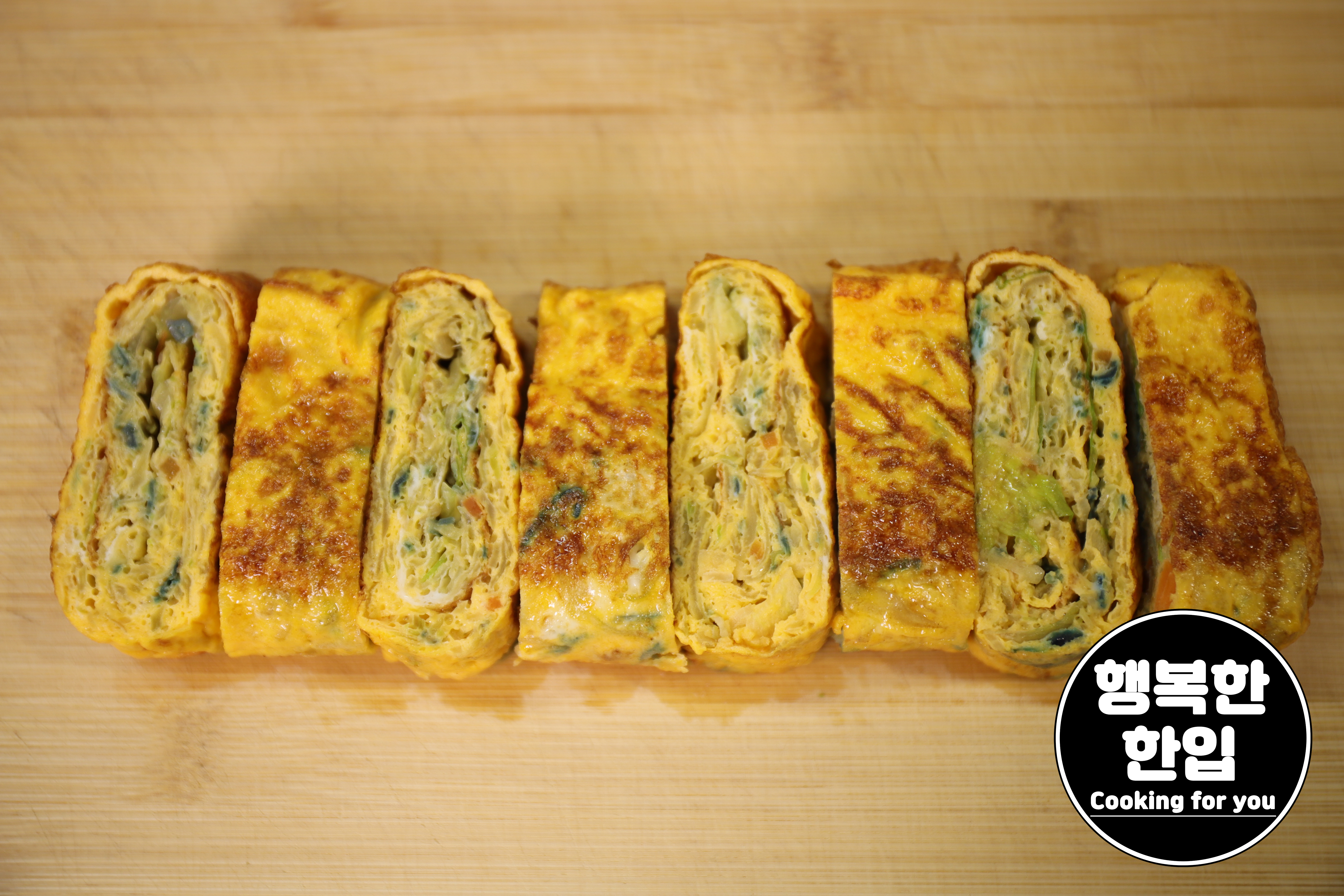 잘 구워진 계란말이는 먹기 좋은 크기로 잘라주세요.