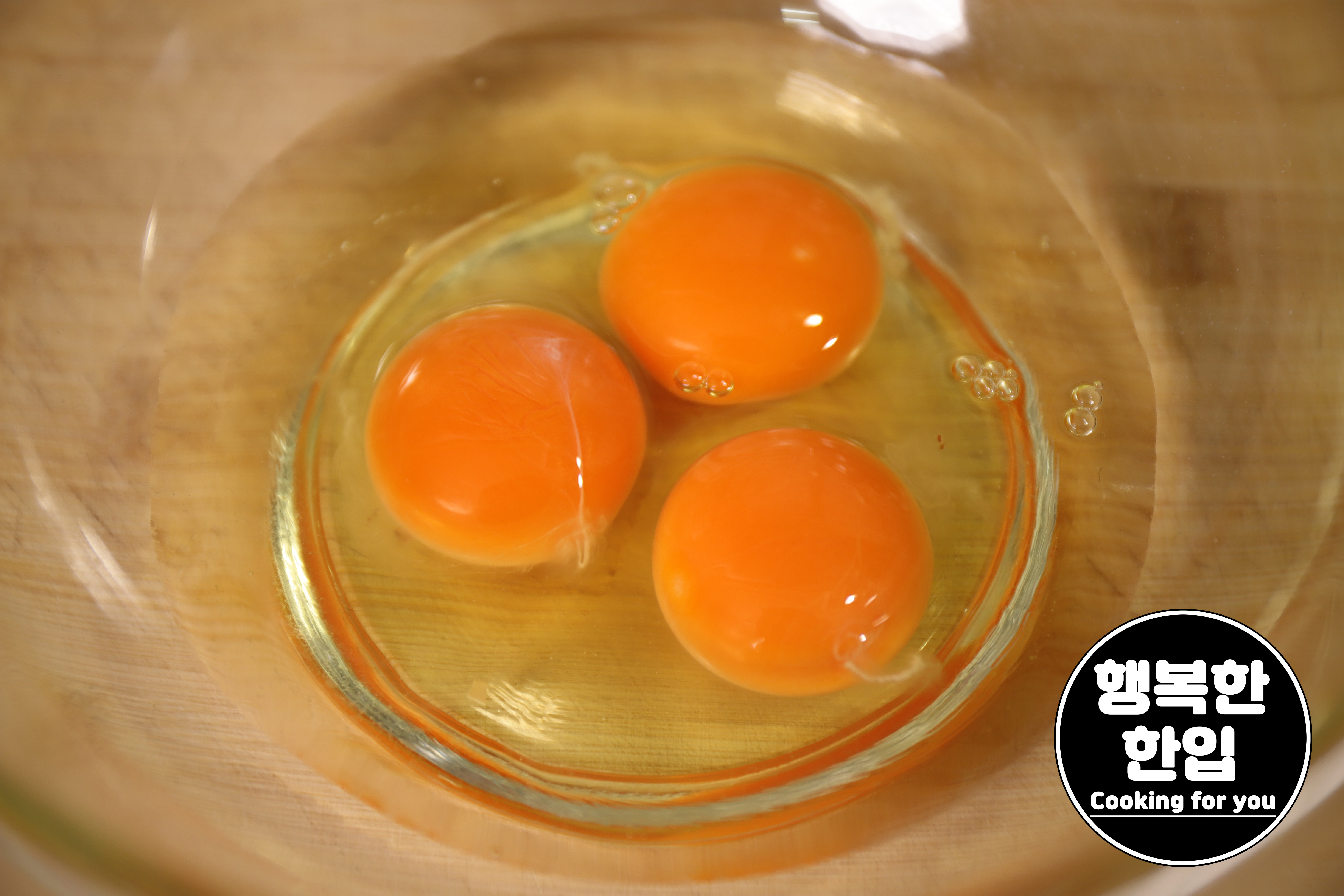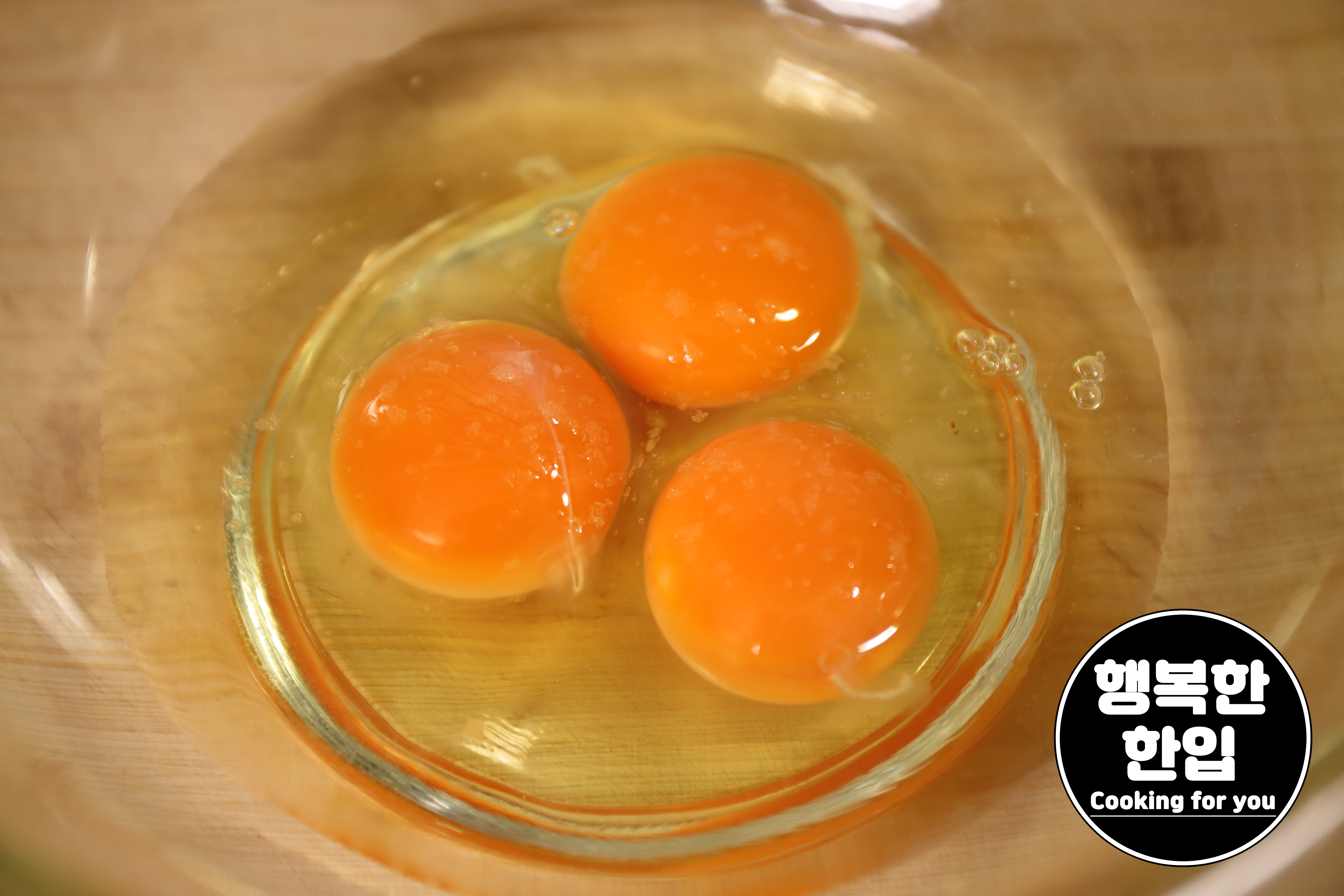 계란 3개를 깨서 소금을 샤샥~! 뿌려주고 풀어주세요.