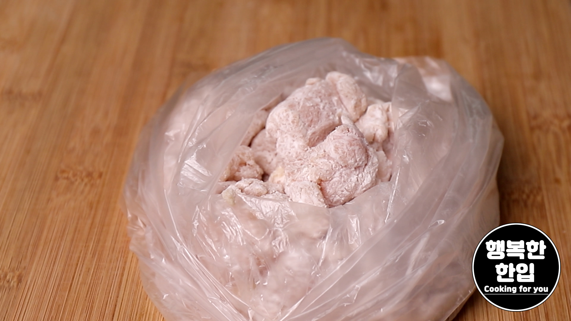 밑간을 마친 닭가슴살에 전분가루를 골고루 묻혀주세요.