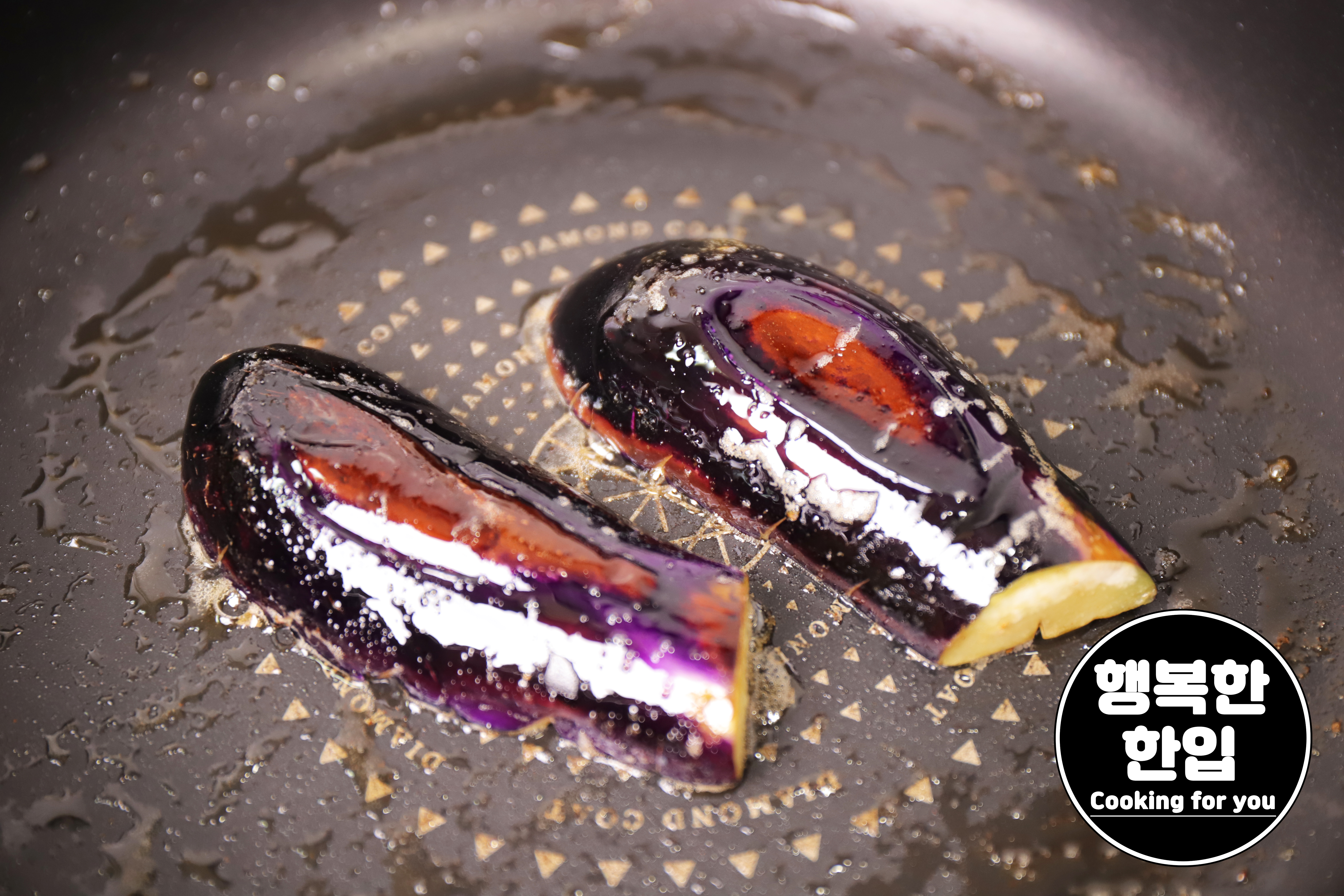 버터가 녹으면 중간 보다 조금 약한불에서 지그시 가지를 구워주세요.