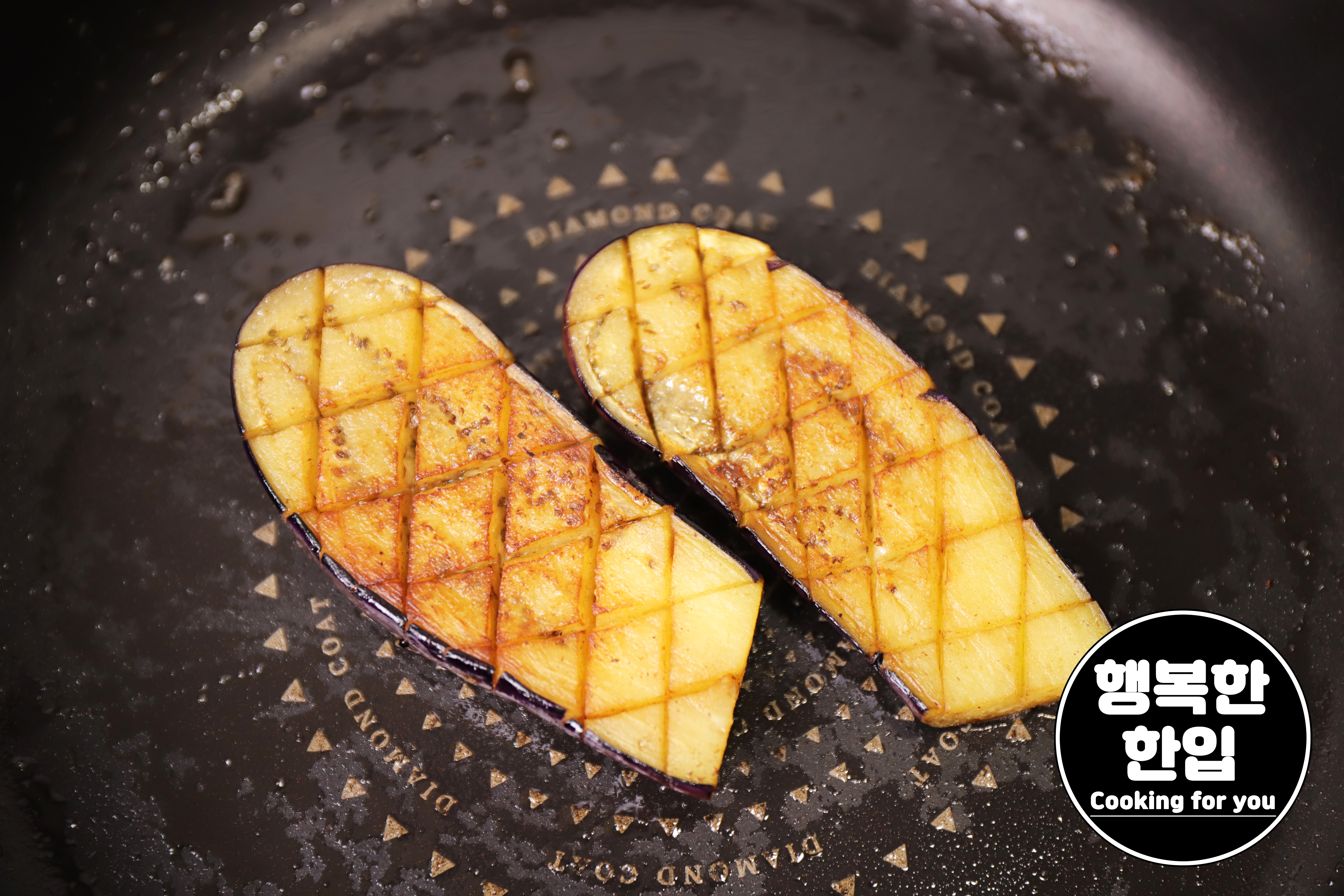 버터가 녹으면 중간 보다 조금 약한불에서 지그시 가지를 구워주세요.