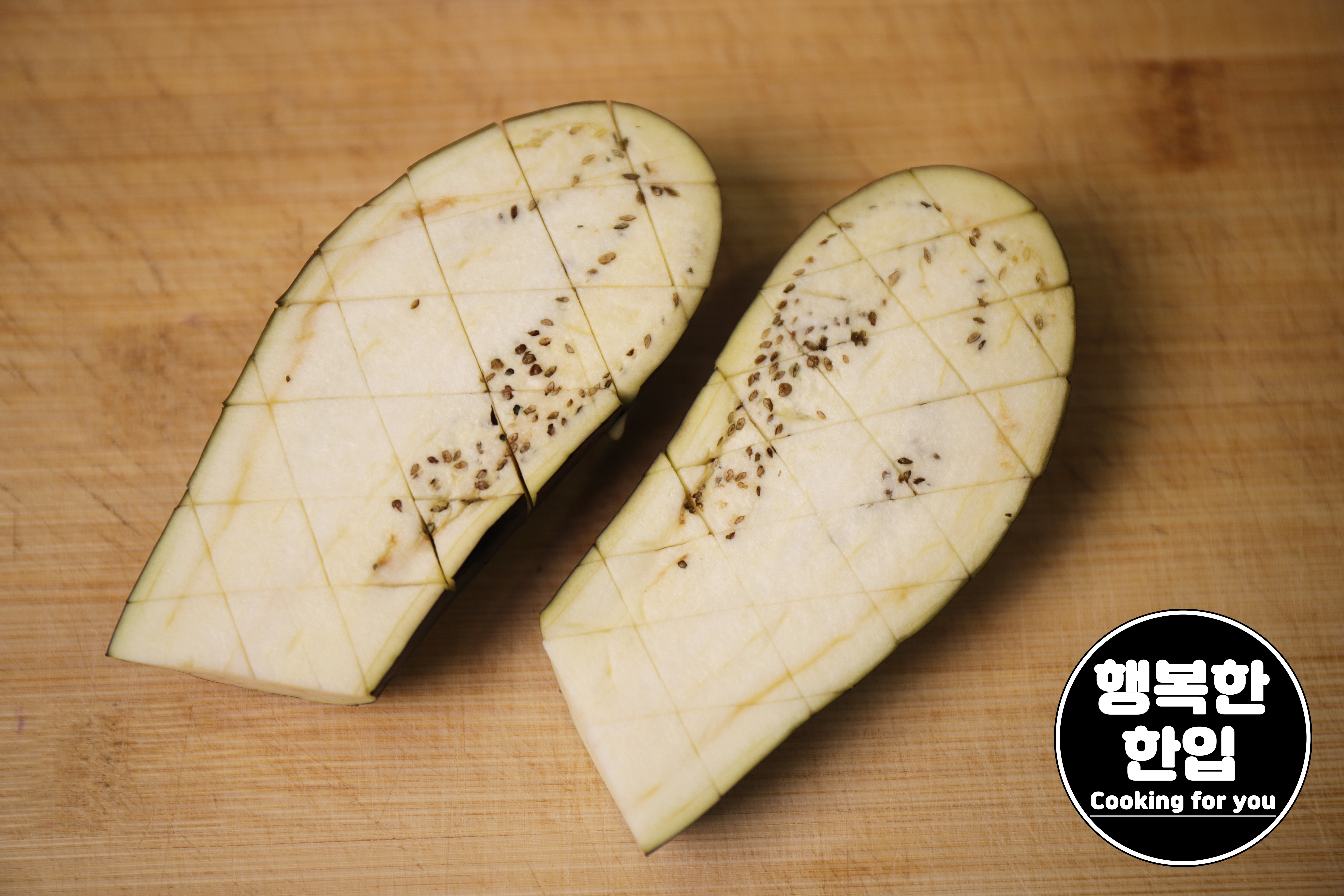 가지는 길게 자른후 칼집을 내주세요.