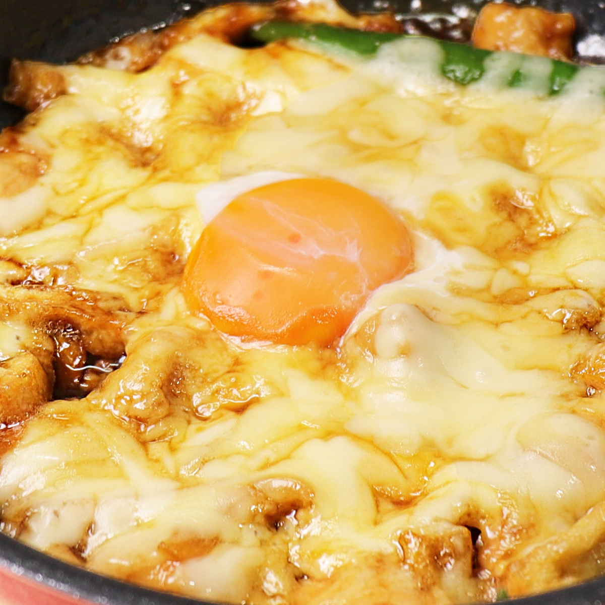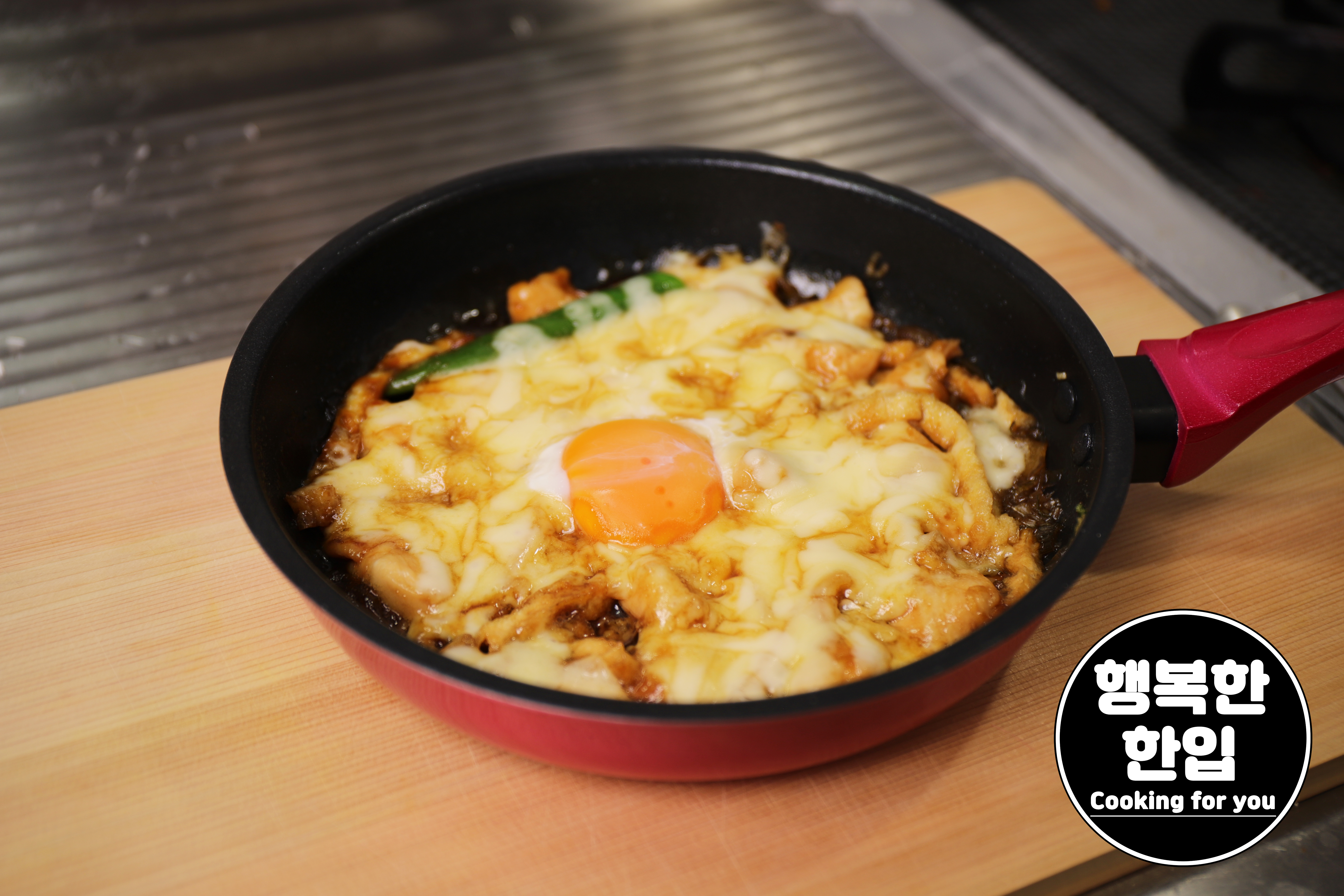 치즈위에 계란 노른자 한개를 올린 후 뚜껑을 닫고 약한불로 1분30초 ~ 2분정도 열을 가해주세요.