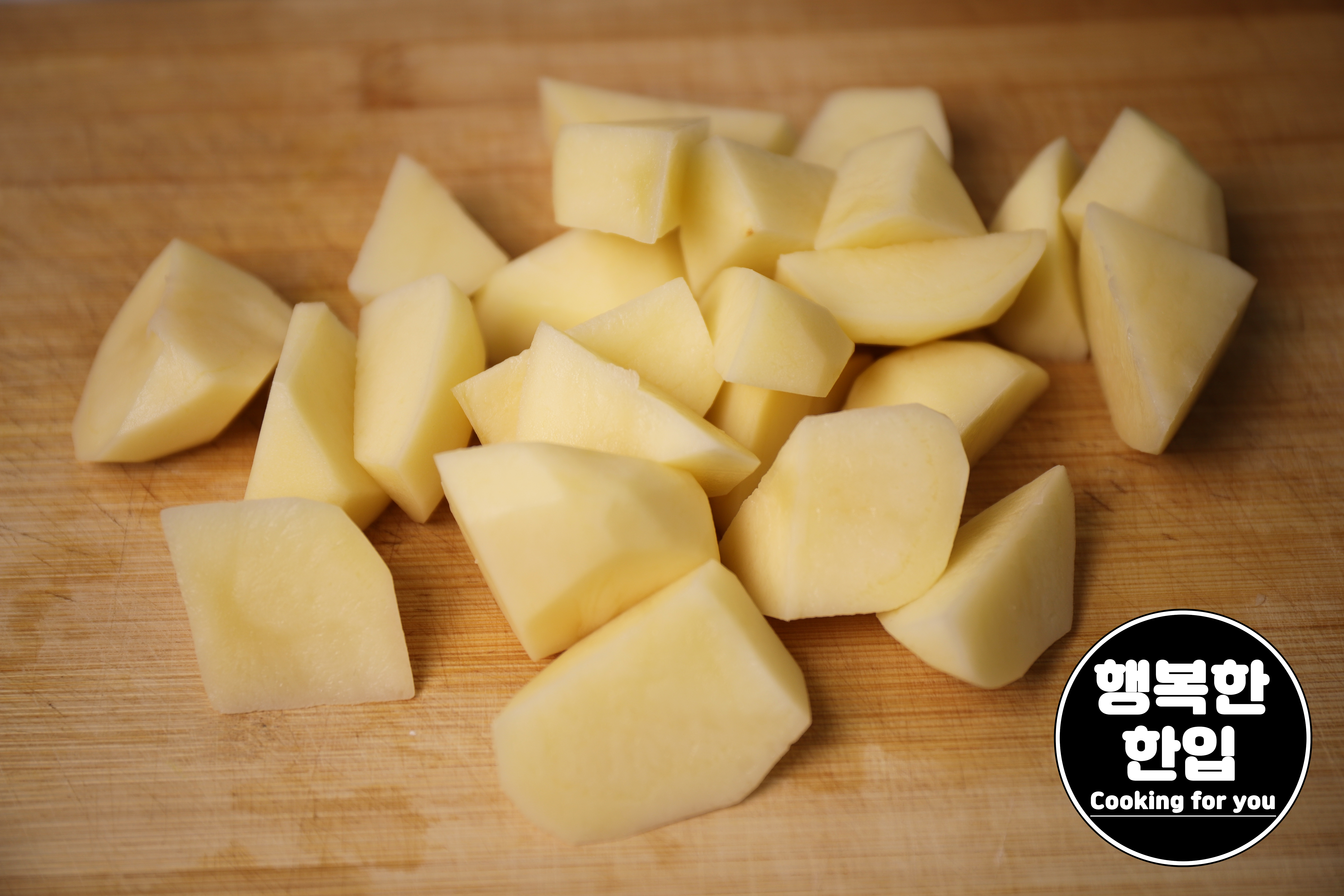 안녕하세요. 행복한한입 입니다. 오늘은 대한민국 국민이라면 누구나 좋아할 만한 떡볶이 요리입니다. --- 준비재료 --- 닭다리살 280g 감자 300g 떡볶이떡 200g 양파 1/2개 (80g) 대파 소금 조금 후추