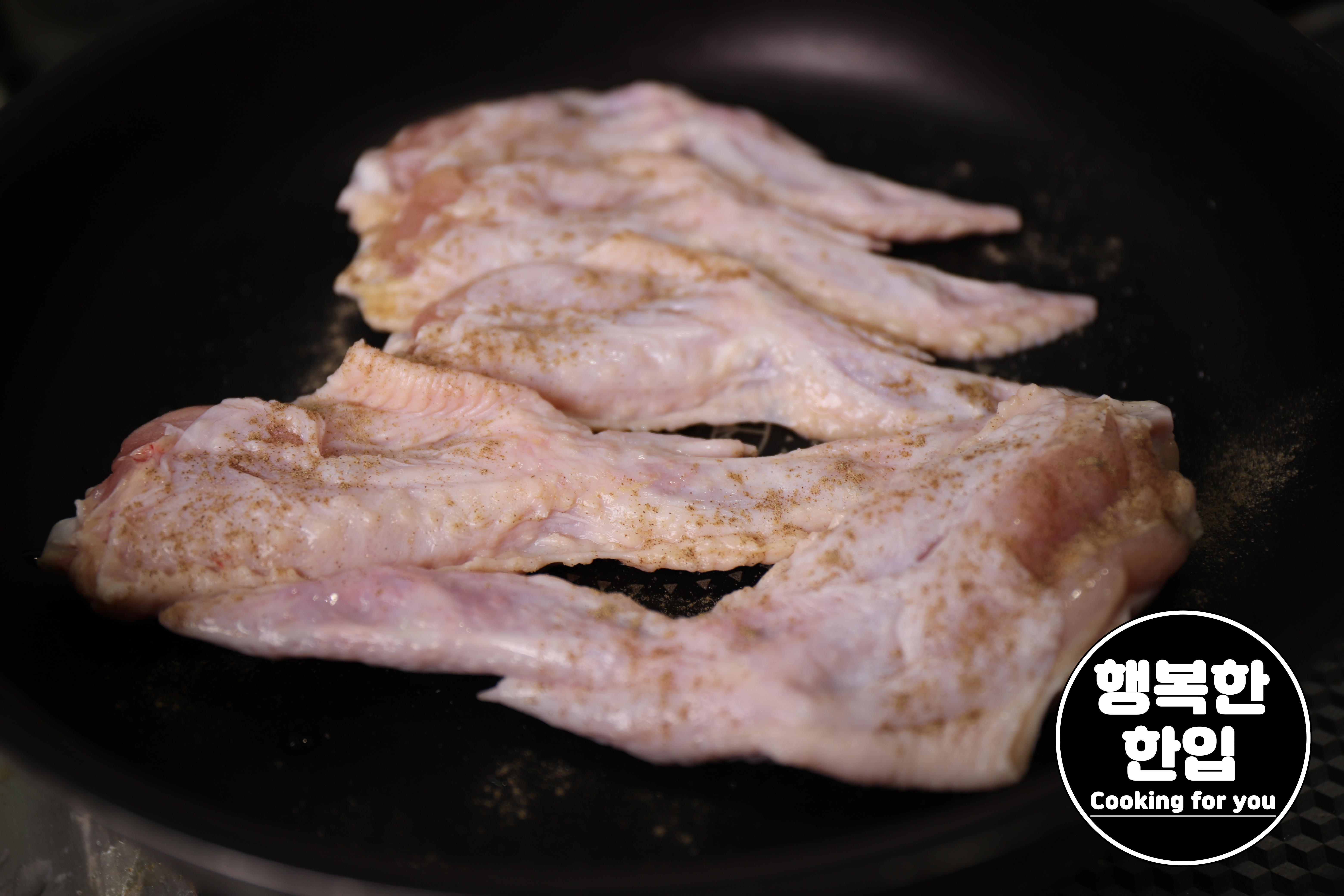닭날개 앞뒤로 소금을 샤샤샥~! 후추도 샤샤샥~!