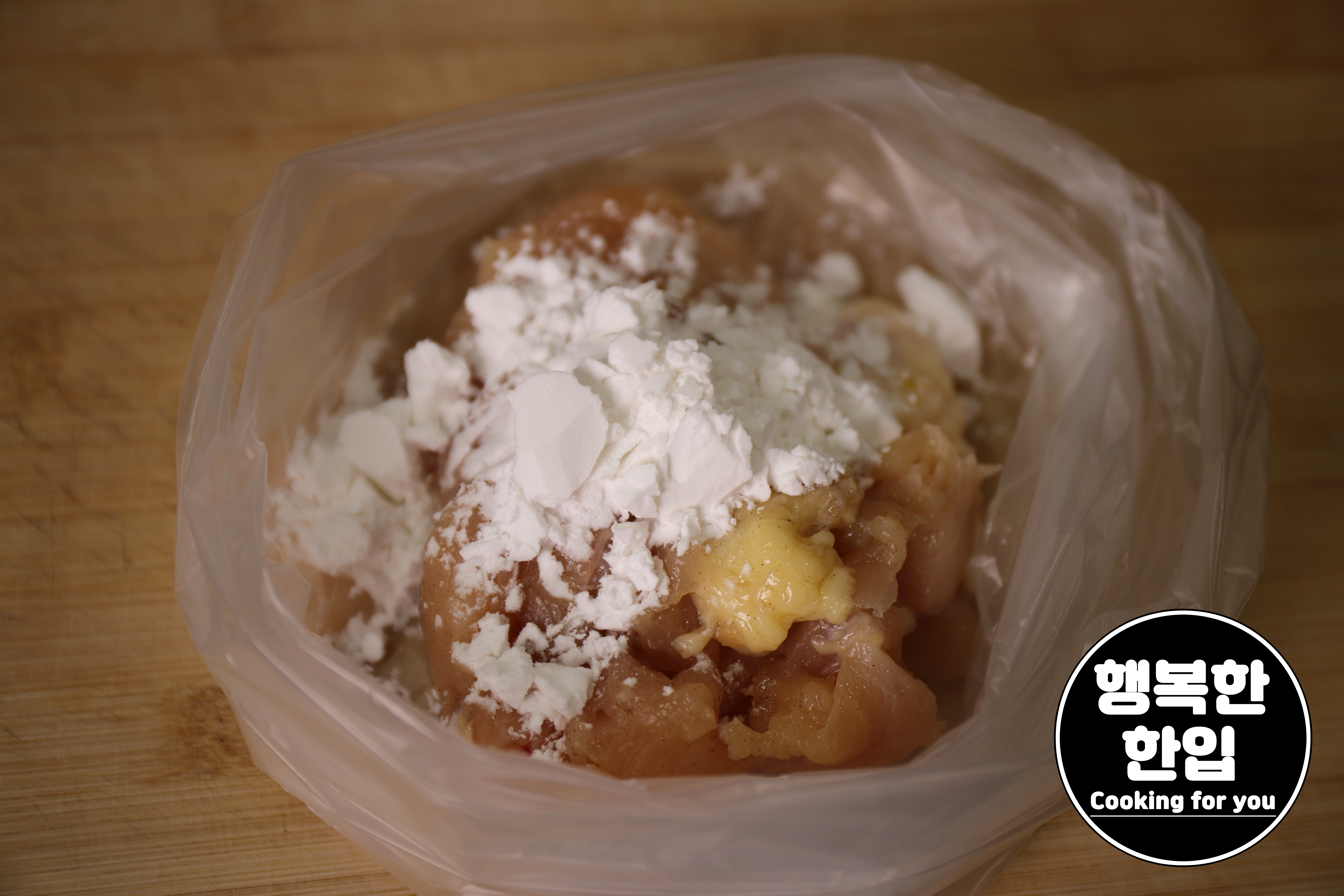 밑간을 마친 닭가슴살에 전분가루를 전체적으로 묻혀주세요.