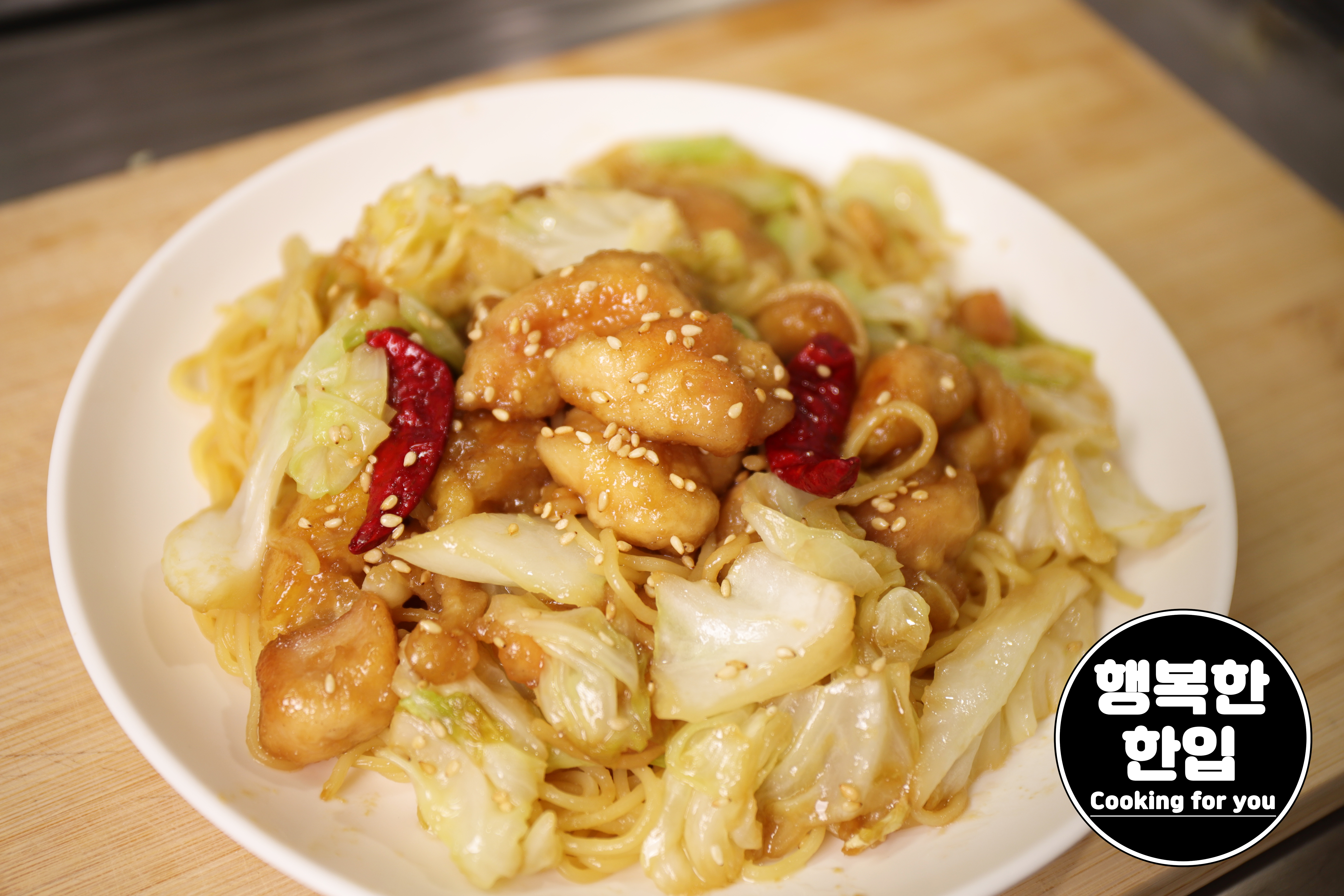 오늘은 양배추를 듬뿍 넣어 만든 닭가슴살 야끼소바 입니다.