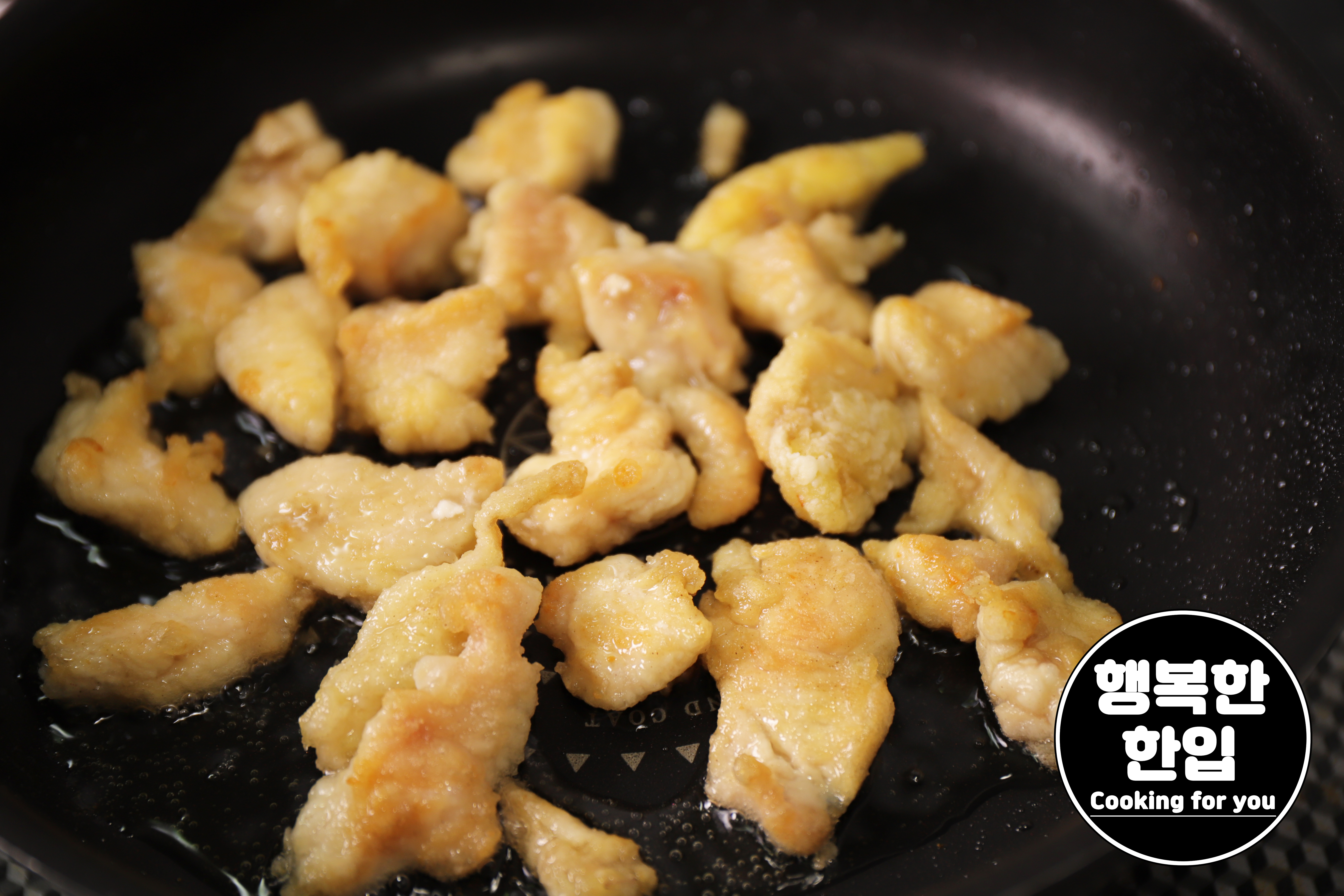 달구어진 프라이팬에 식용유를 적당히 두르고 중간보다 조금 약한 불에서 노릇노릇 구워주세요.