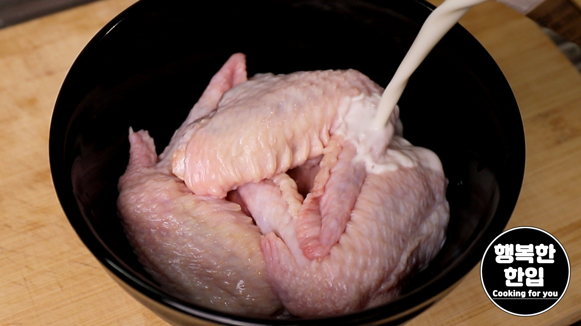 깨끗이 씻은 닭날개에 우유를 부어주세요.
