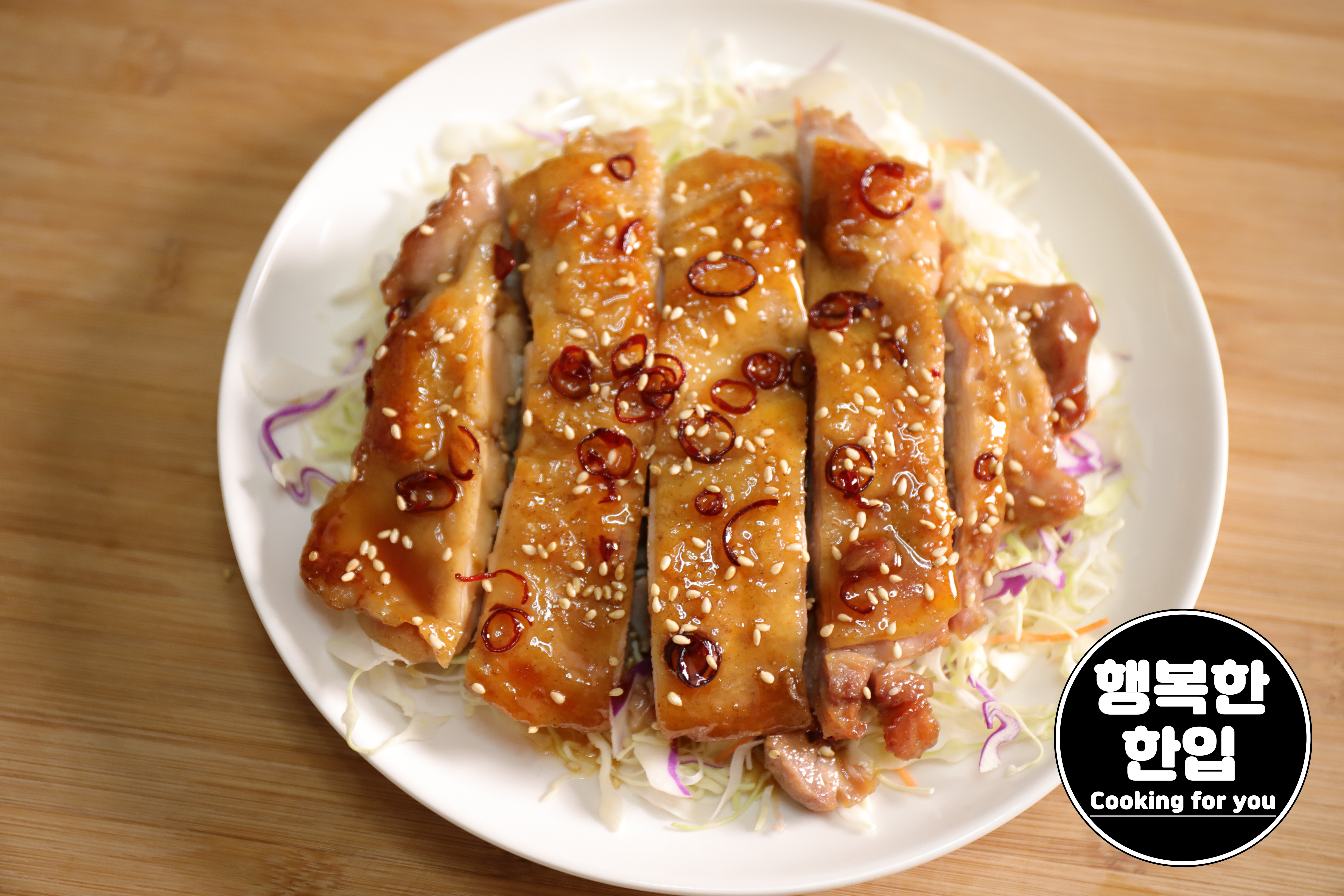 오늘은 두툼하고 맛 좋은 닭다리살로 매콤한 치킨요리입니다.