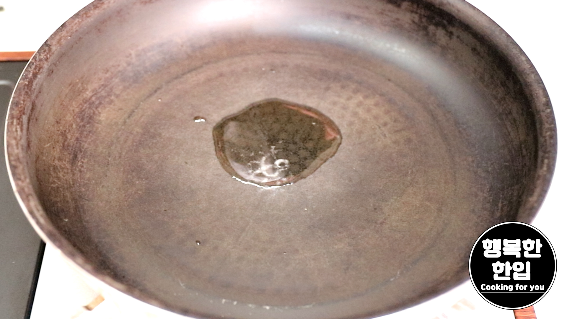 프라이팬에 식용유를 전체적으로 발라준 후 달구어줍니다.