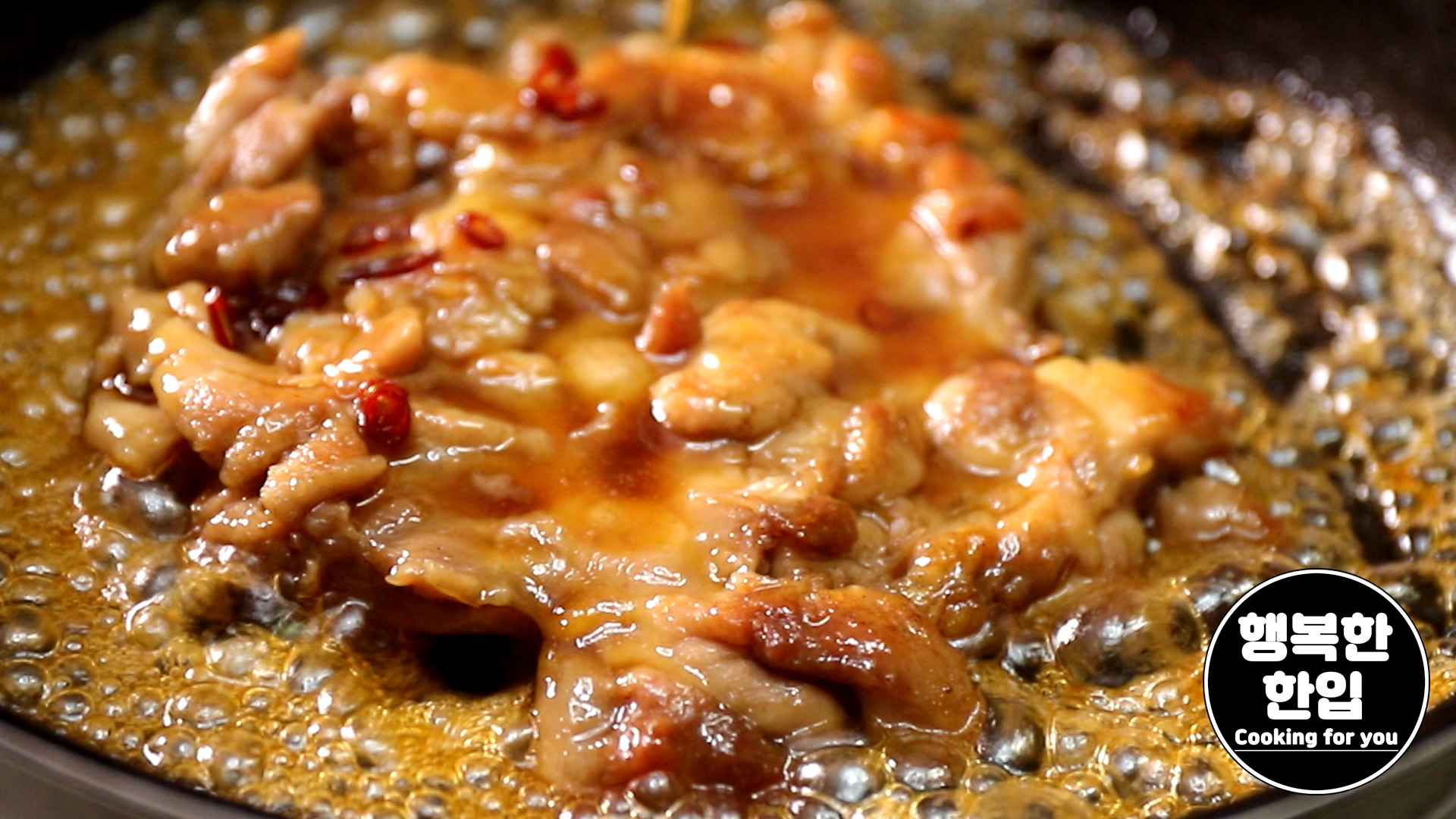 맛이 잘 스며들도록 스푼을 이용해서 닭고기 위에 소스를 얹어가며 졸여주세요.