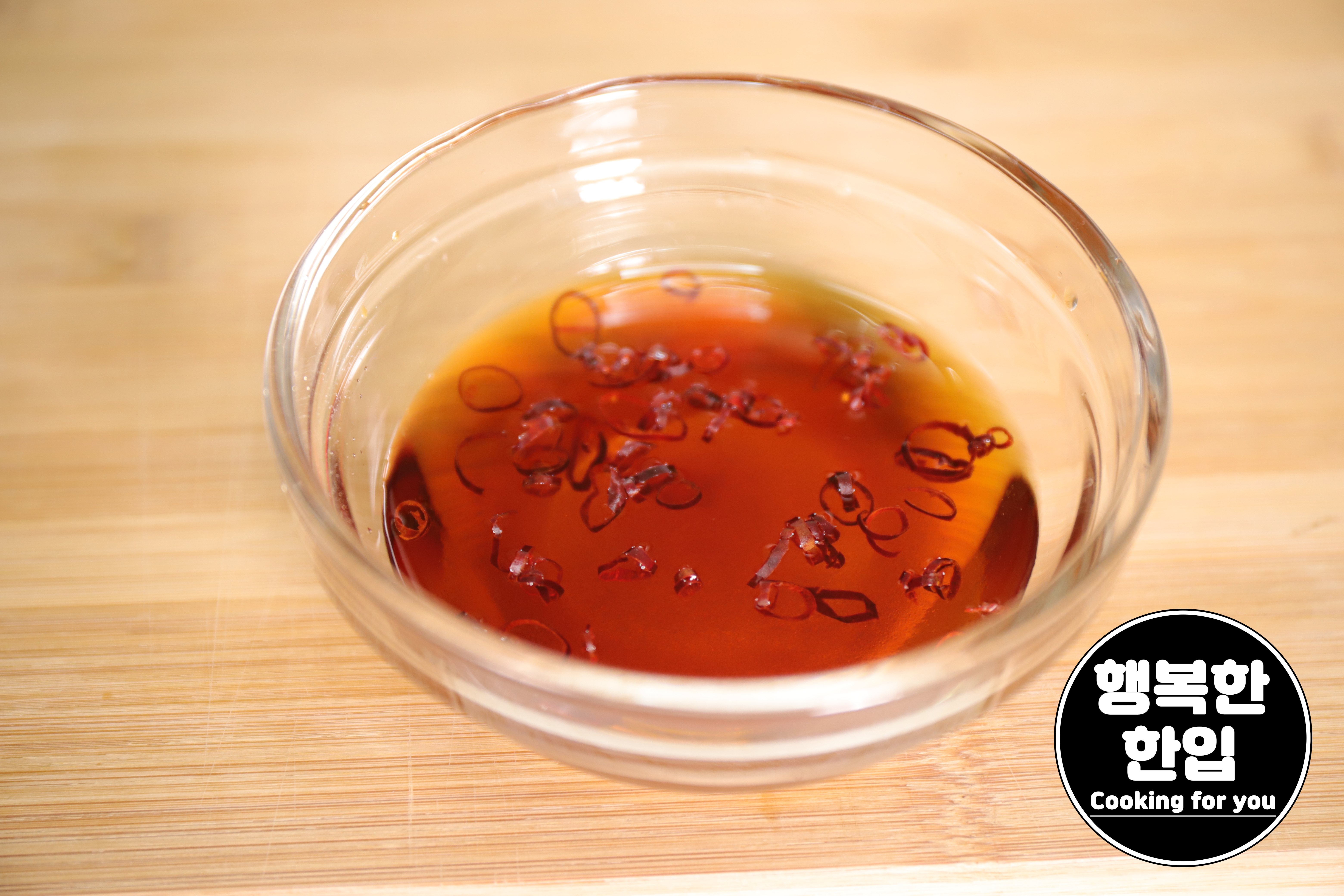 용기에 간장 3스푼, 미림 2스푼, 식초 2스푼, 설탕 3스푼, 물 50ml, 건고추 조금 (또는 매운고추) 넣고 잘 섞어주세요.