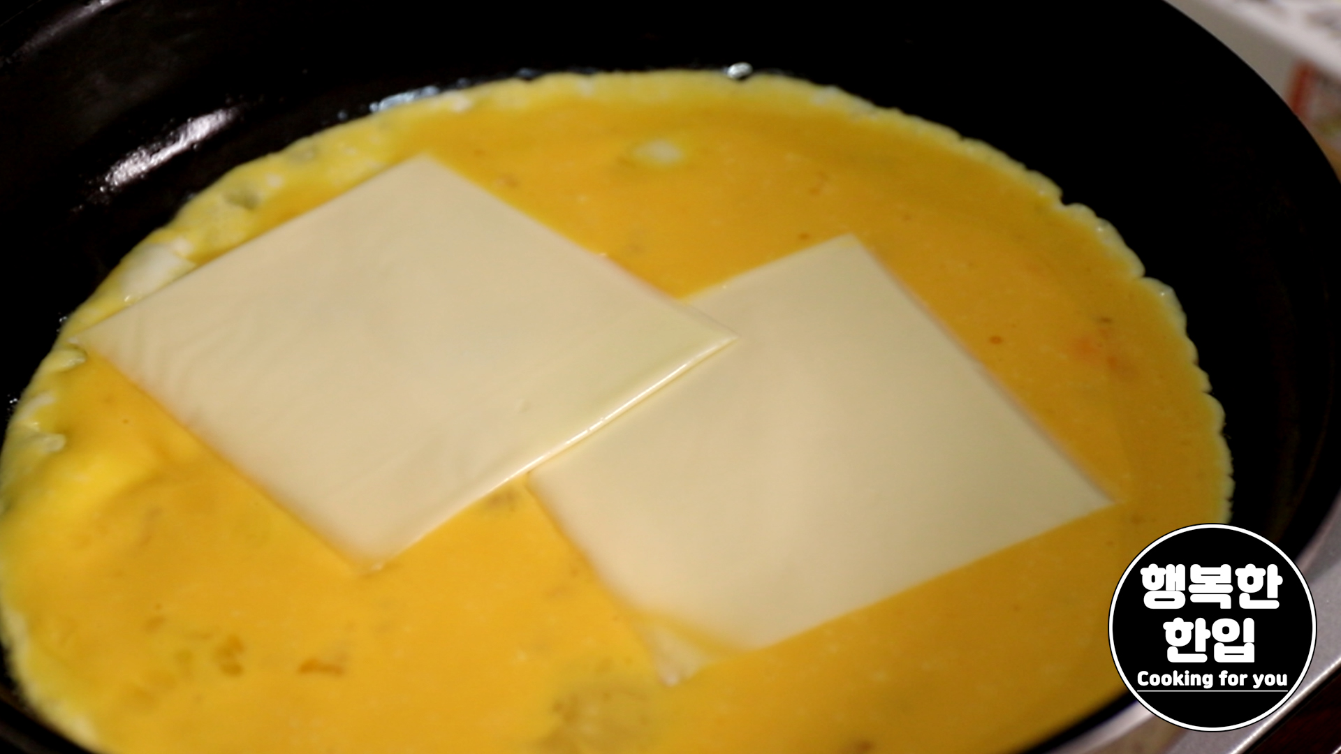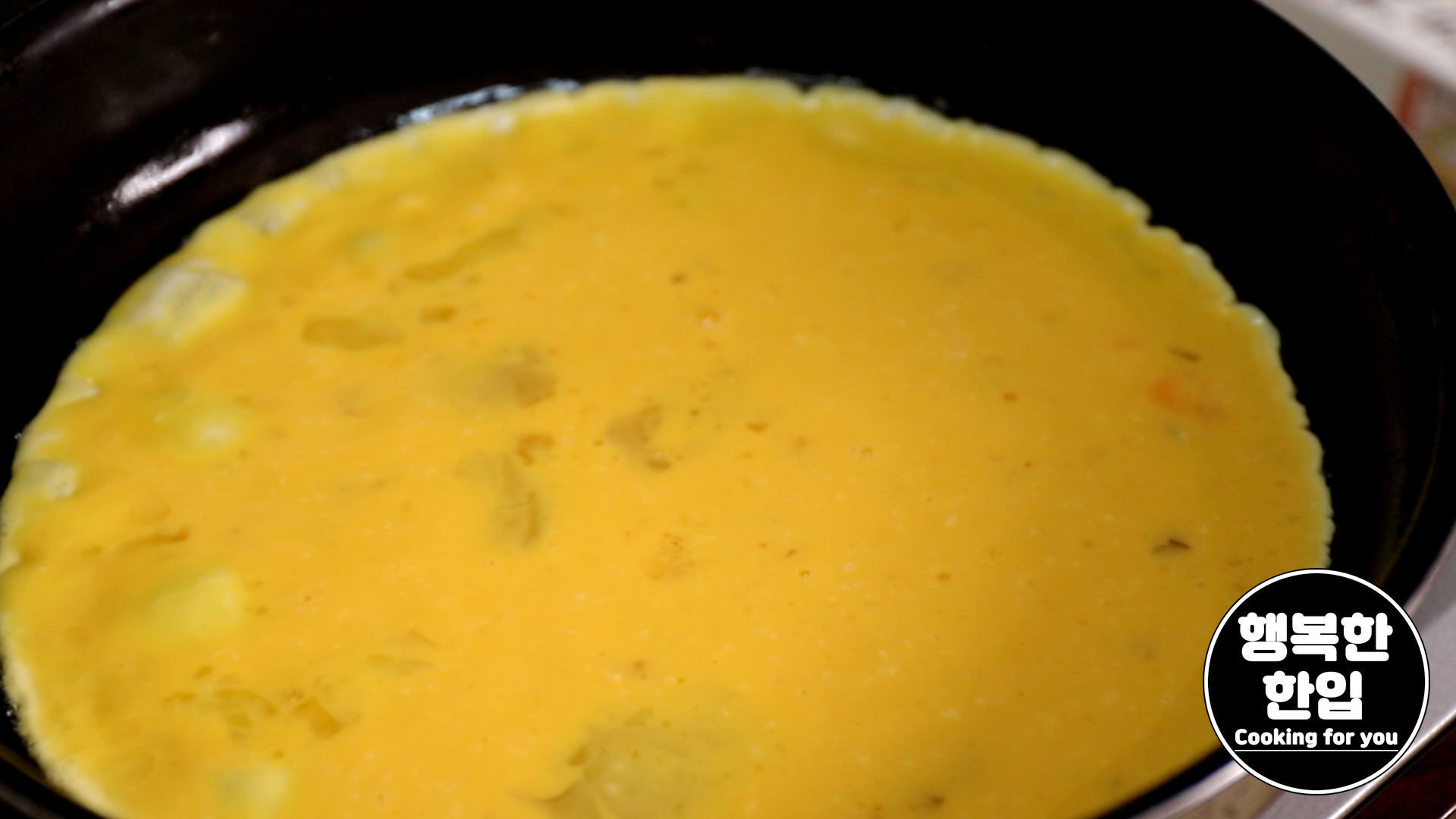 달구어진 프라이팬에 식용유를 적당히 두르고 잘 풀어 섞어둔 계란을 넣어주세요.