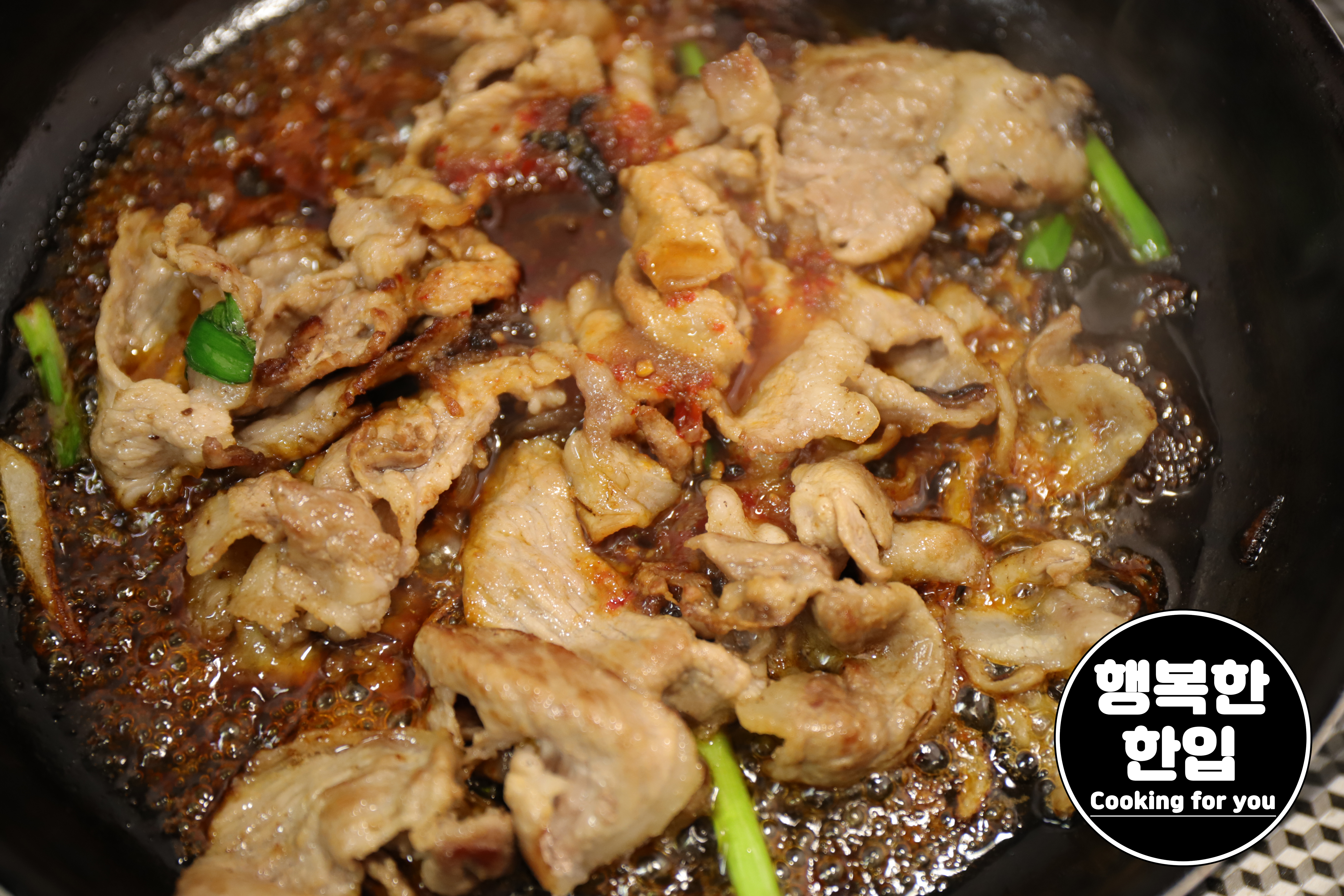 행복한 한입 Cooking for you - 매콤한 돼지고기볶음 (부추와 같이 볶는중)