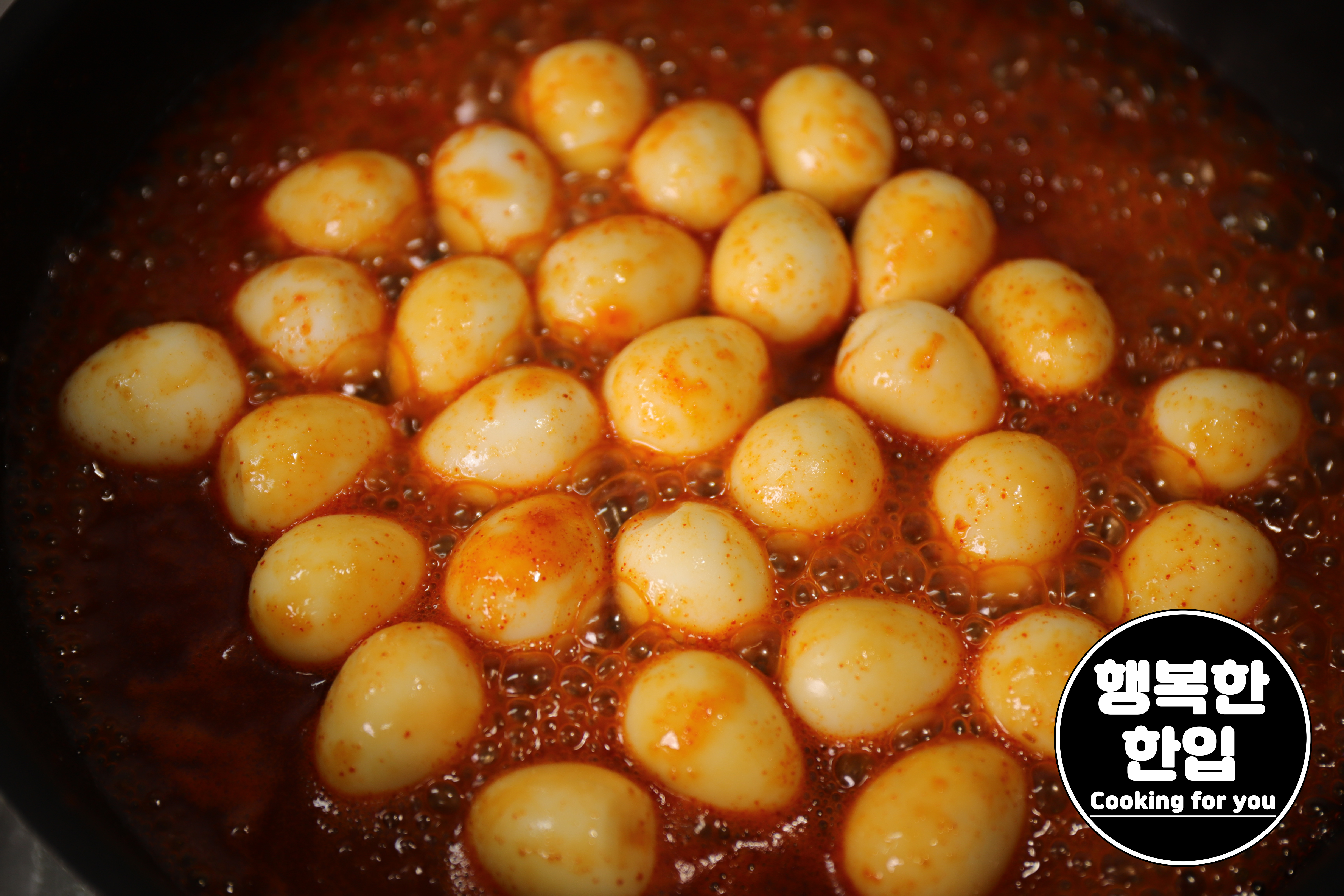 소스가 끓기 시작하면 준비한 메추리알을 넣고 약불에서 졸여줍니다.