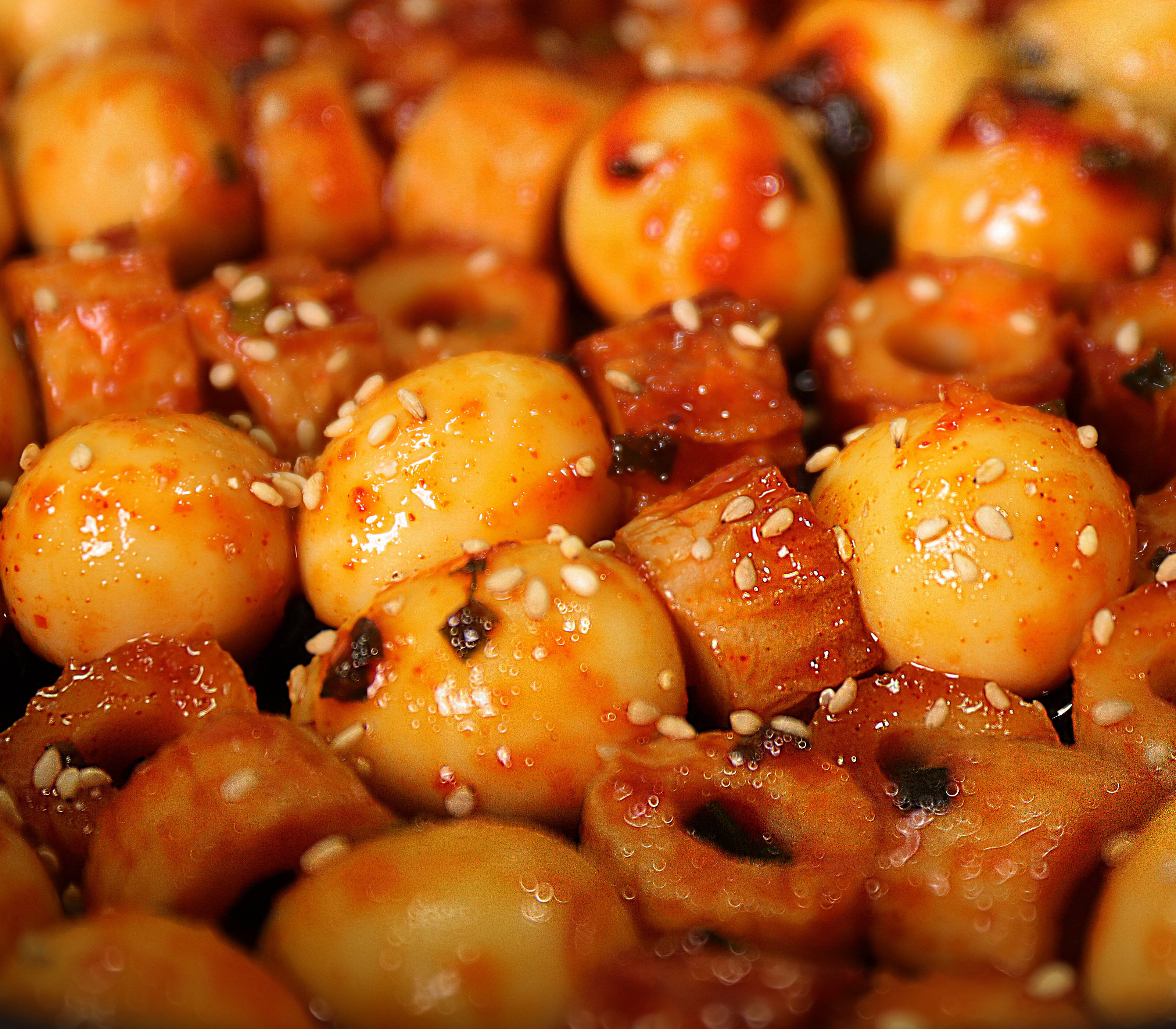 고소한 메추리알과 매콤한 소스가 입을 즐겁게 해줍니다.