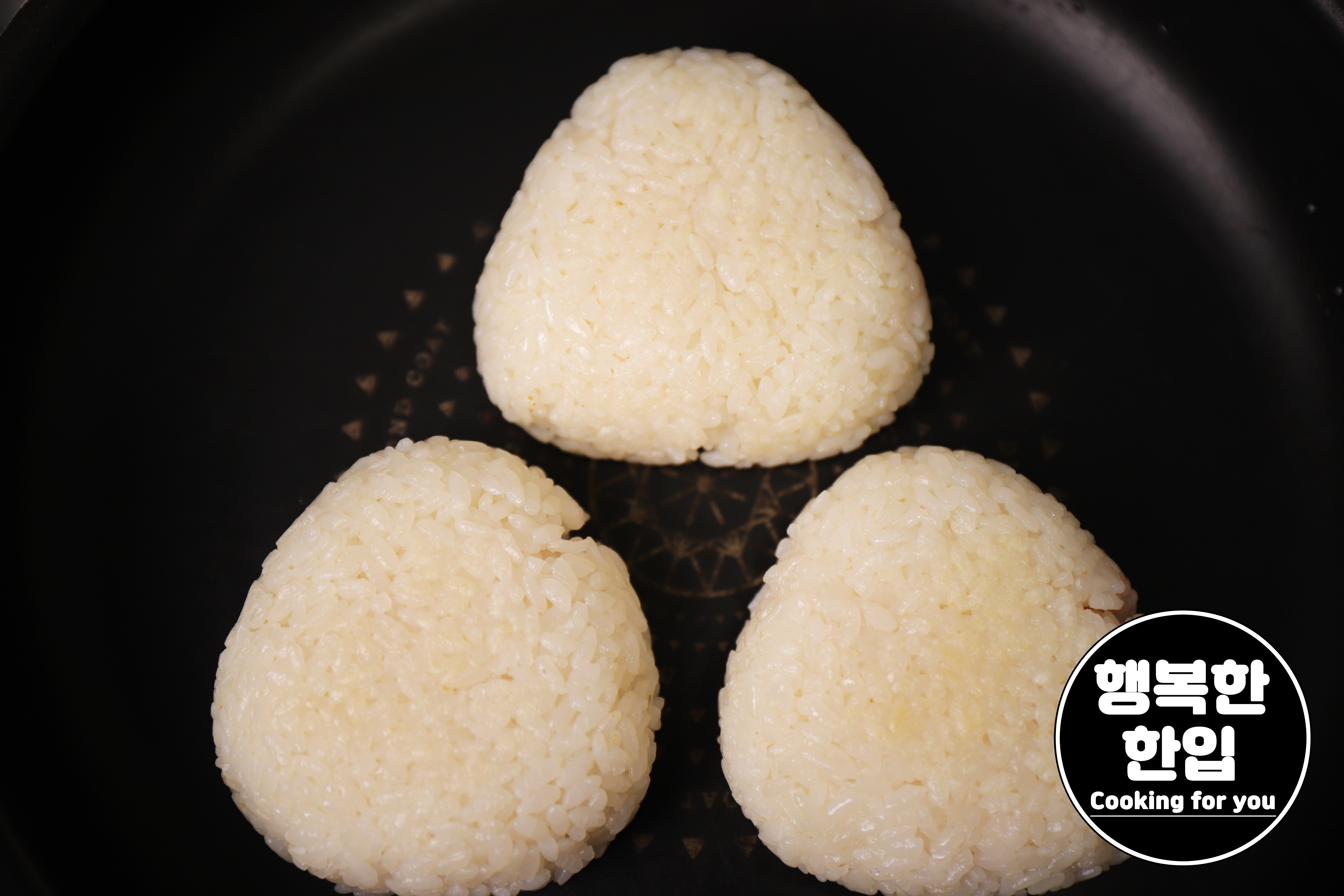 프라이팬에 식용유를 가볍게 둘러준 후 주먹밥을 구워주세요.