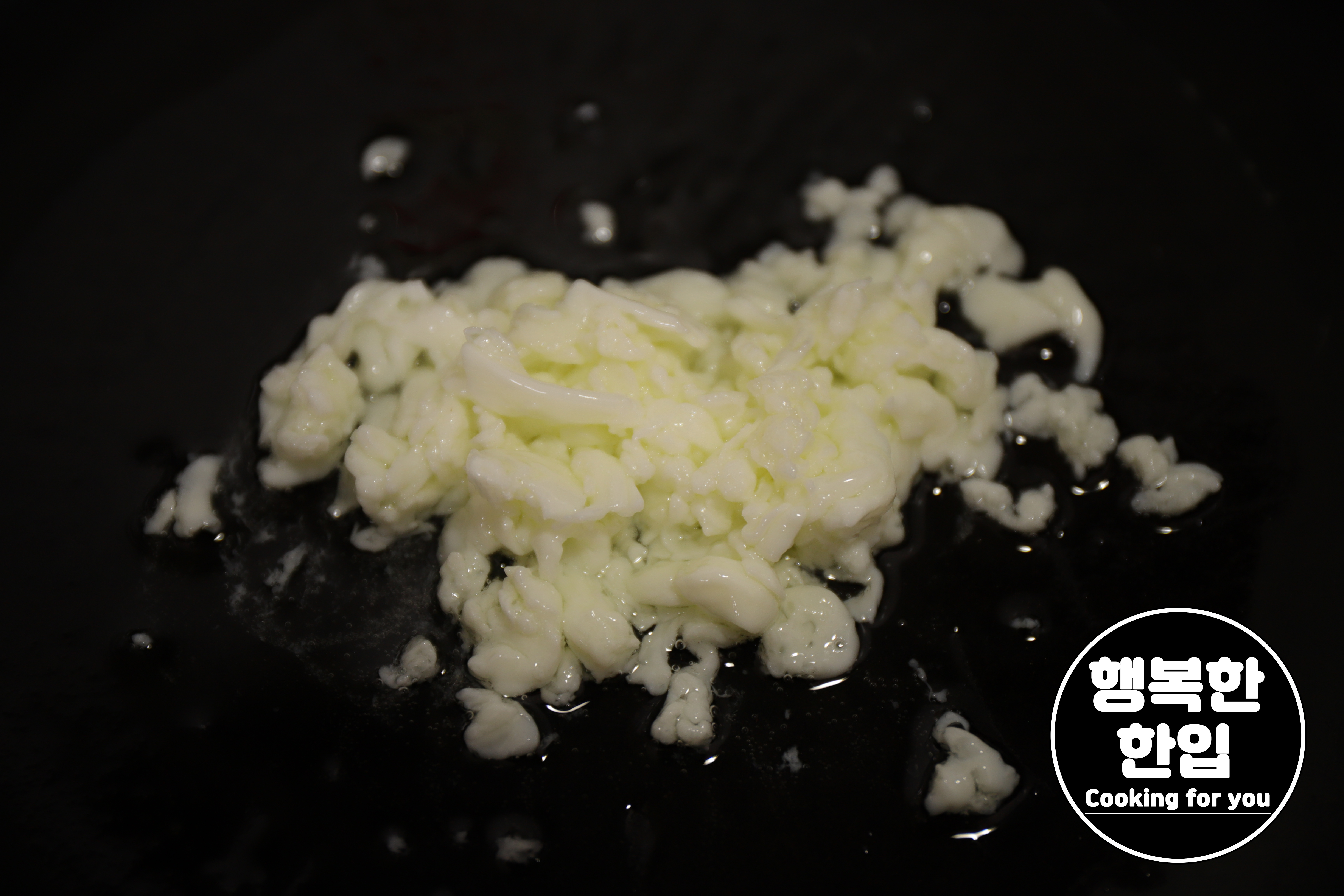 달구어진 프라이팬에 식용유를 살짝만 붓고 스크럼블식으로 흰자를 샤샤샥~ 익혀줍니다.