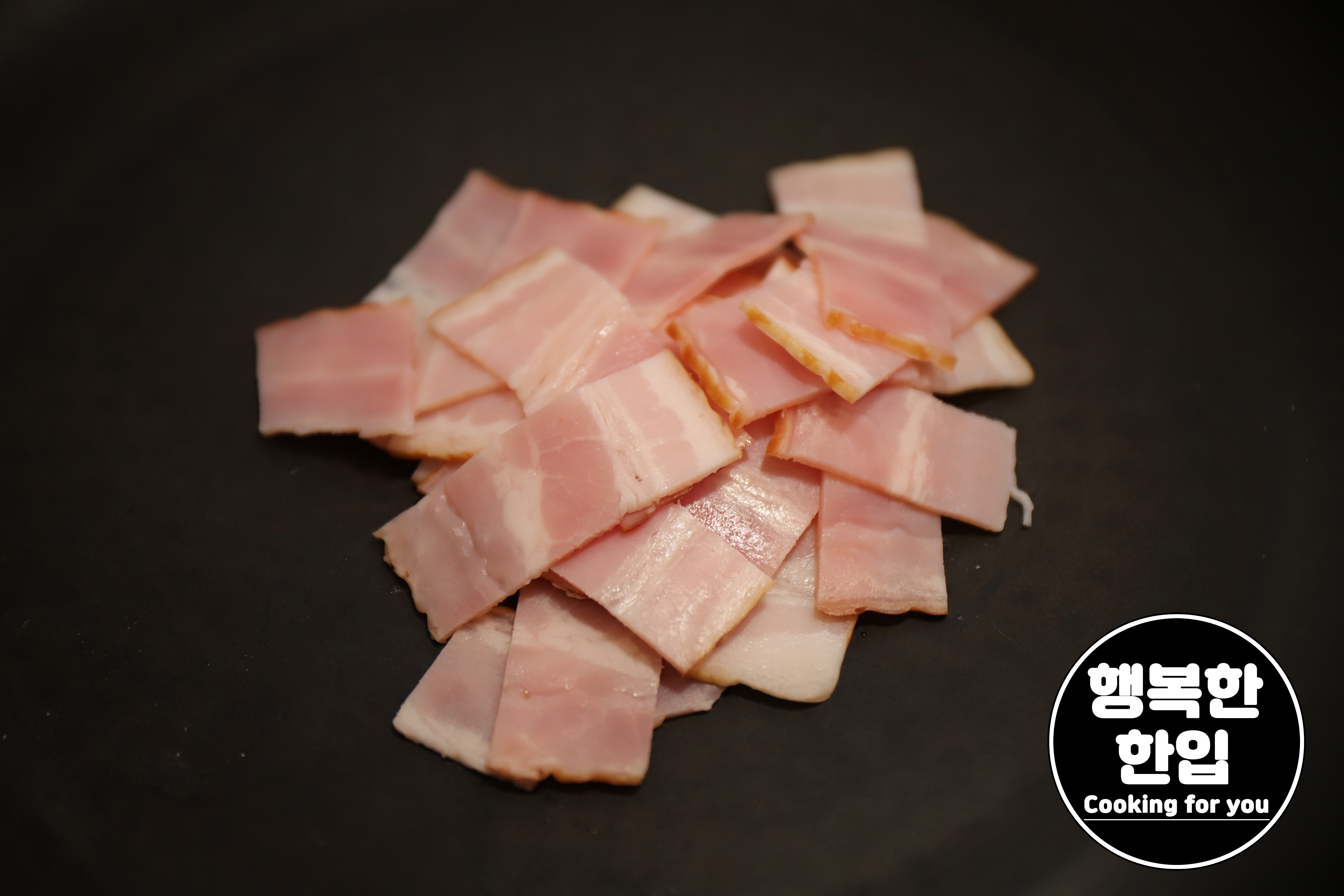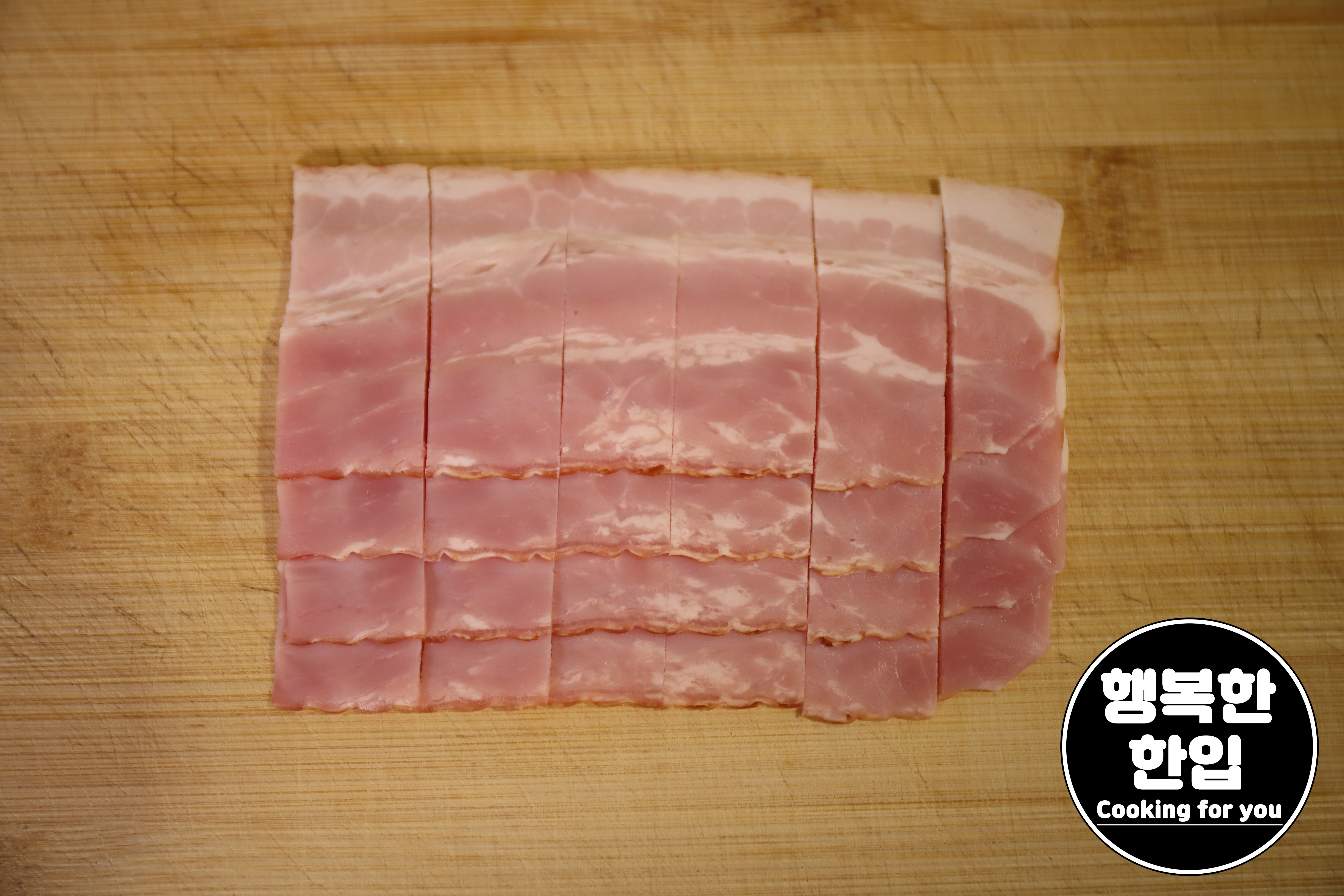 베이컨은 먹기 좋은 크기로 잘라줍니다.
