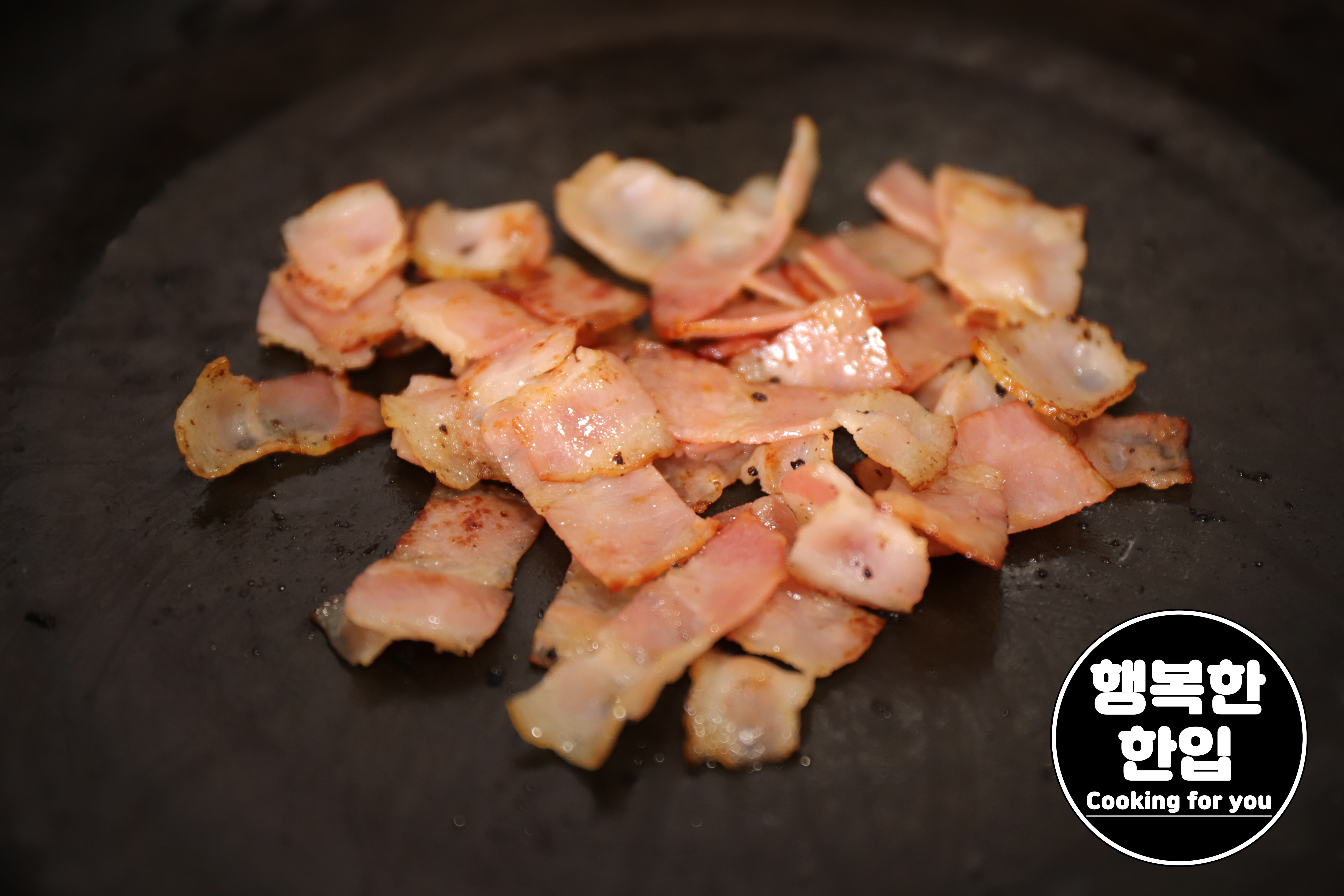 달구어진 프라이팬에 베이컨을 넣고 약불로 천천히 구워줍니다.