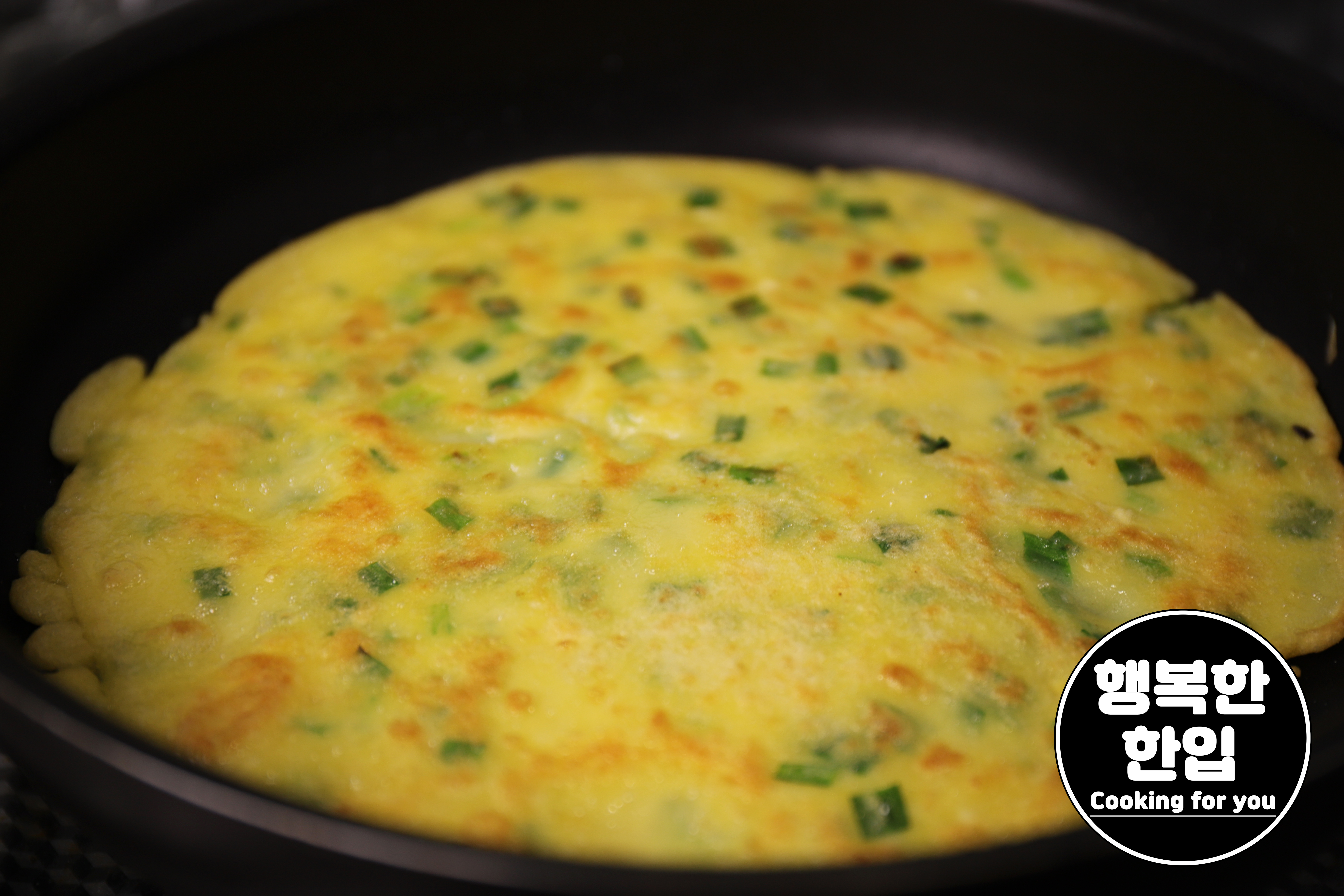 식용유를 적당히 두르고 중간 보다 조금 약한불에서 부쳐주세요.
