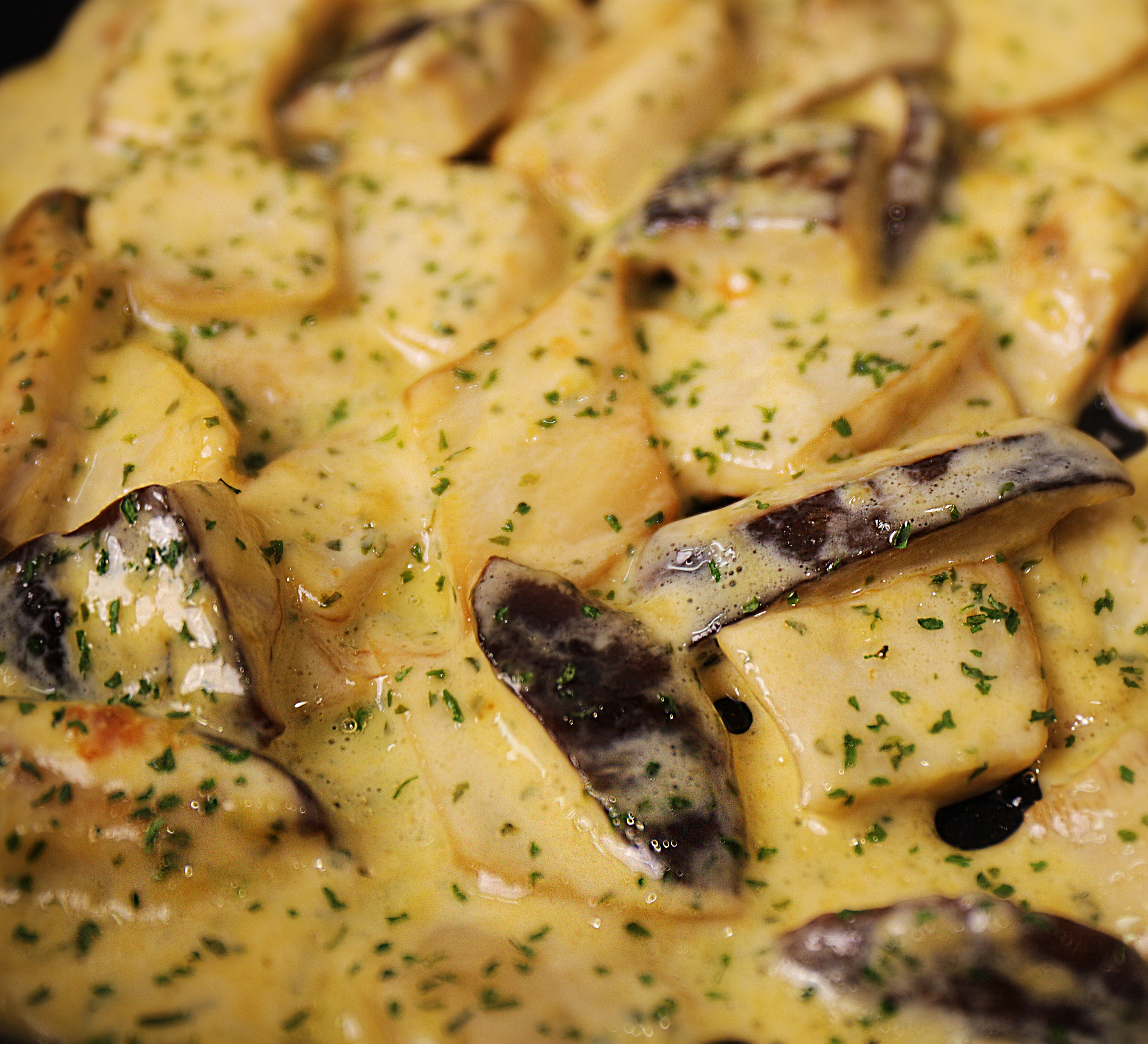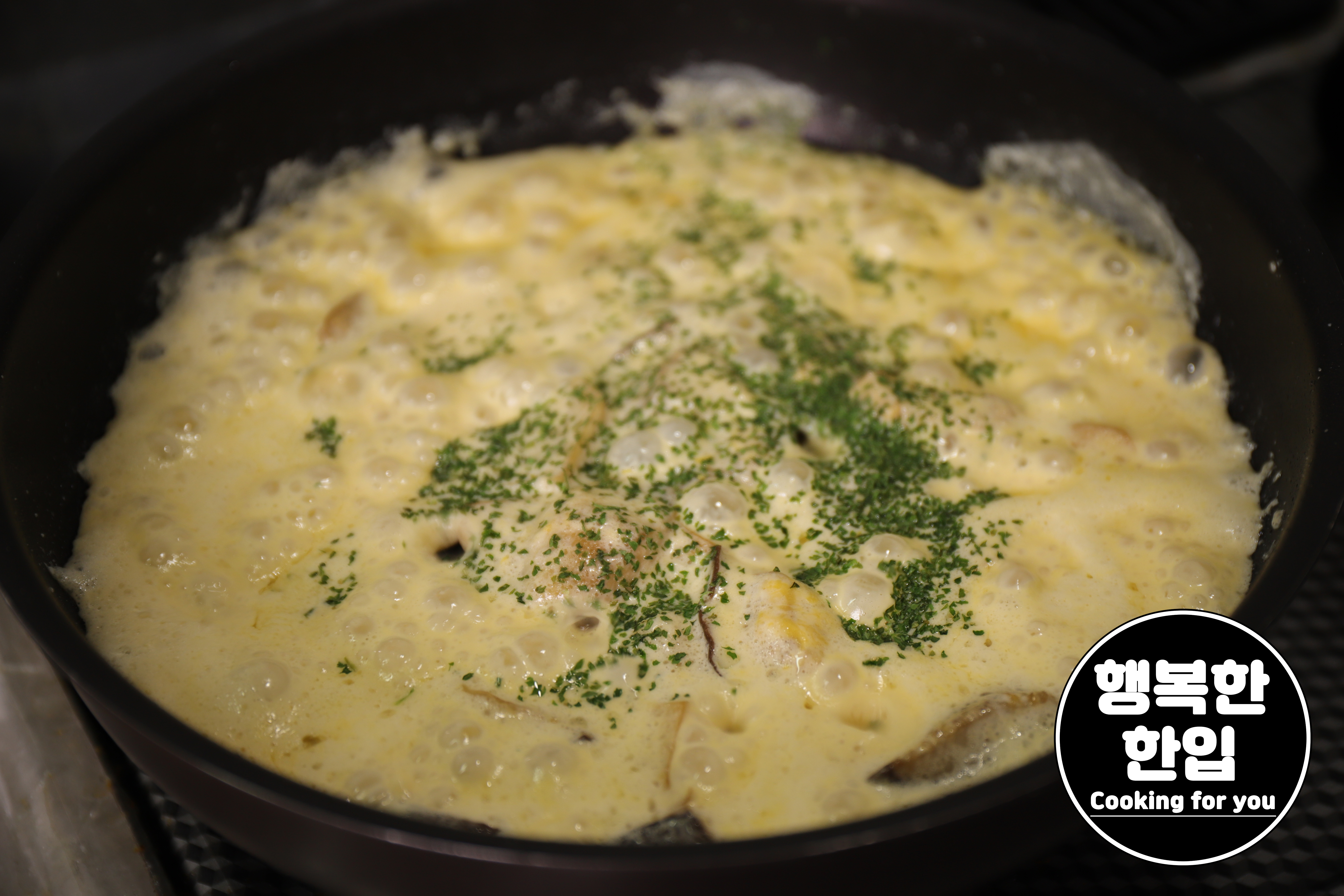 우유가 1/2정도 졸아들면 약불로 조절하고 파슬리가루를 샤샤샥~!
