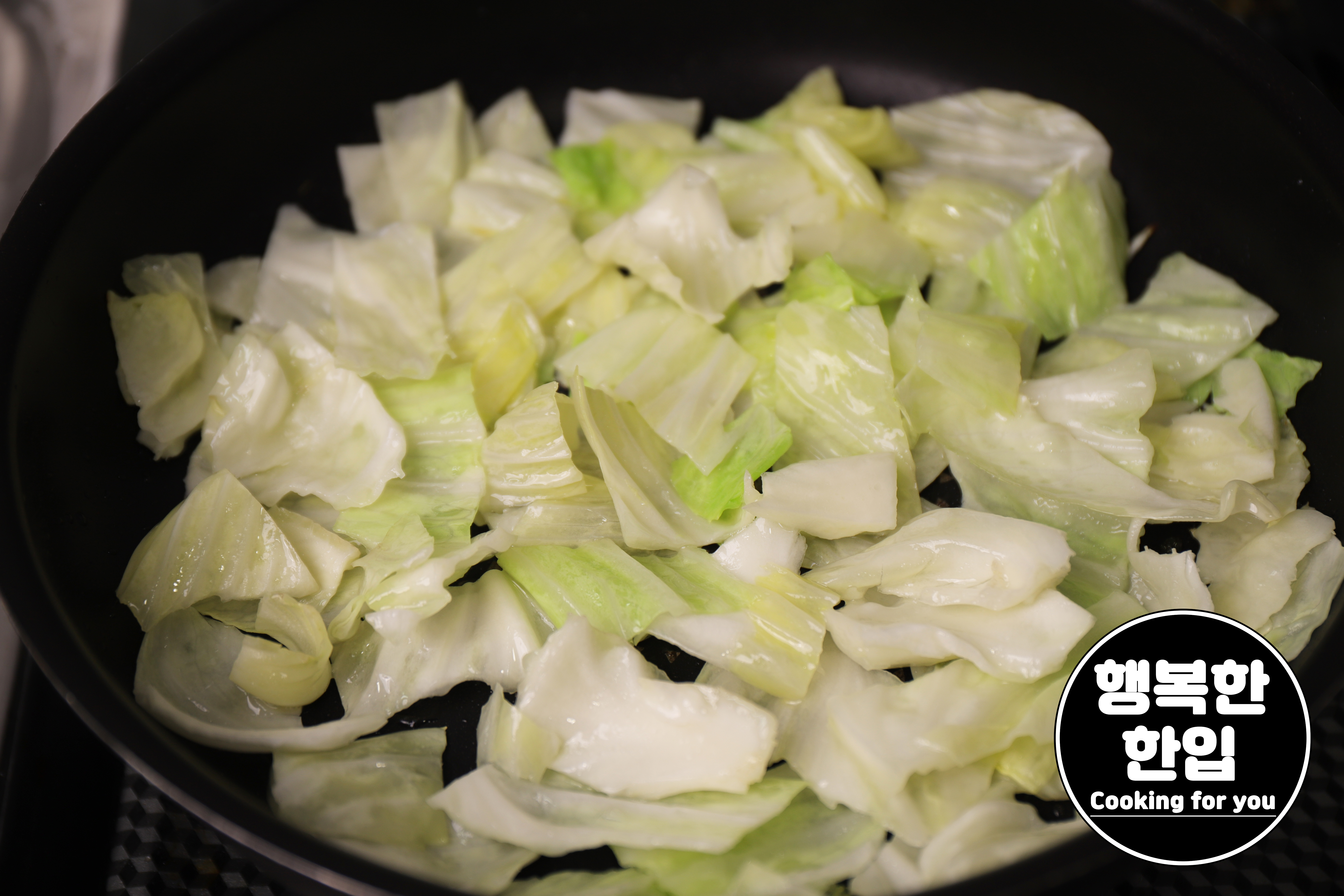 프라이팬에 식용유를 적당히 두르고 중불에서 양배추를 볶아주세요.
