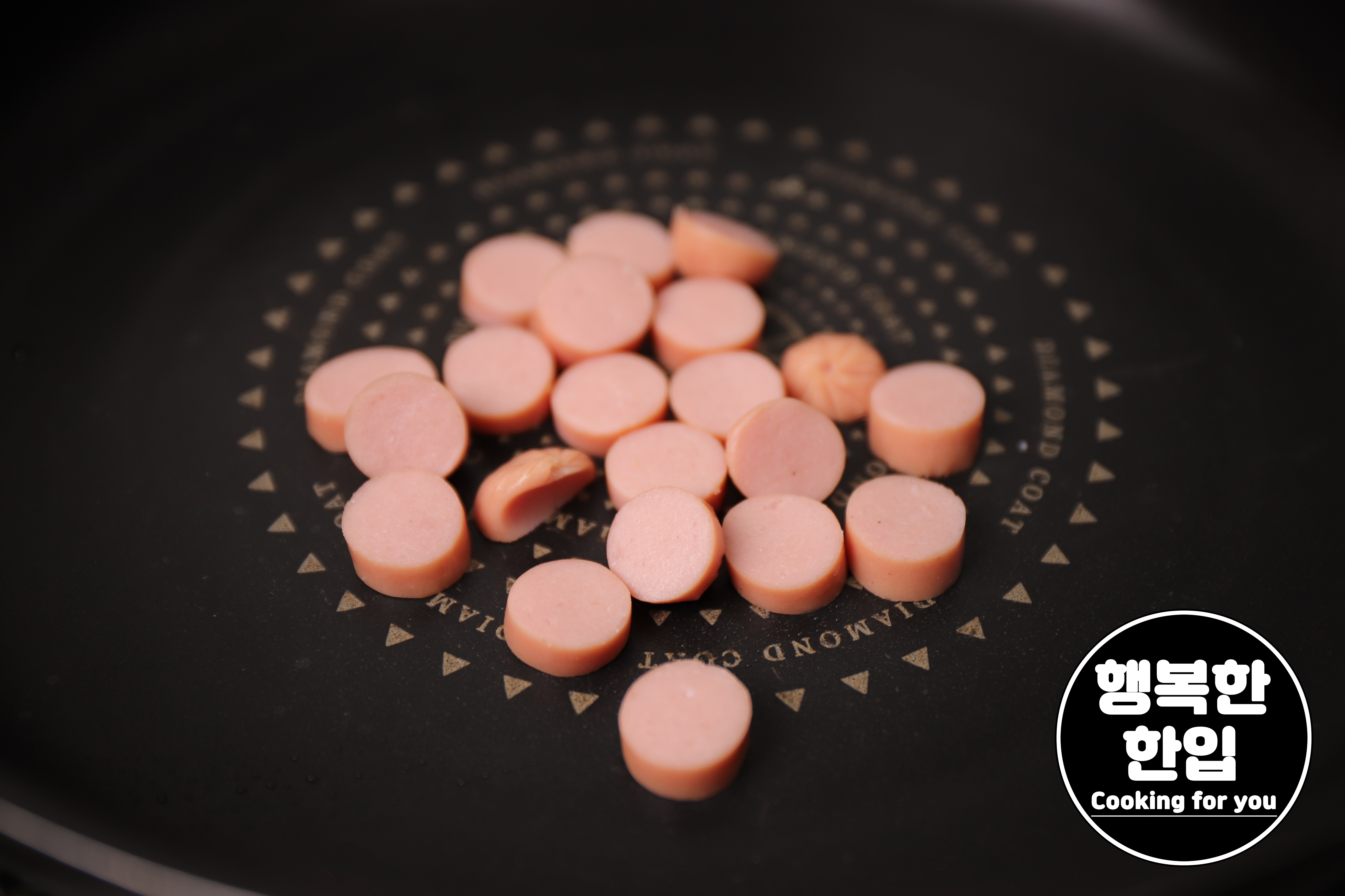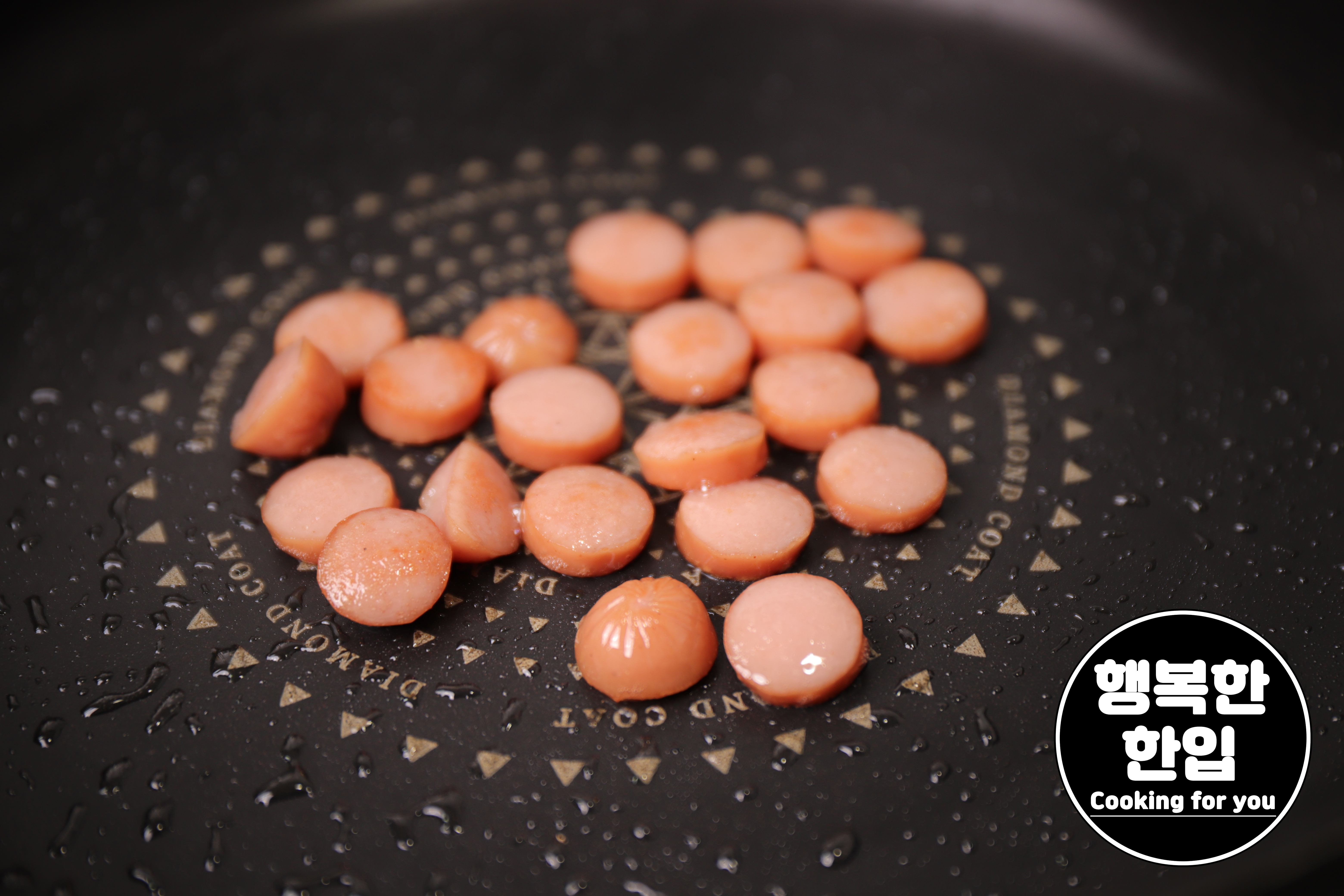 프라이팬에 식용유를 살짝만 둘러주고 준비한 소시지를 적당히 구워주세요.