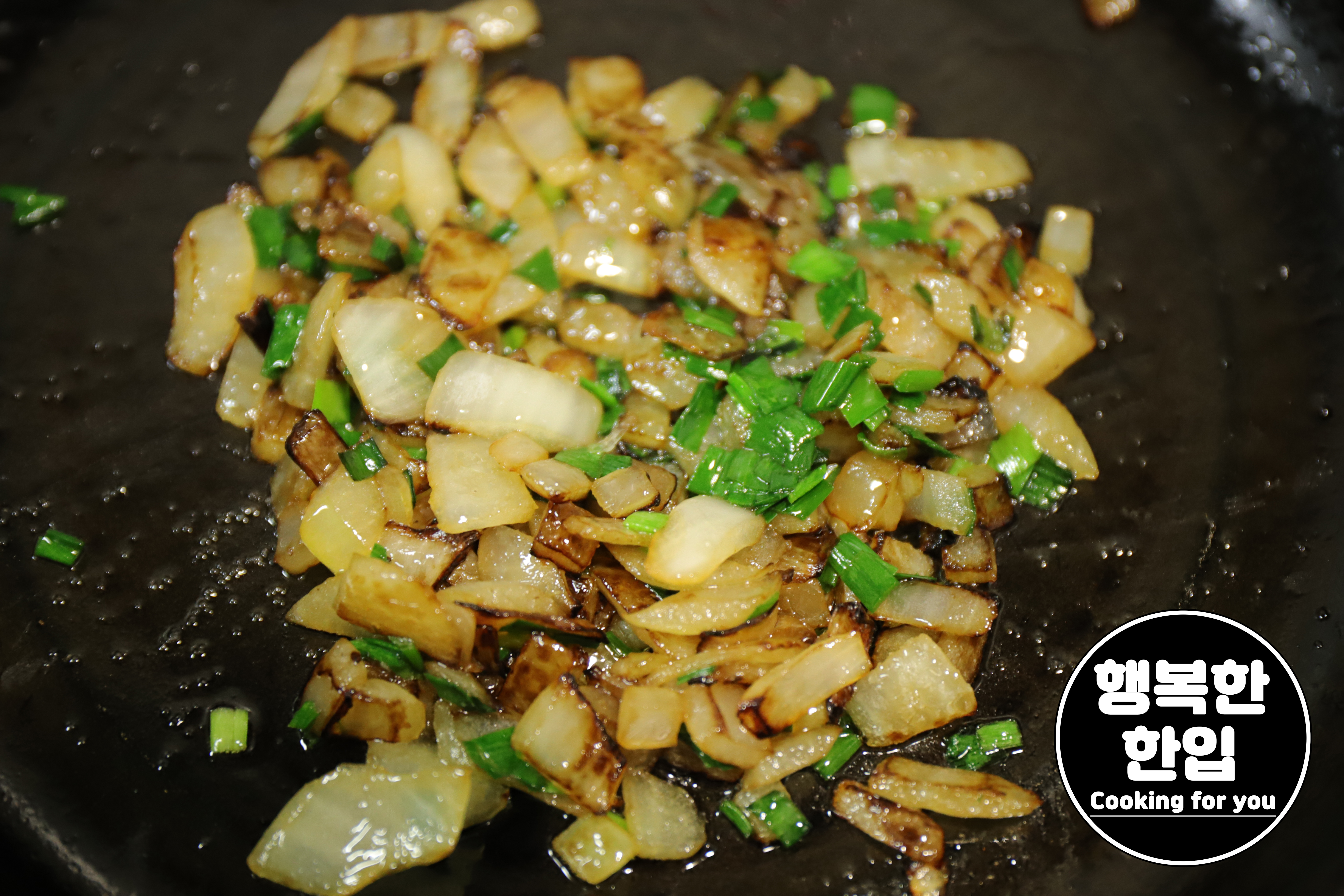 양파와 부추에 윤기가 나고 어느정도 볶아졌으면 가스불을 꺼주고 잠시 식혀주세요.