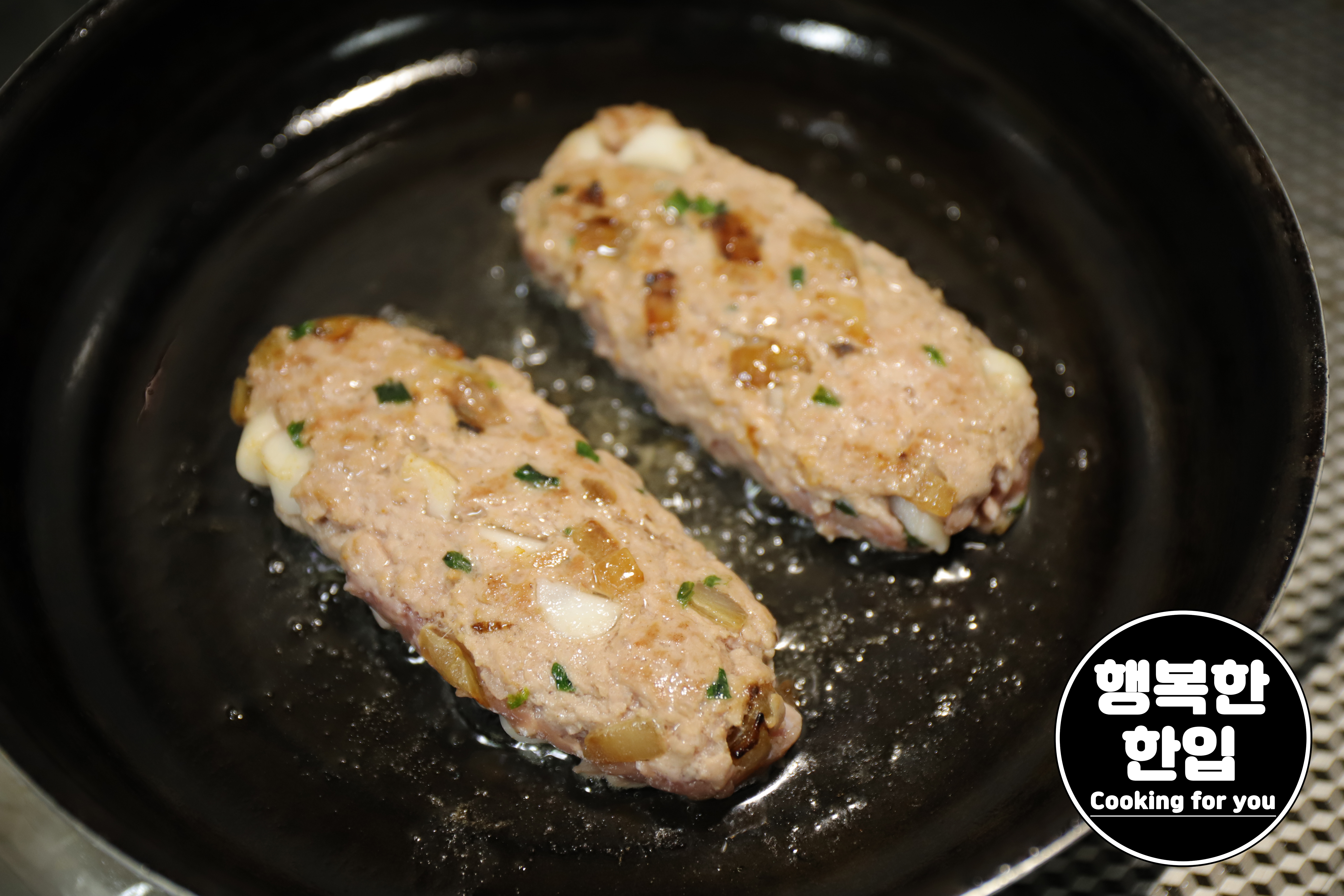 야채와 떡볶이를 고기와 함께 섞은 후 잘 뭉쳐주세요.