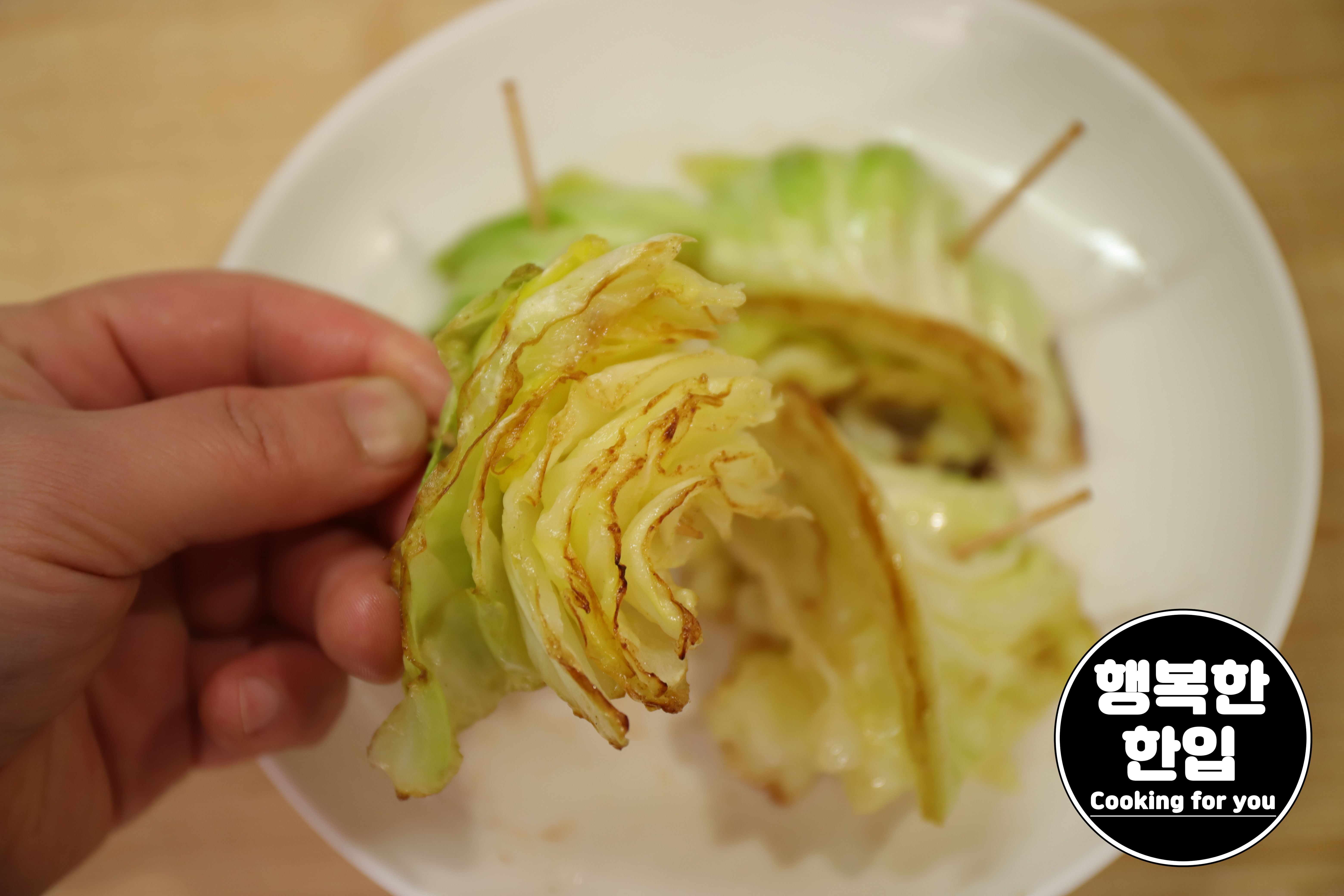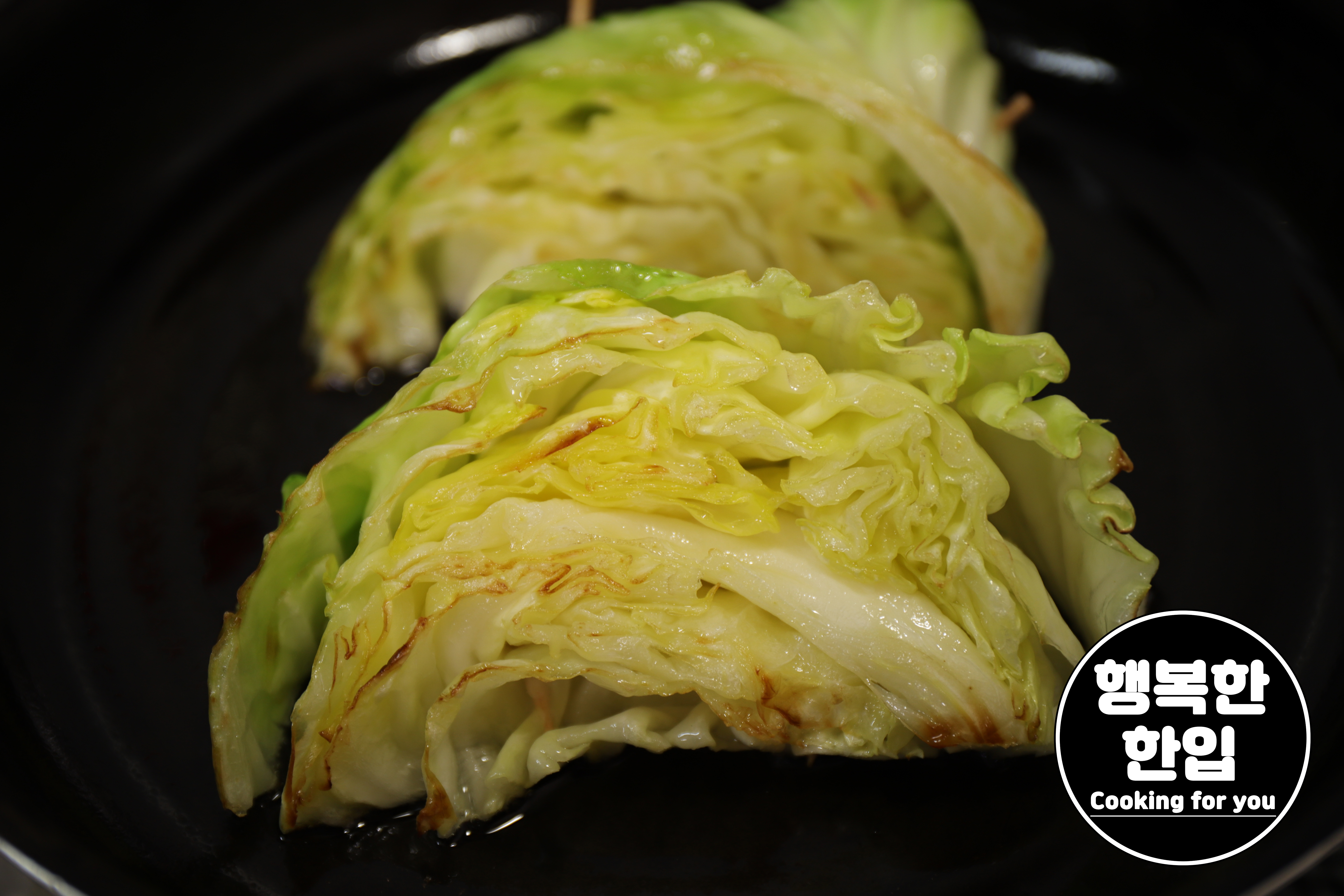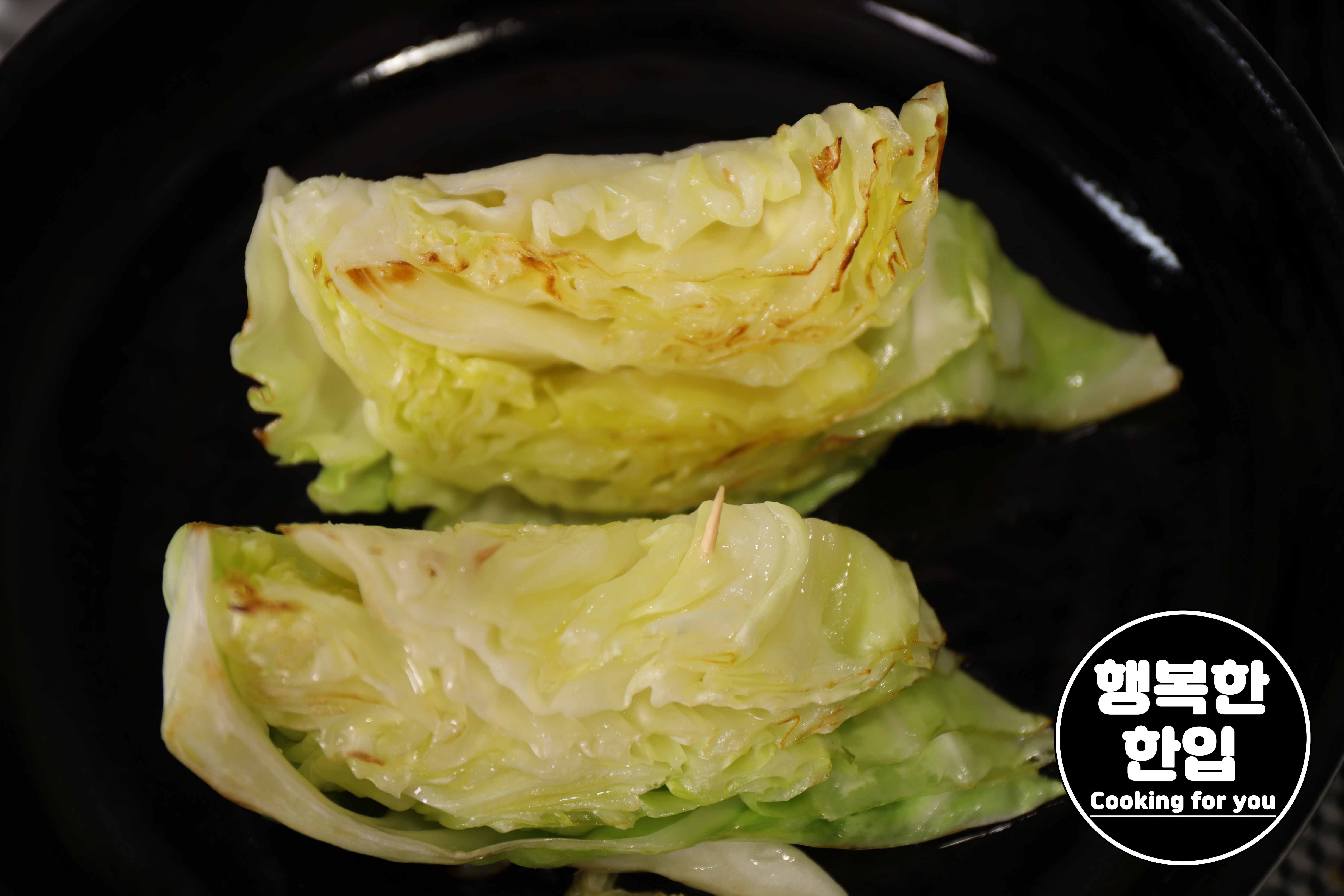 양배추가 노릇노릇 구워지면 불을 끄고 접시에 옮겨주세요.