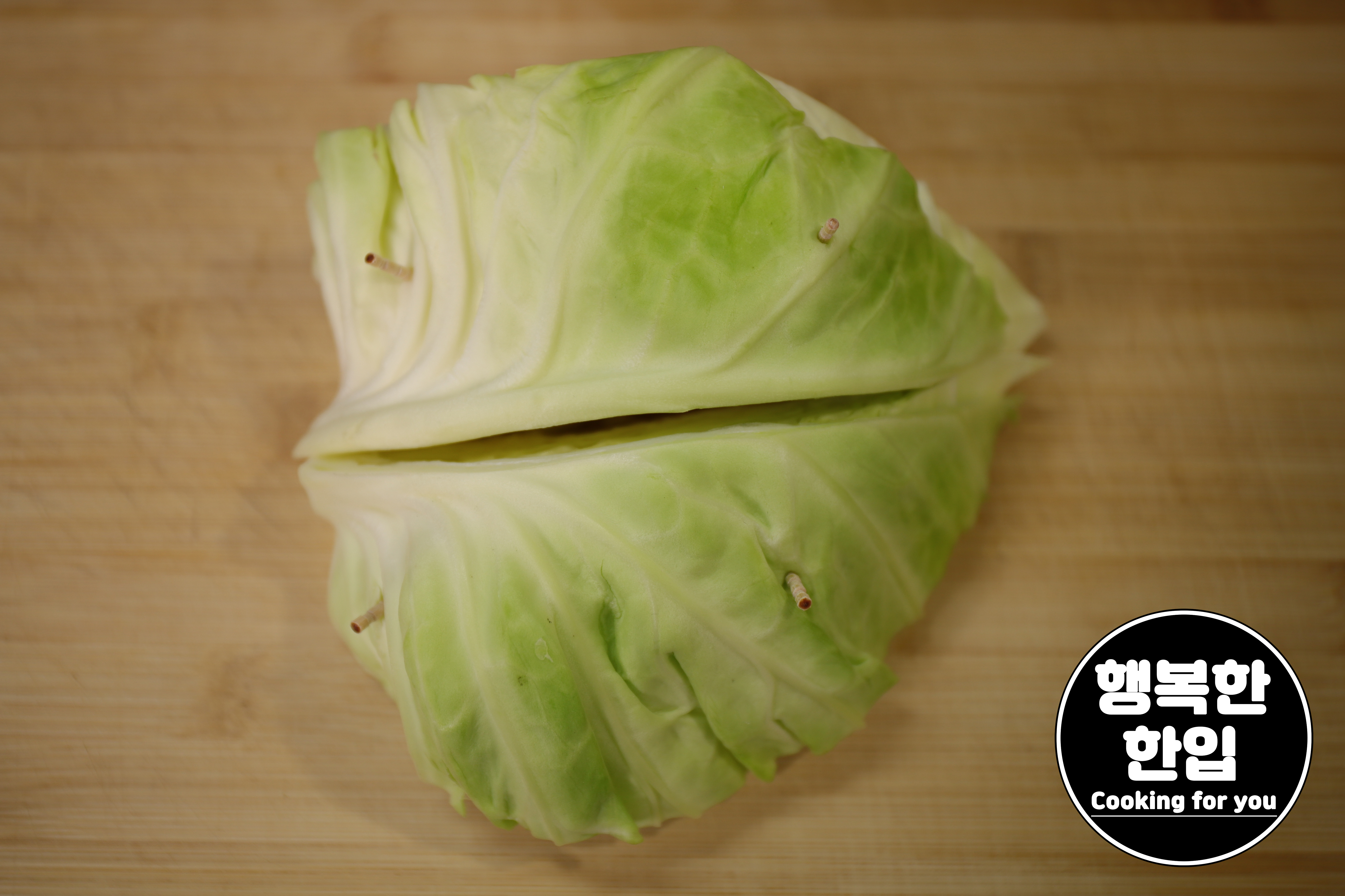 양배추는 더러운 부분을 떼어주고 1/4크기를 준비해주세요.