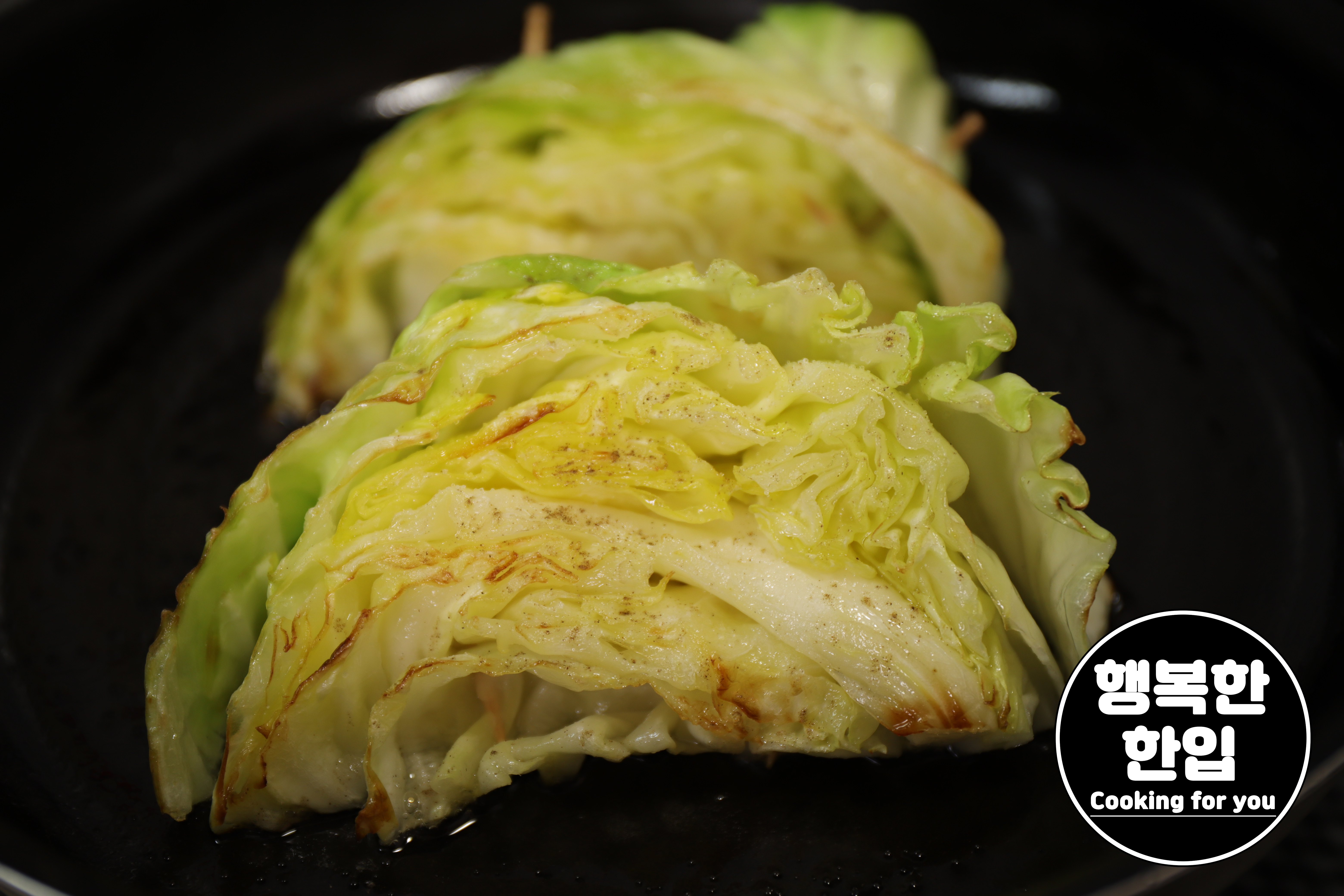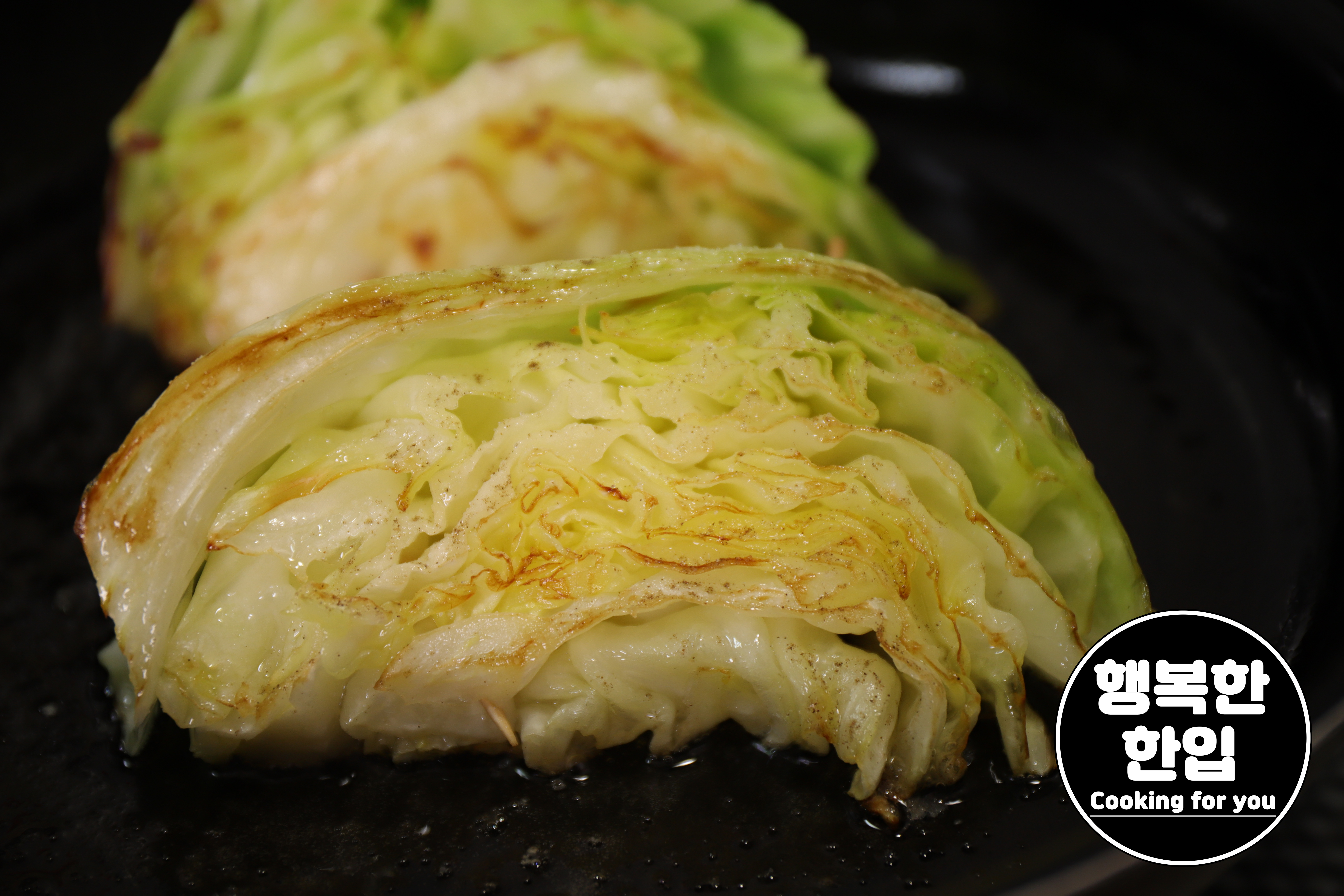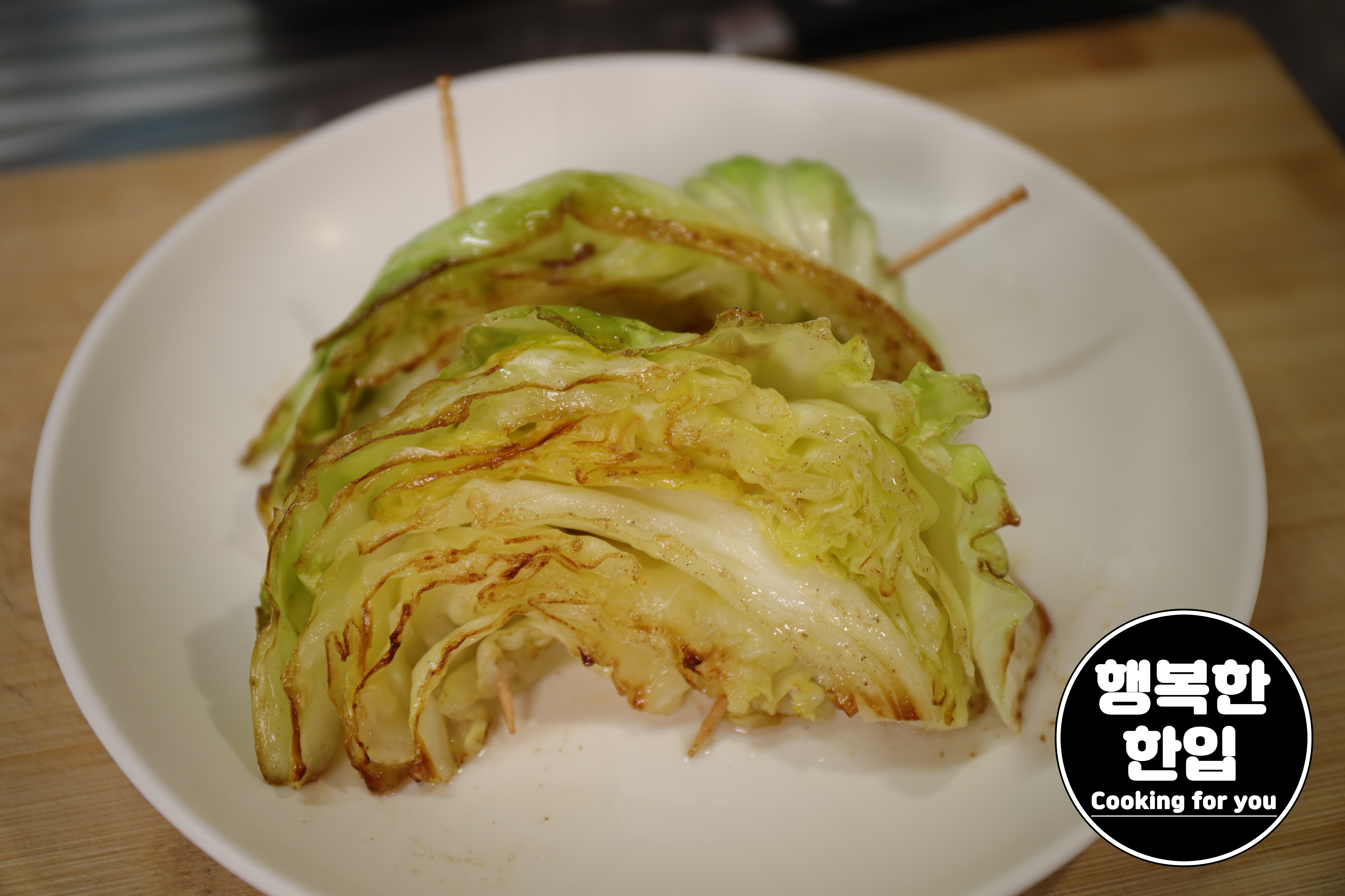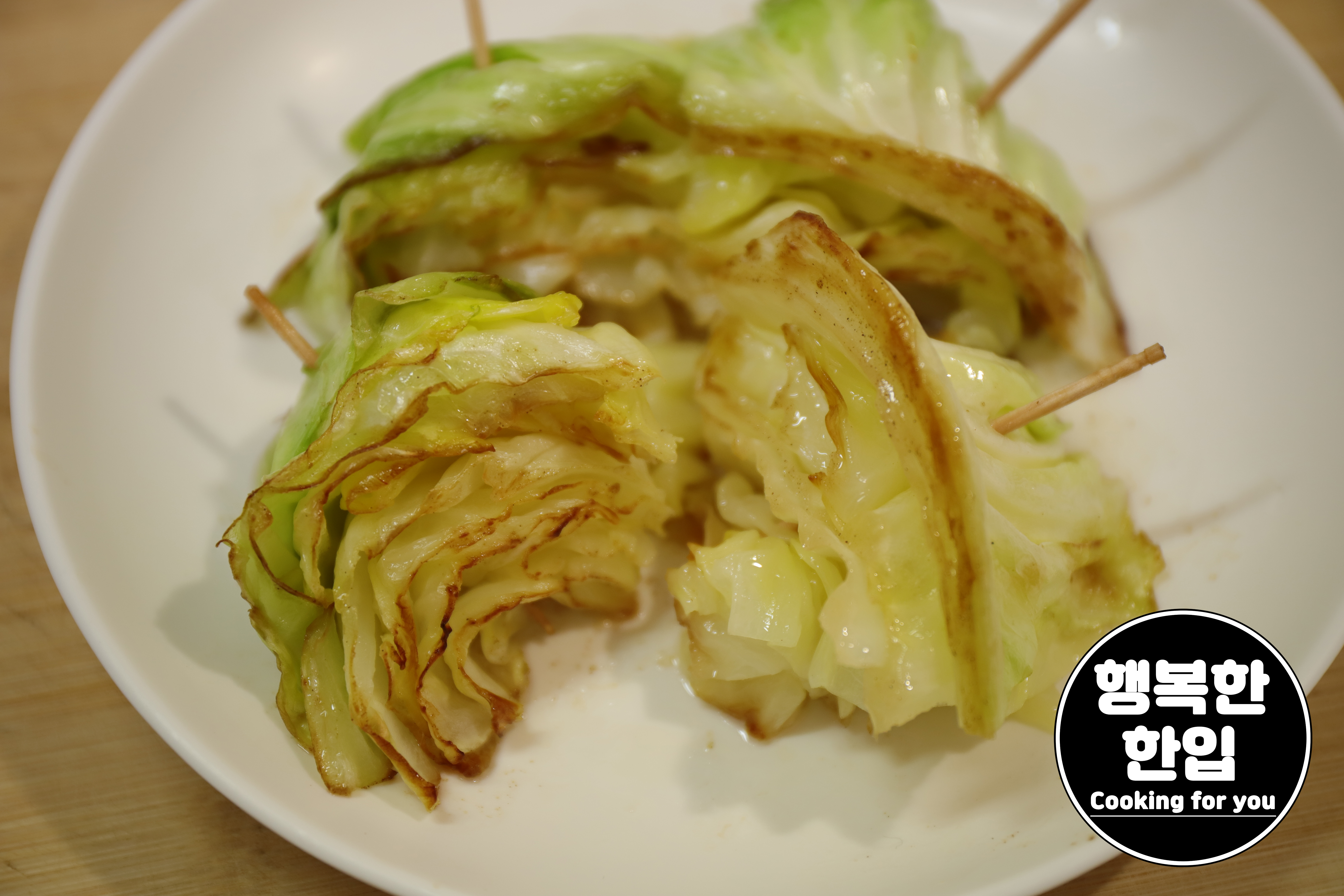 양배추가 노릇노릇 구워지면 불을 끄고 접시에 옮겨주세요.