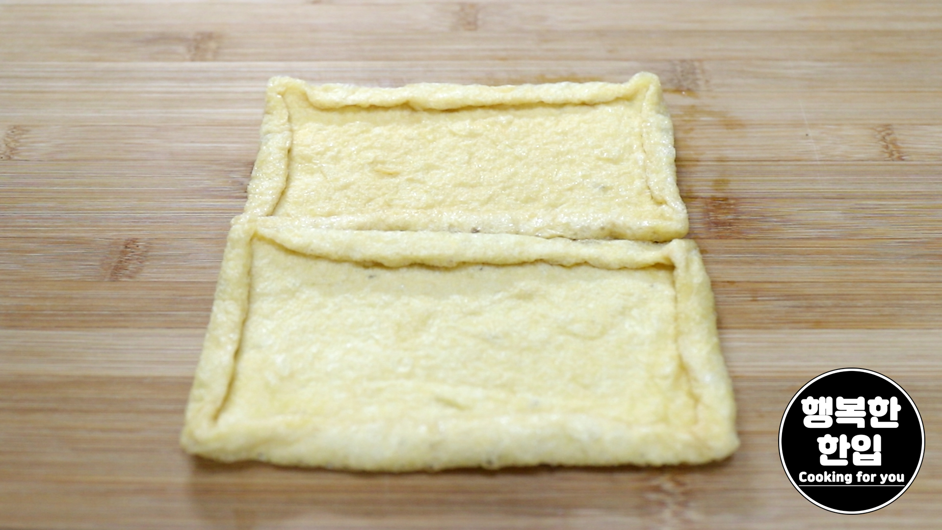 먼저 조미되어 있지 않은 유부 2장 준비해주세요.