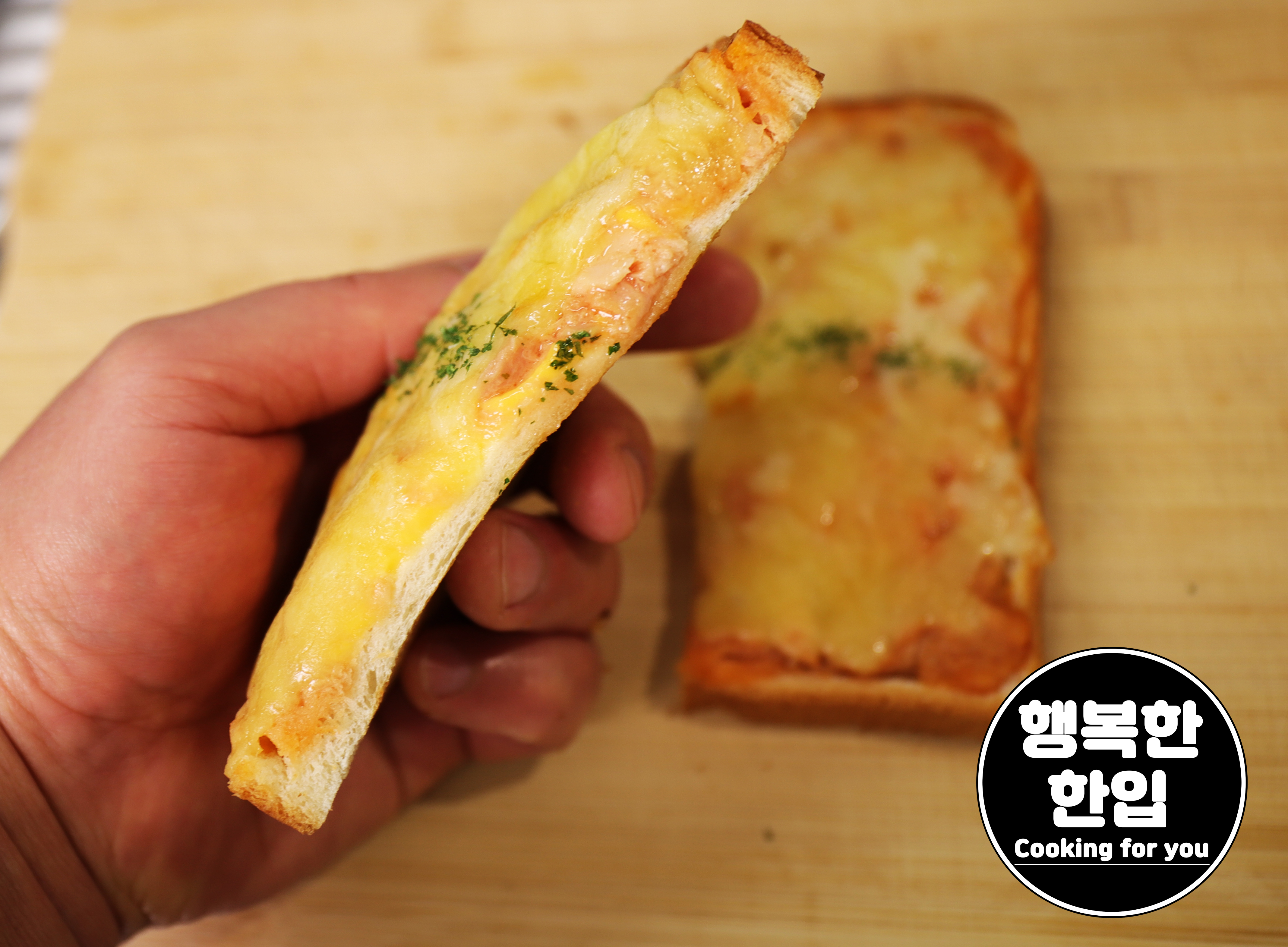 잘 구워진 치즈토스터 위에 파슬리가루를 샤샤샥~ 뿌려주면 먹을 준비 끝~!