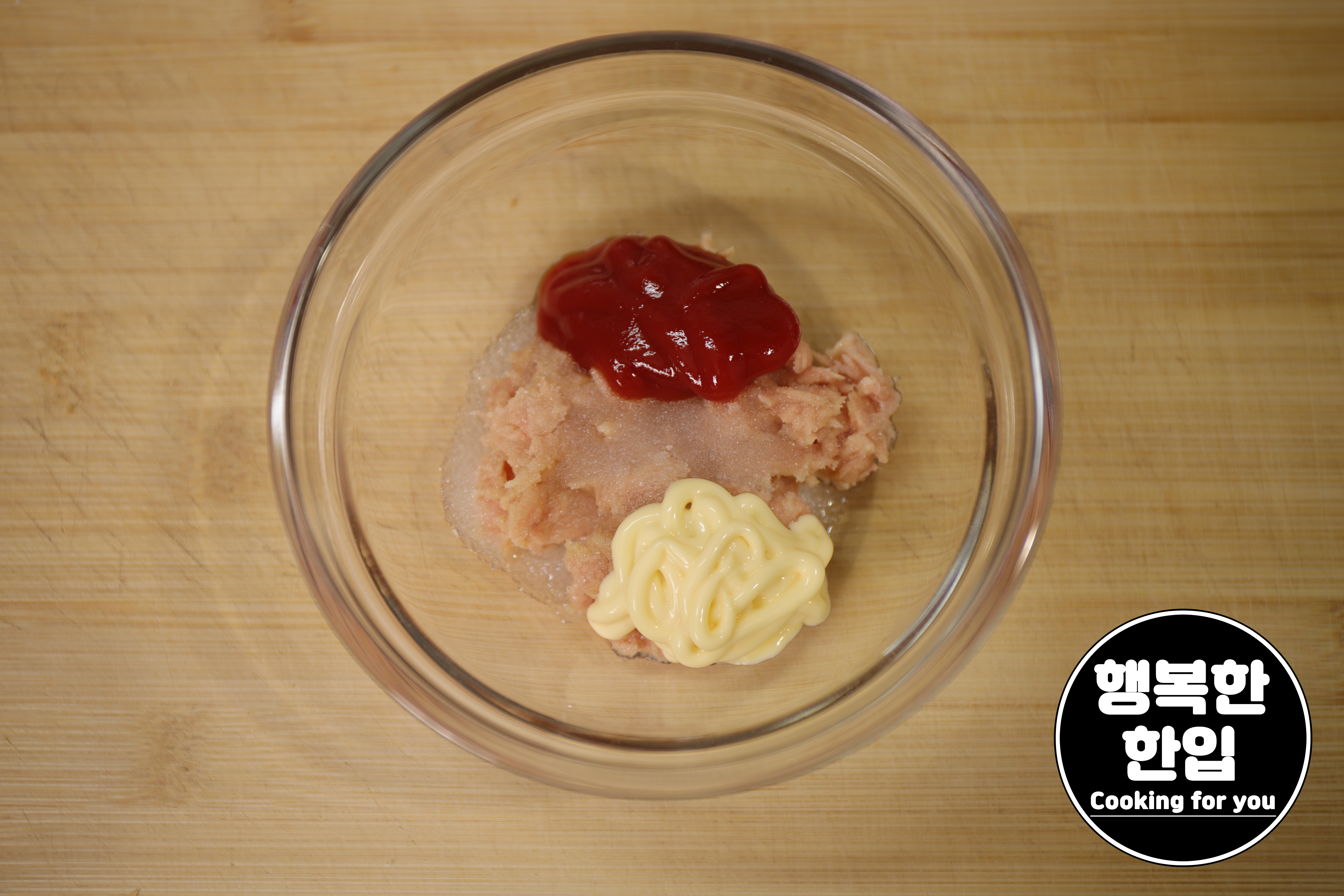 참치 2스푼, 설탕 1스푼, 토마토케첩 1스푼, 마요네즈 1스푼을 섞어줍니다. (식빵 한장 기준)