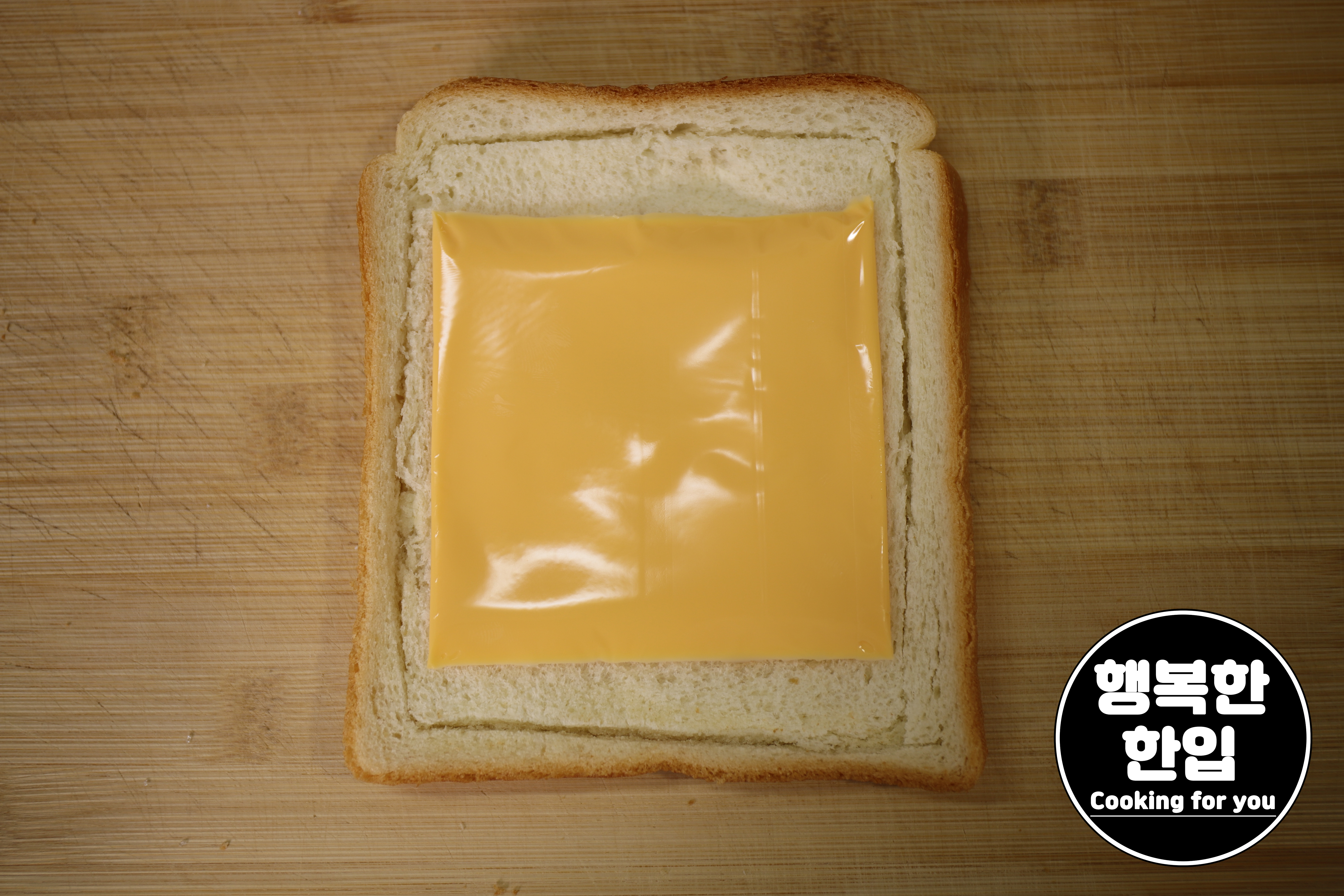 식빵 위에 체다치즈 한장을 올려줍니다.