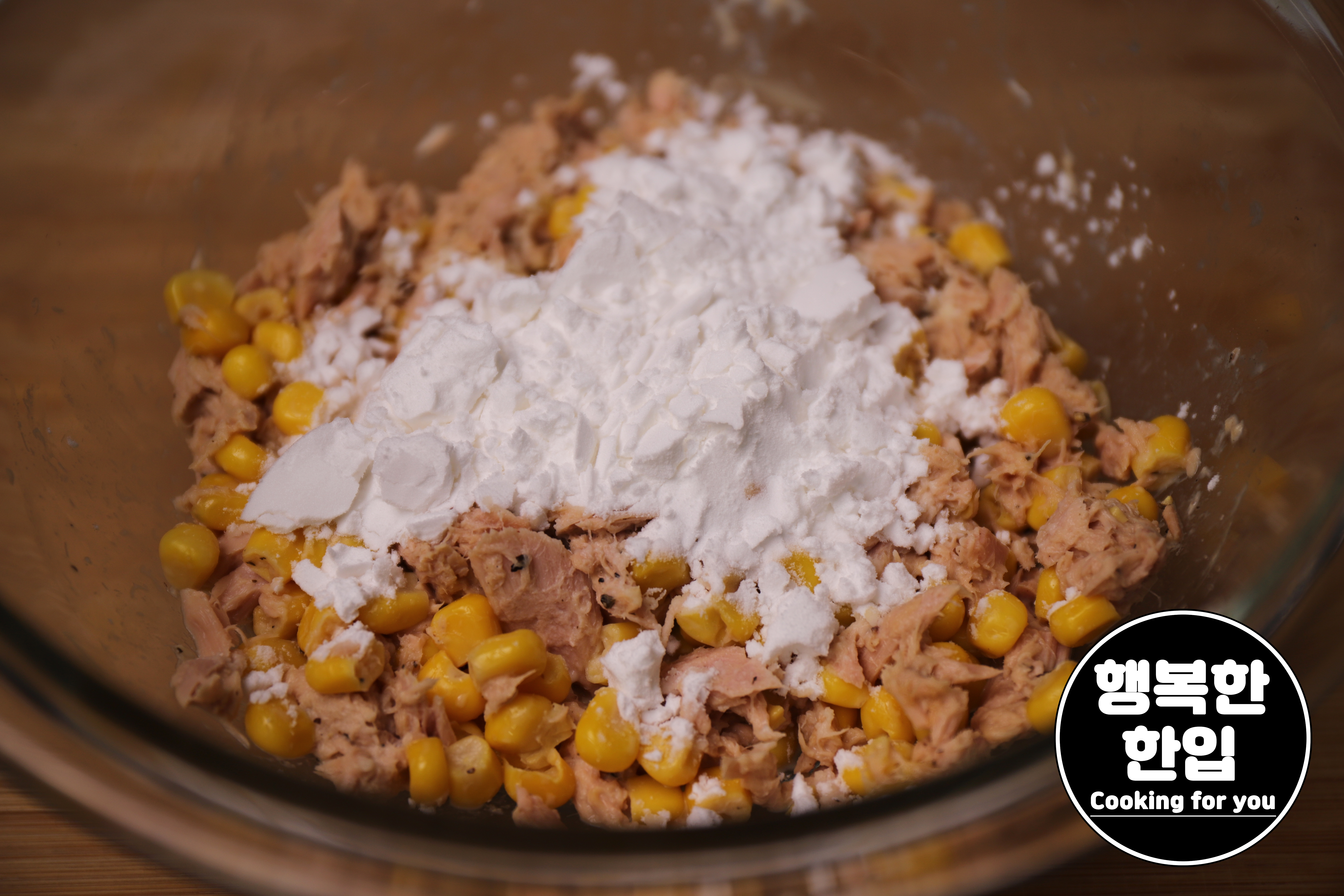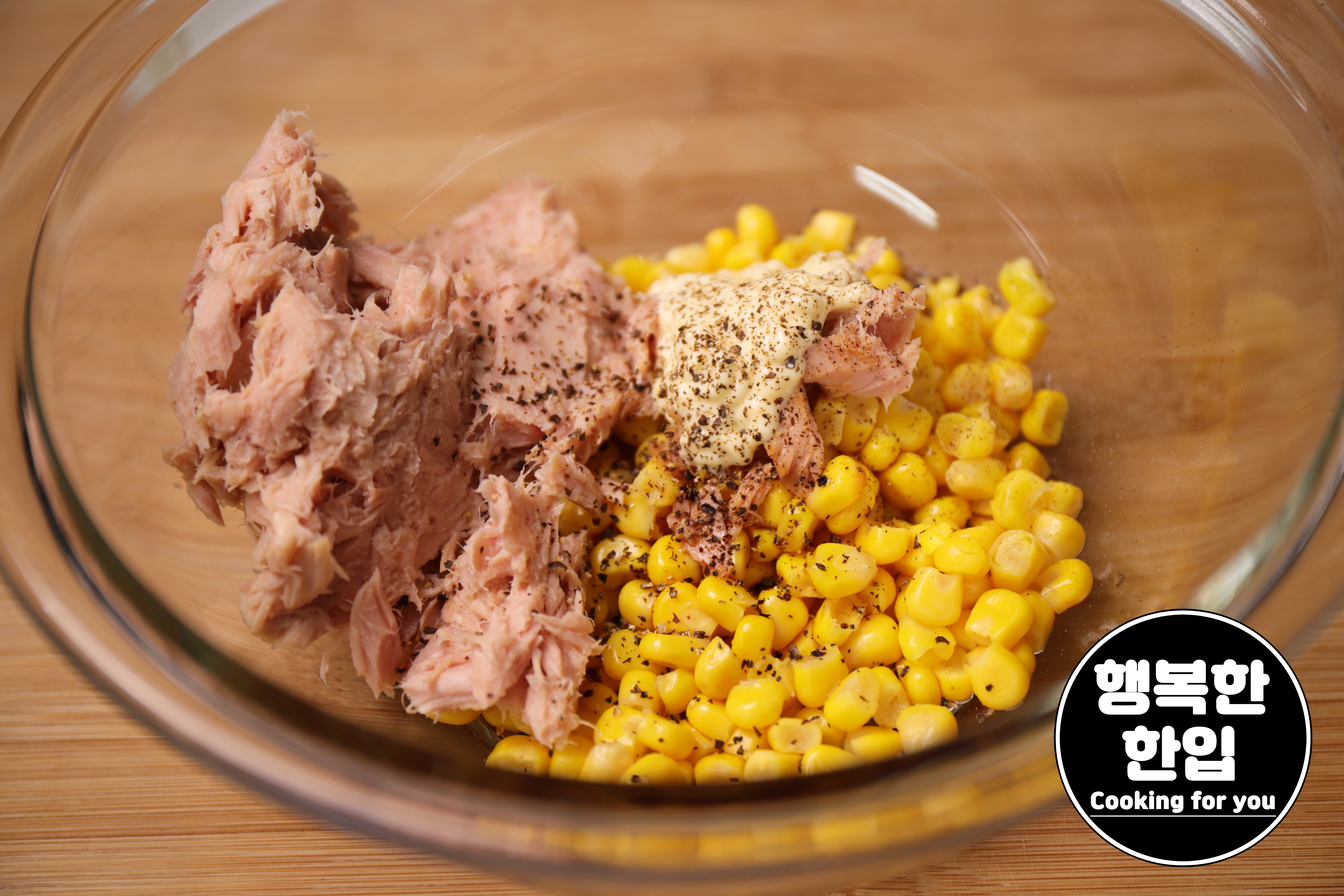 스위트콘 120g, 통조림 참치 140g, 간장 1스푼, 마요네즈 1스푼, 블랙페퍼를 적당히 샤샤샥~! 잘 섞어주세요.