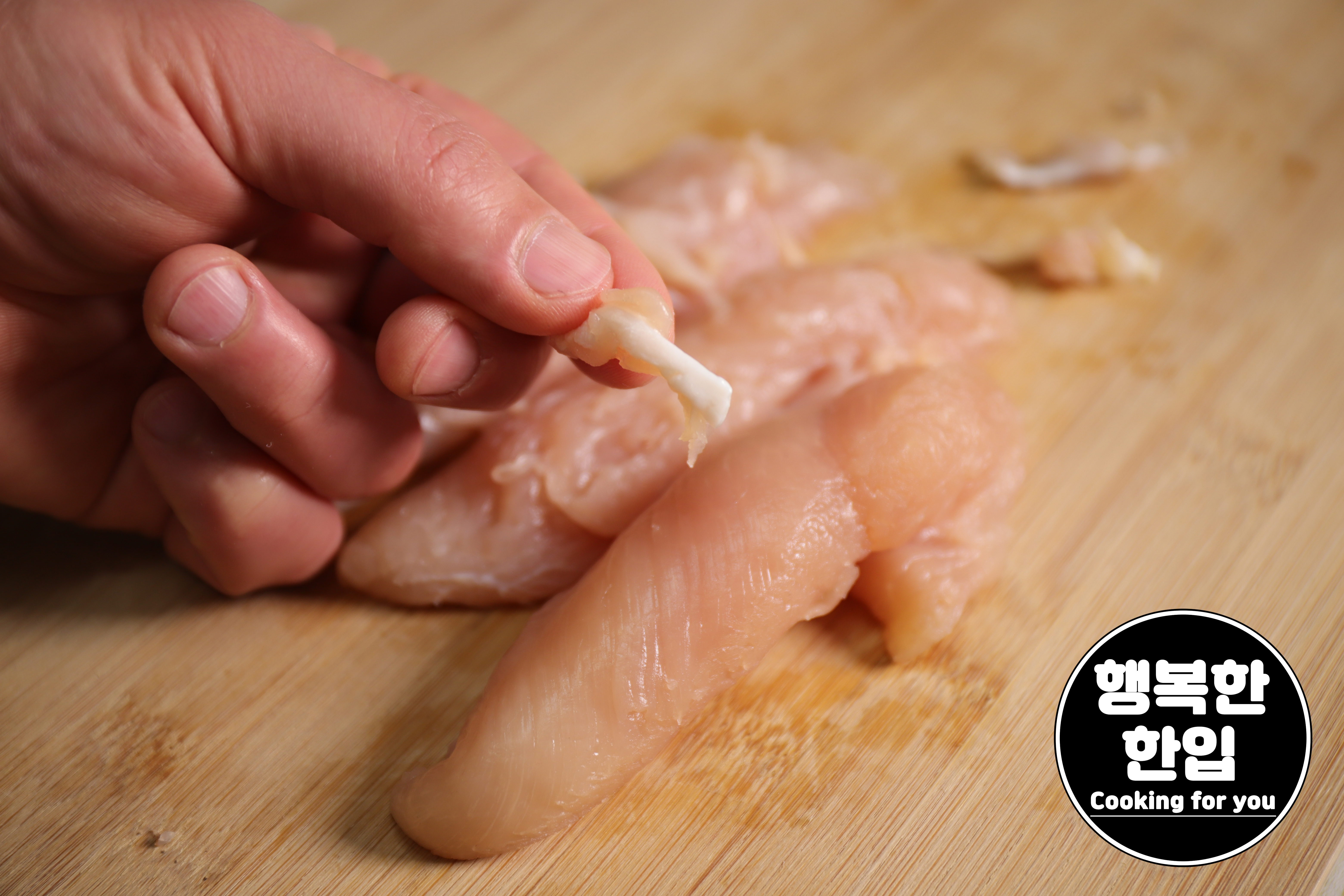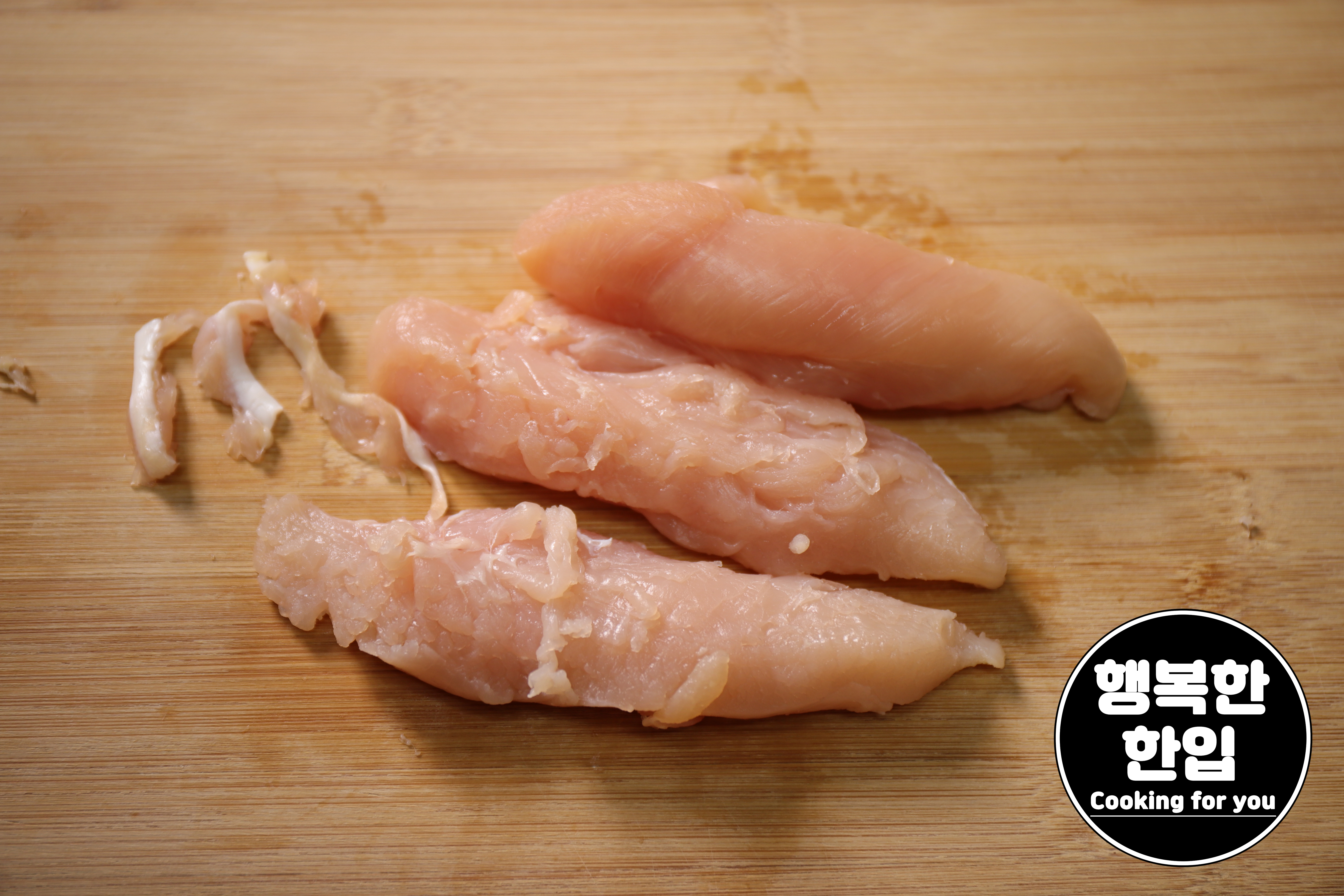 닭안심살 부분에 있는 힘줄은 칼로 제거해주세요.