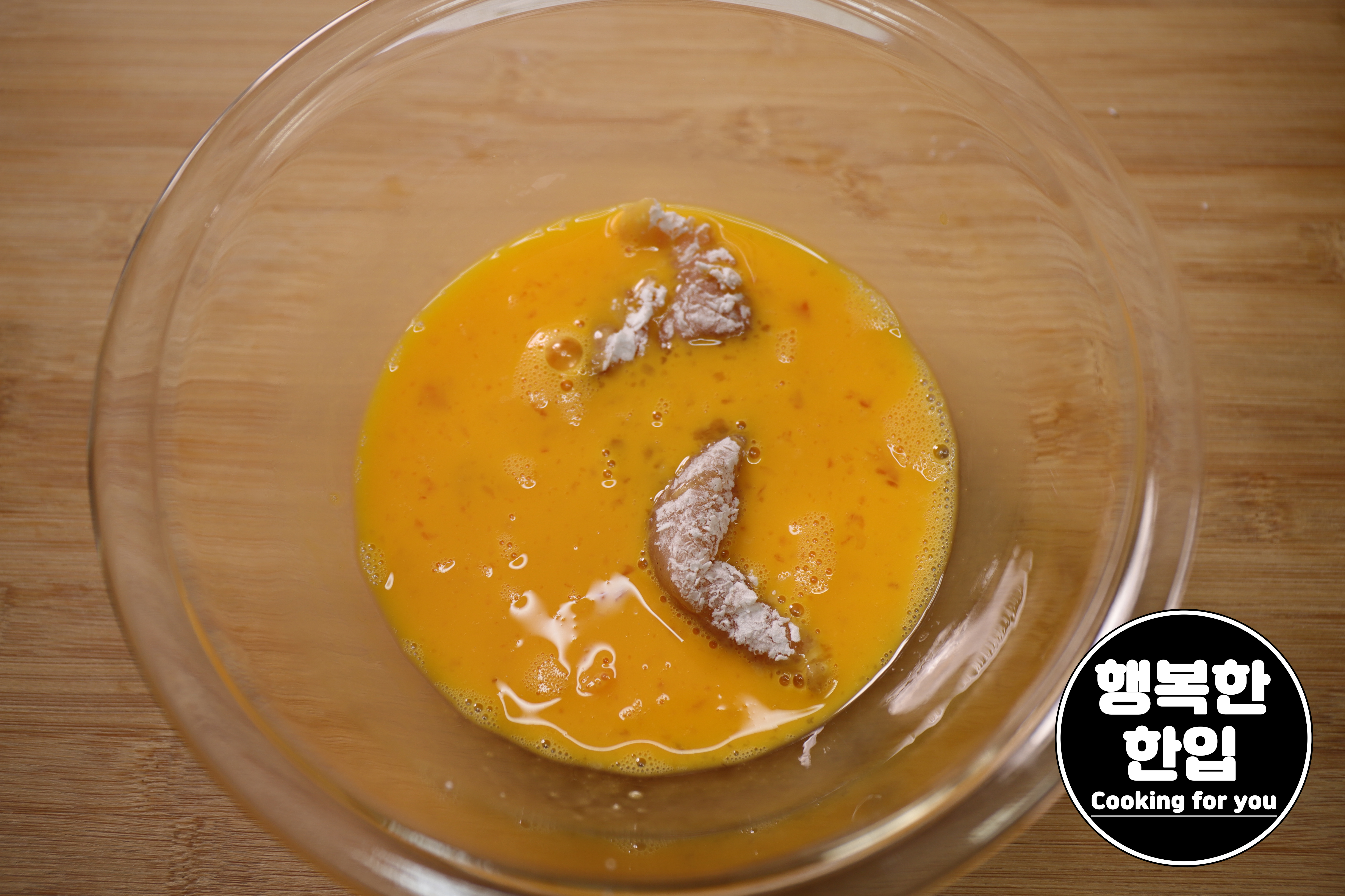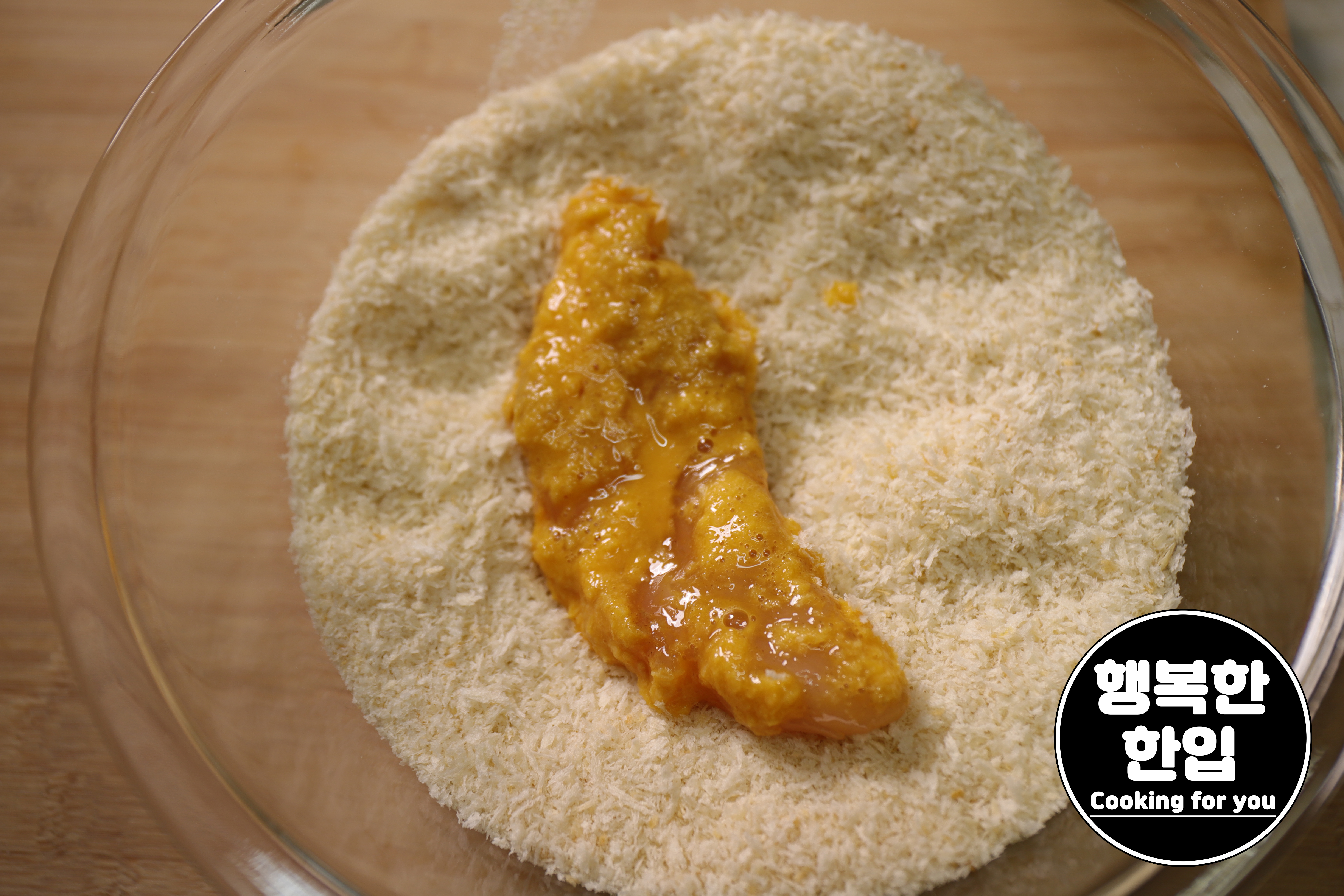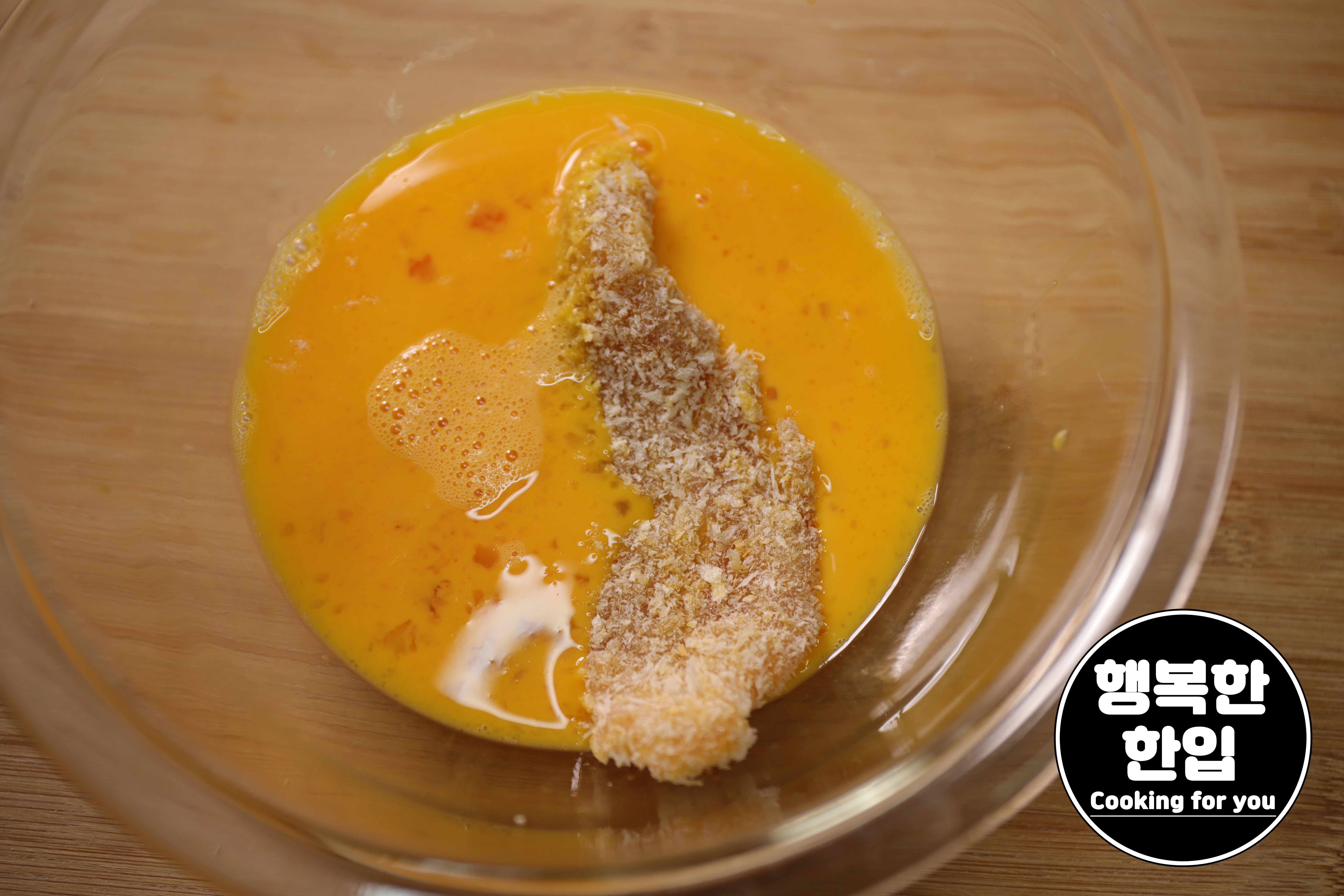 푼계란에 적신 후 빵가루를 잘 입혀주세요. (2~3번정도 반복해주세요.)