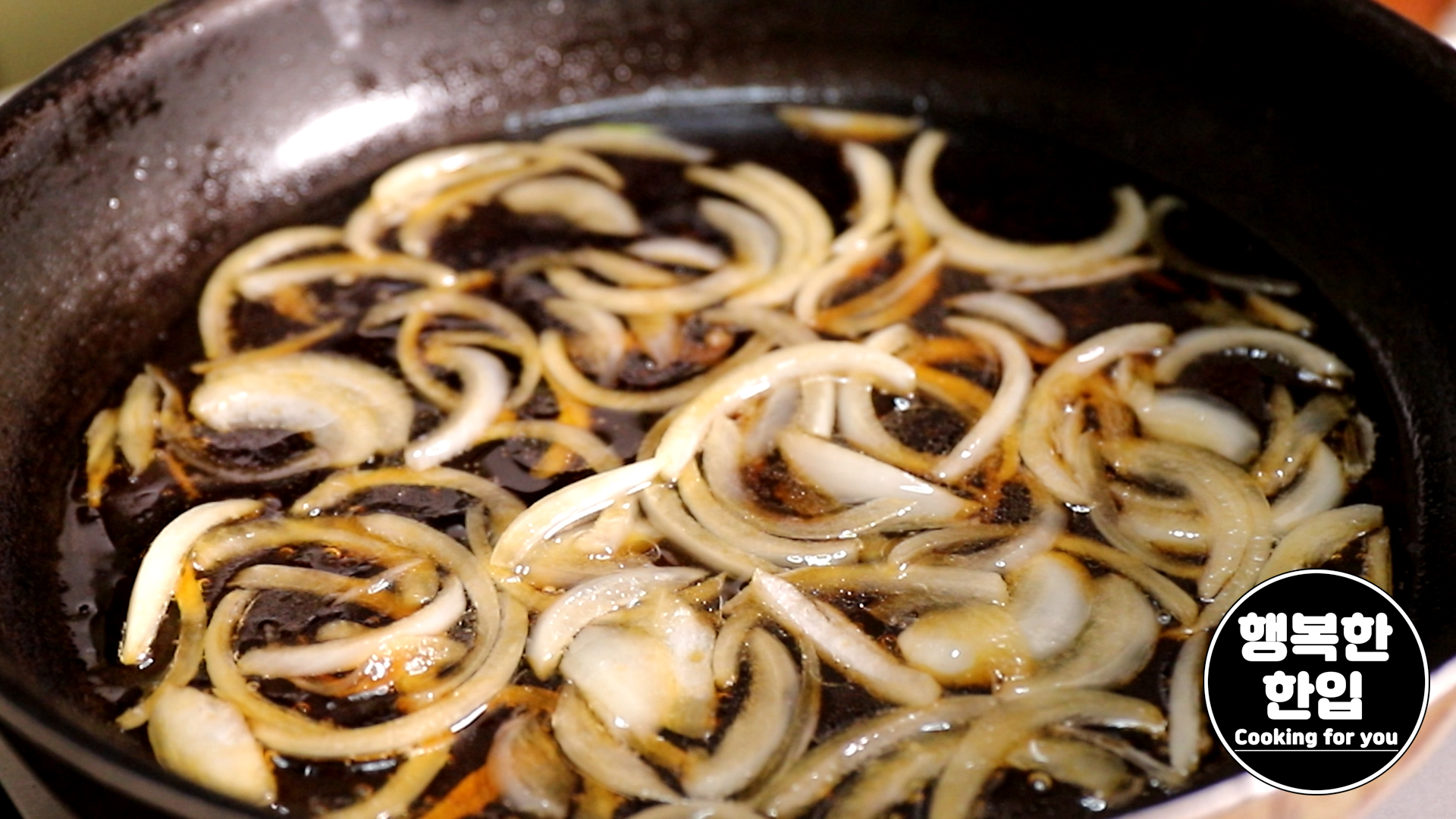 양파가 흐물흐물해지면 설탕 2.5스푼, 간장 2.5스푼, 미림 2스푼, 소주 2스푼, 물 50ml을 잘 섞어서 프라이팬에 부어줍니다.