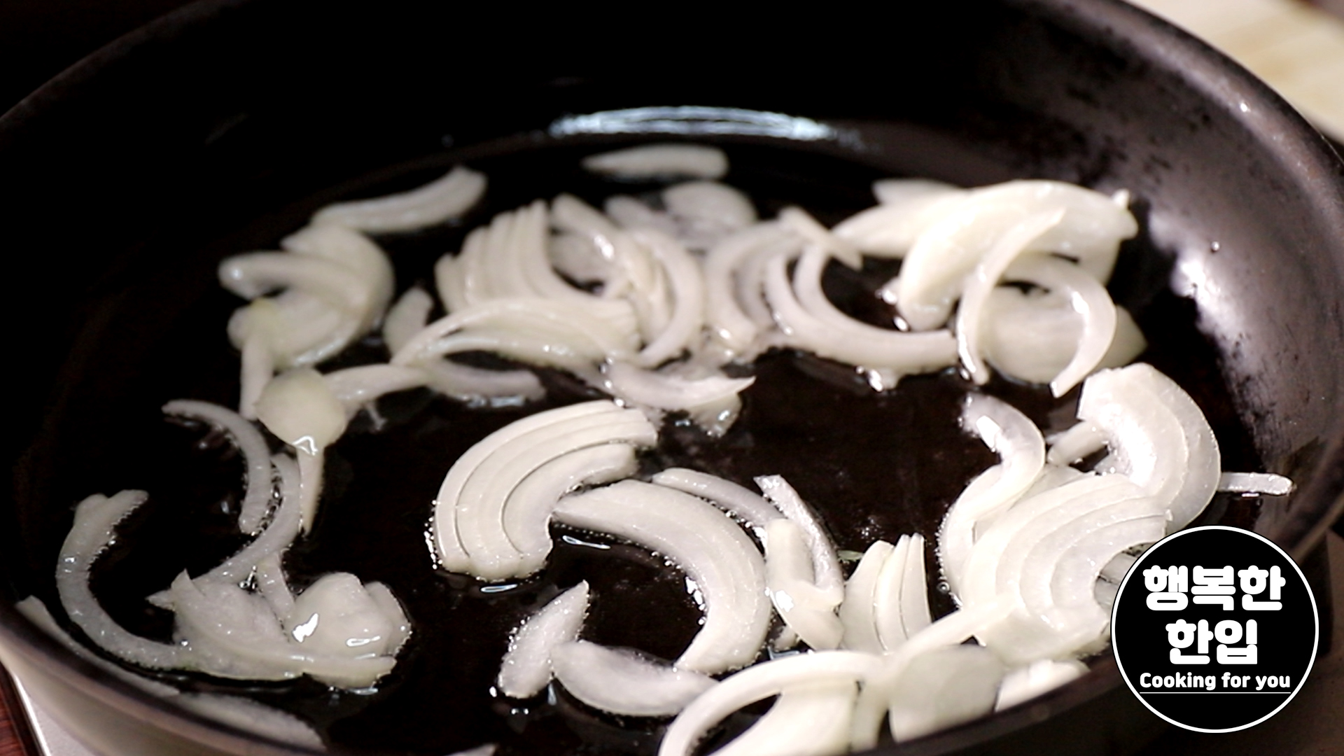 달구어진 프라이팬에 식용유를 적당히 두르고 양파 1/4정도를 볶아주세요.