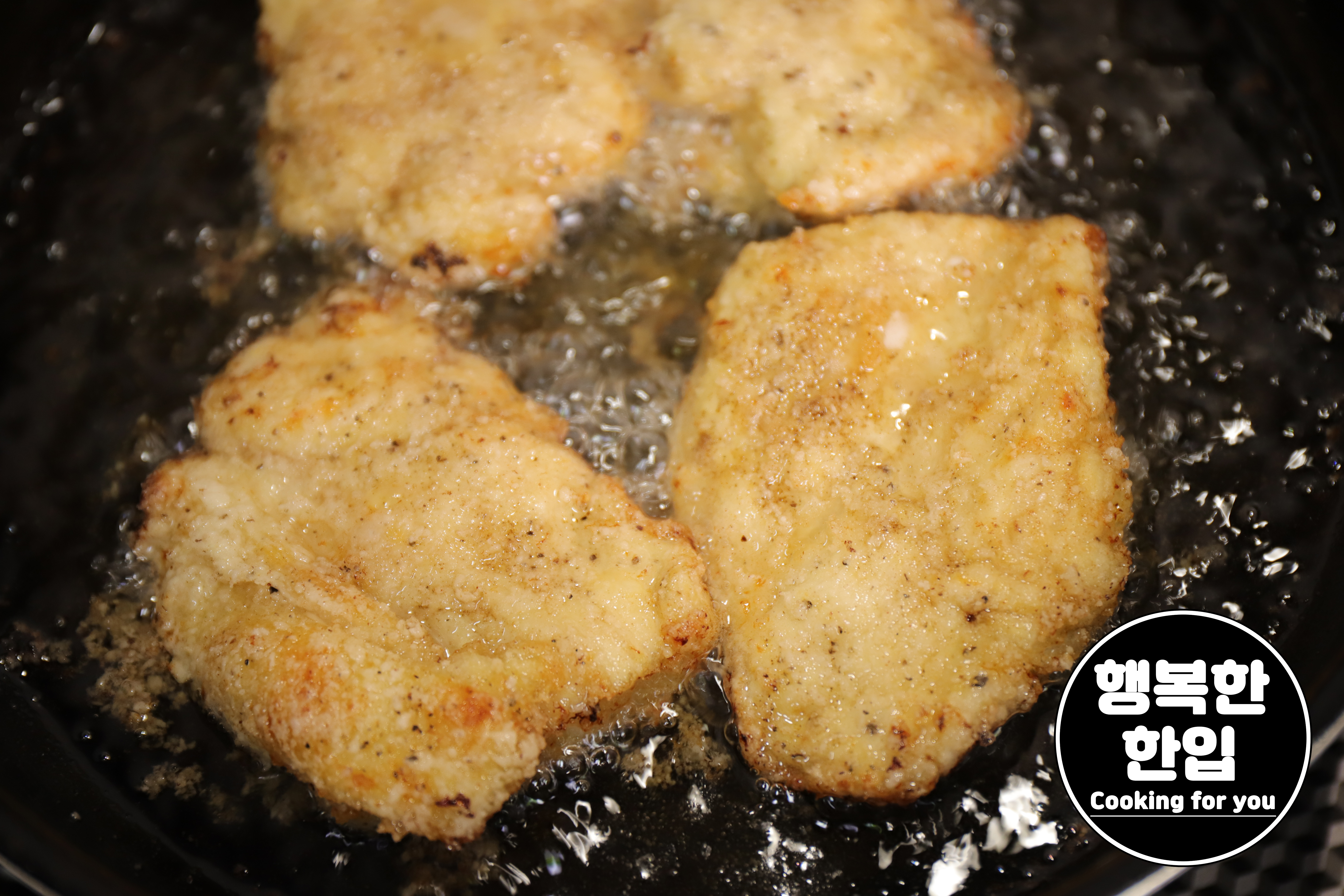 식용유양은 닭가슴살이 잠길듯 말듯 할 정도면 충분합니다.