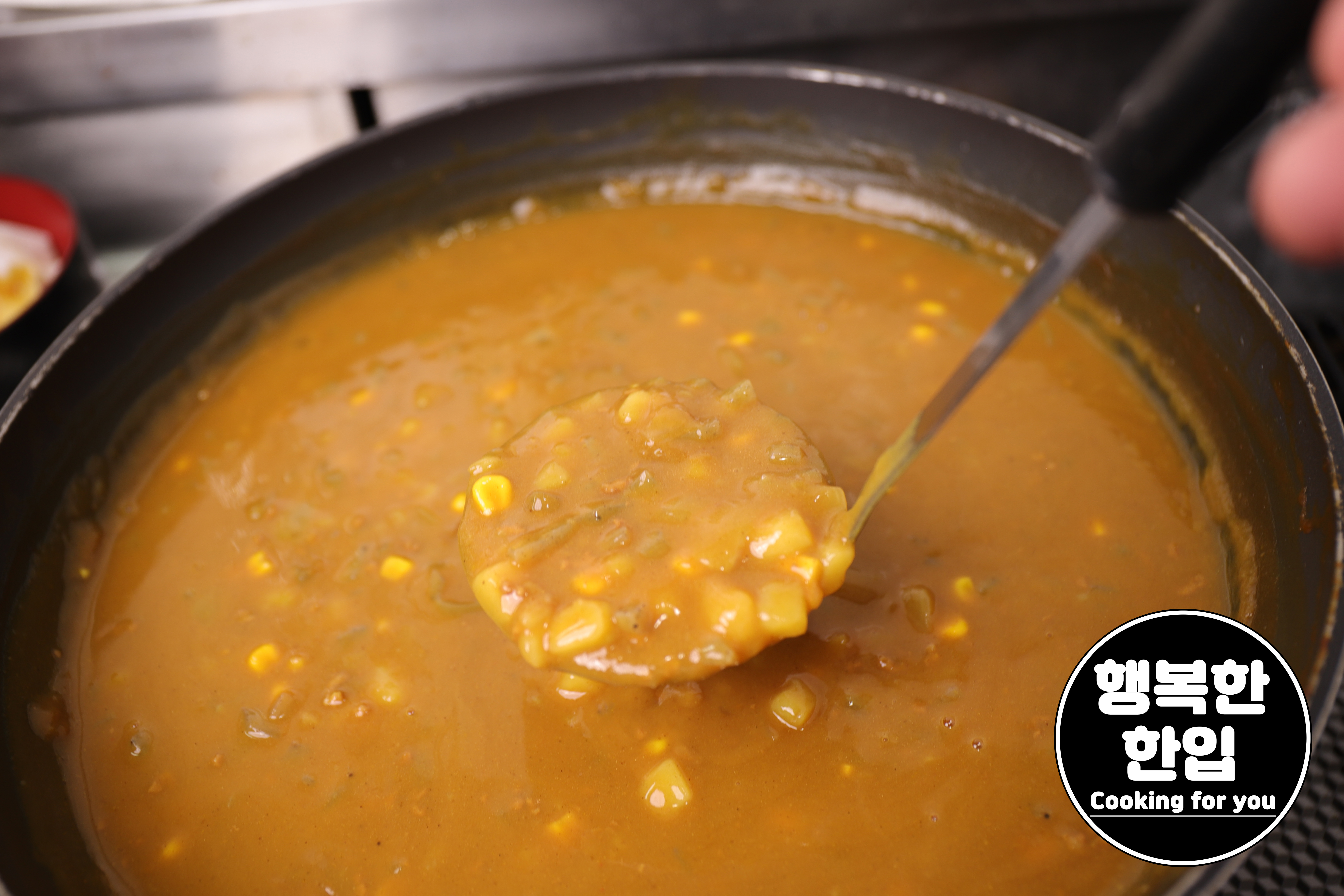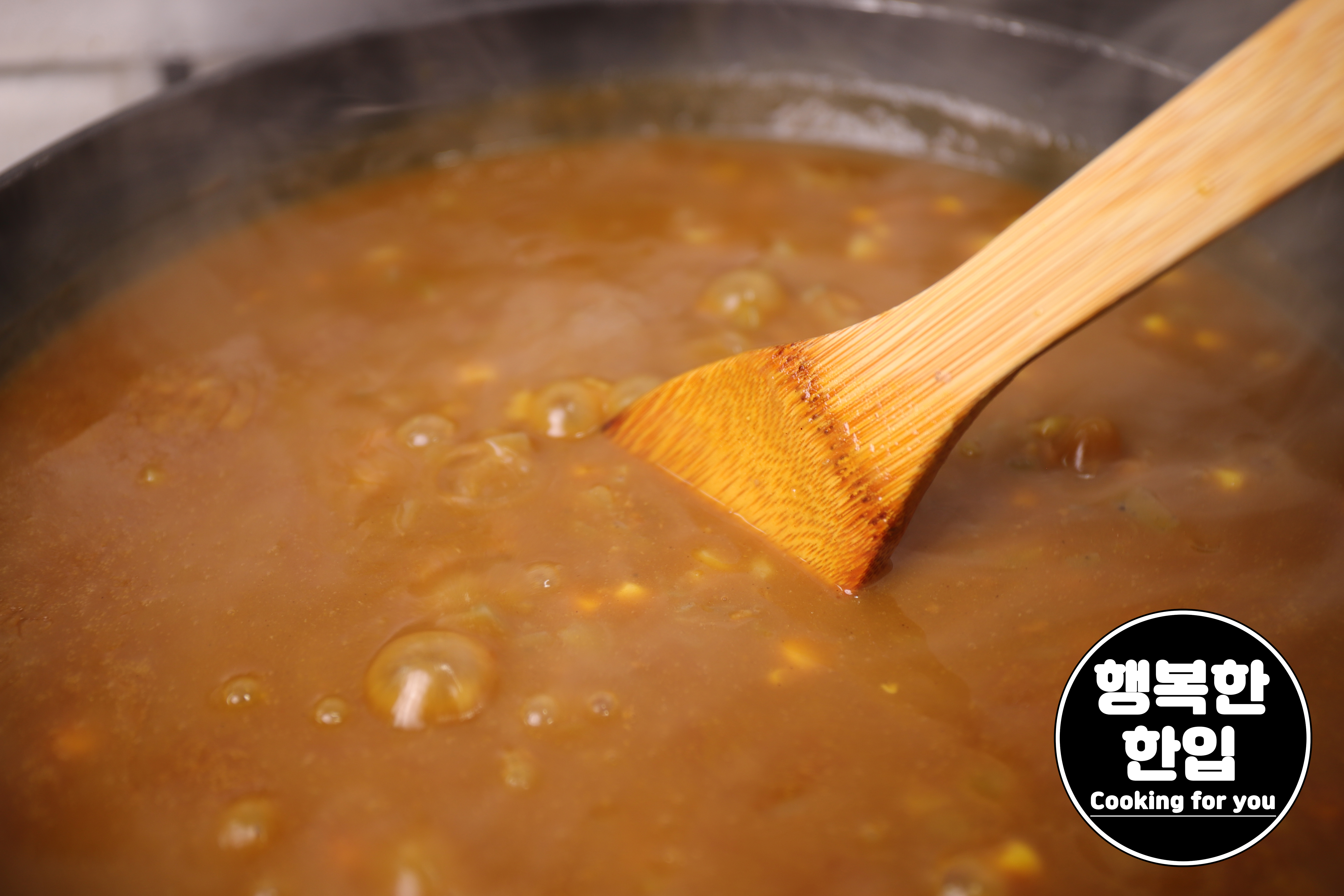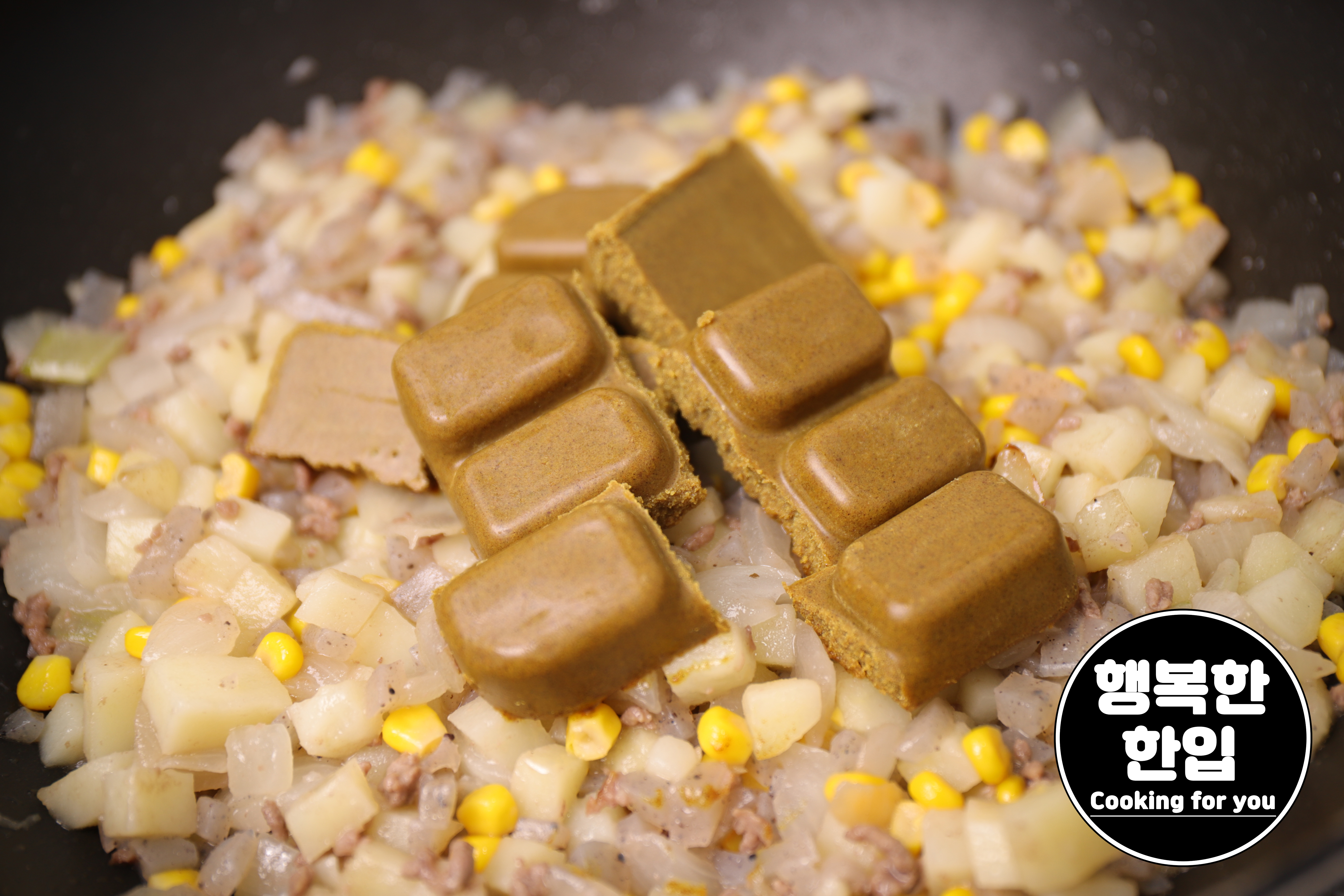 설탕 3스푼과 고형카레 230g (12인분용)을 넣어주세요.