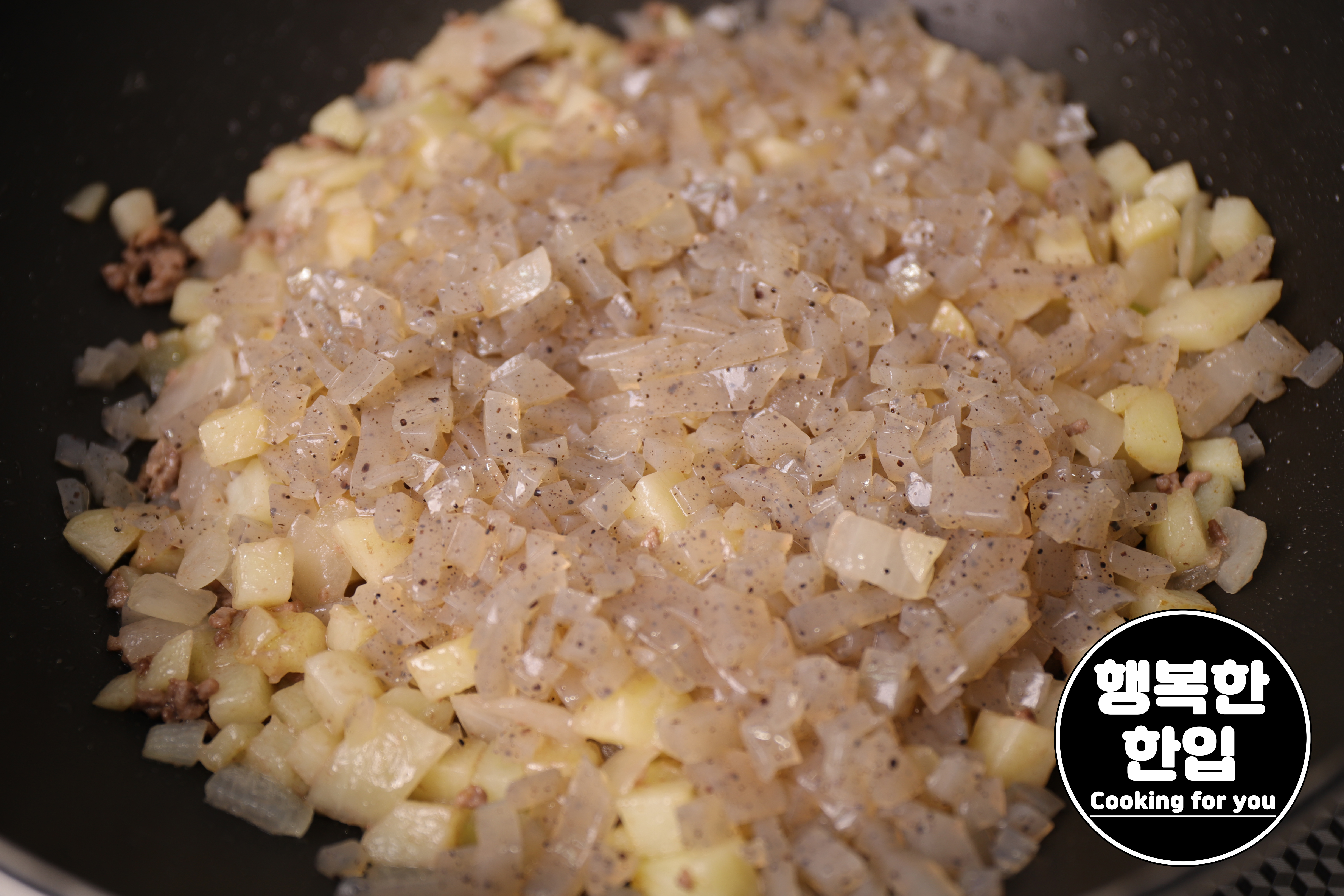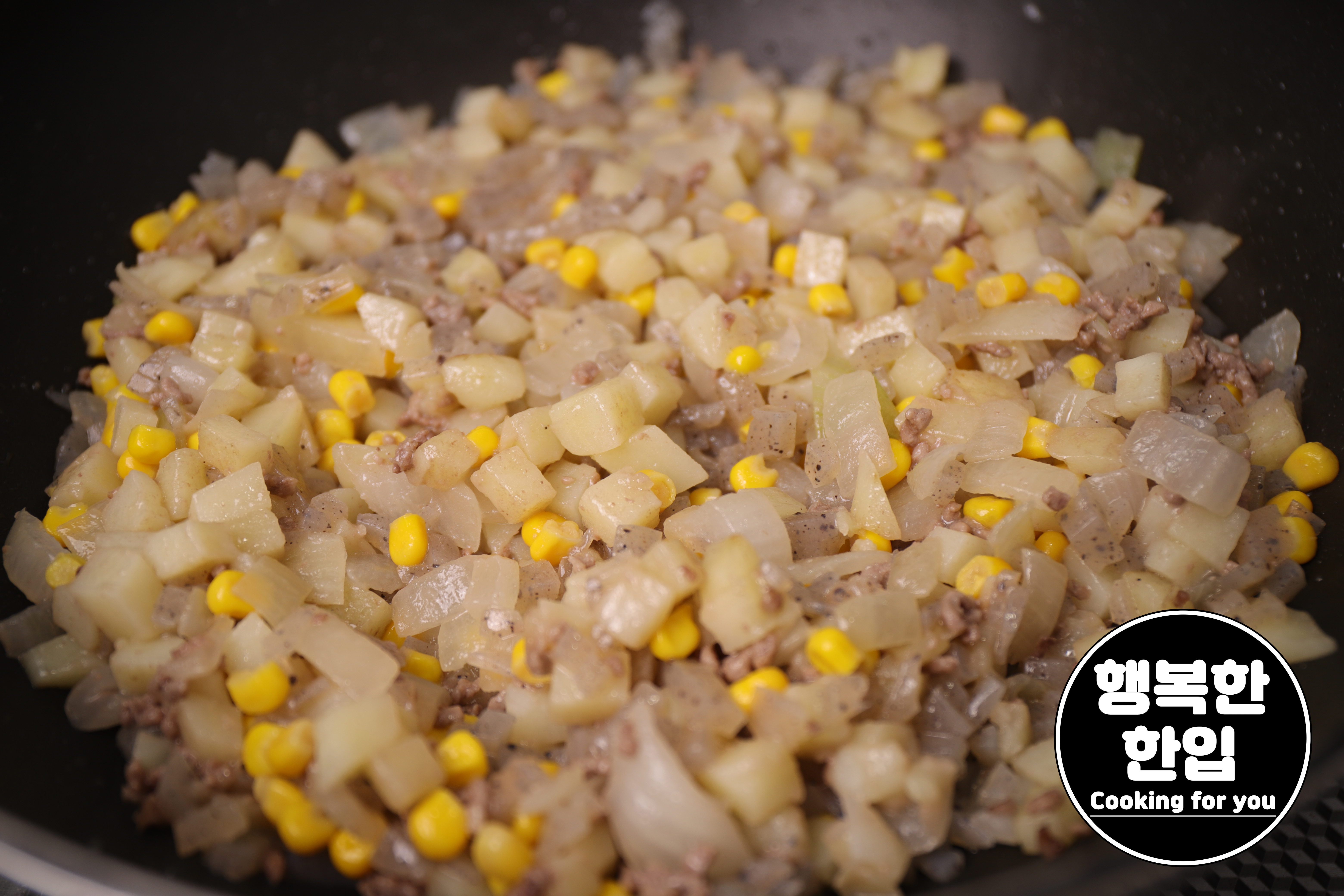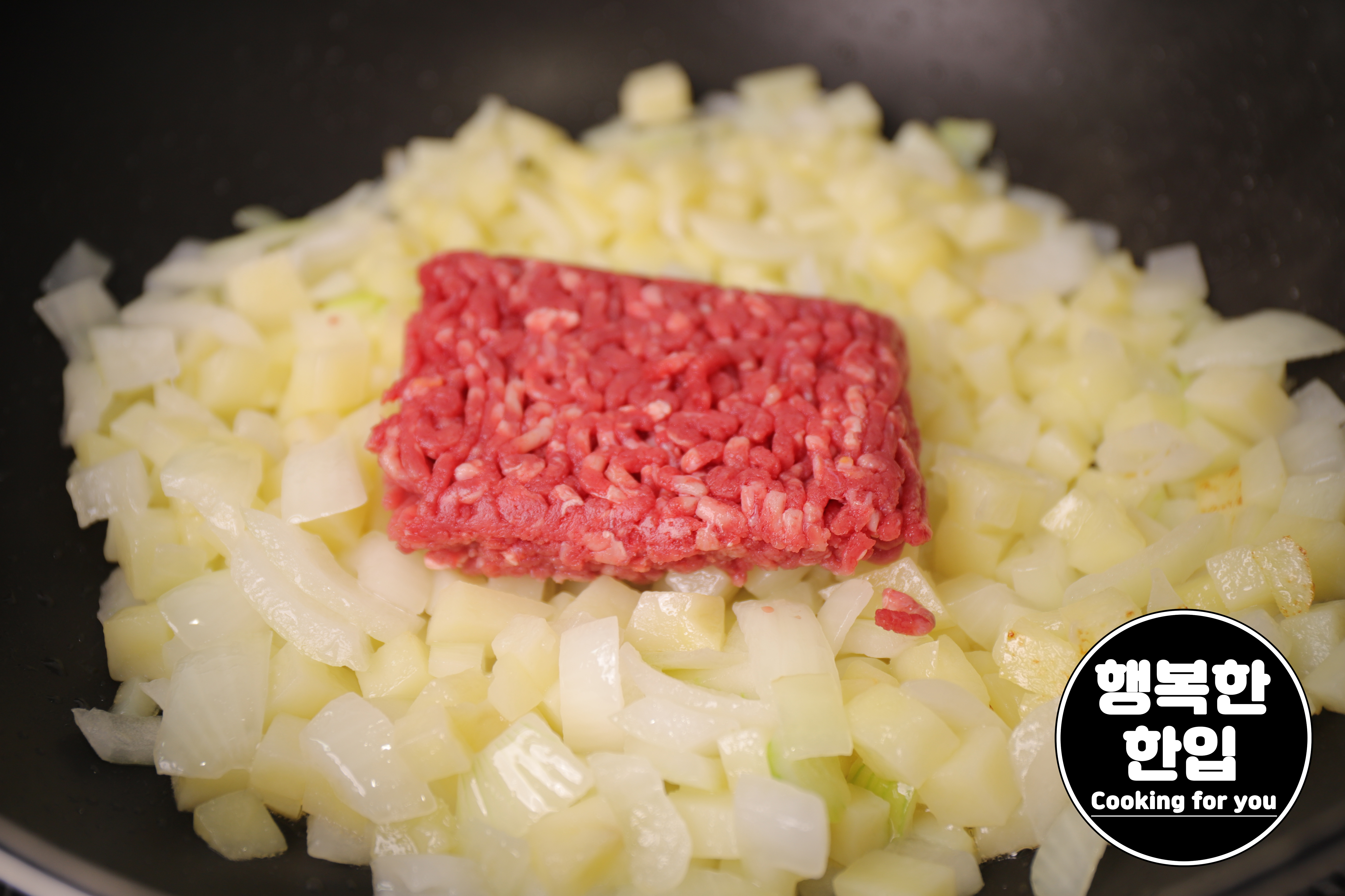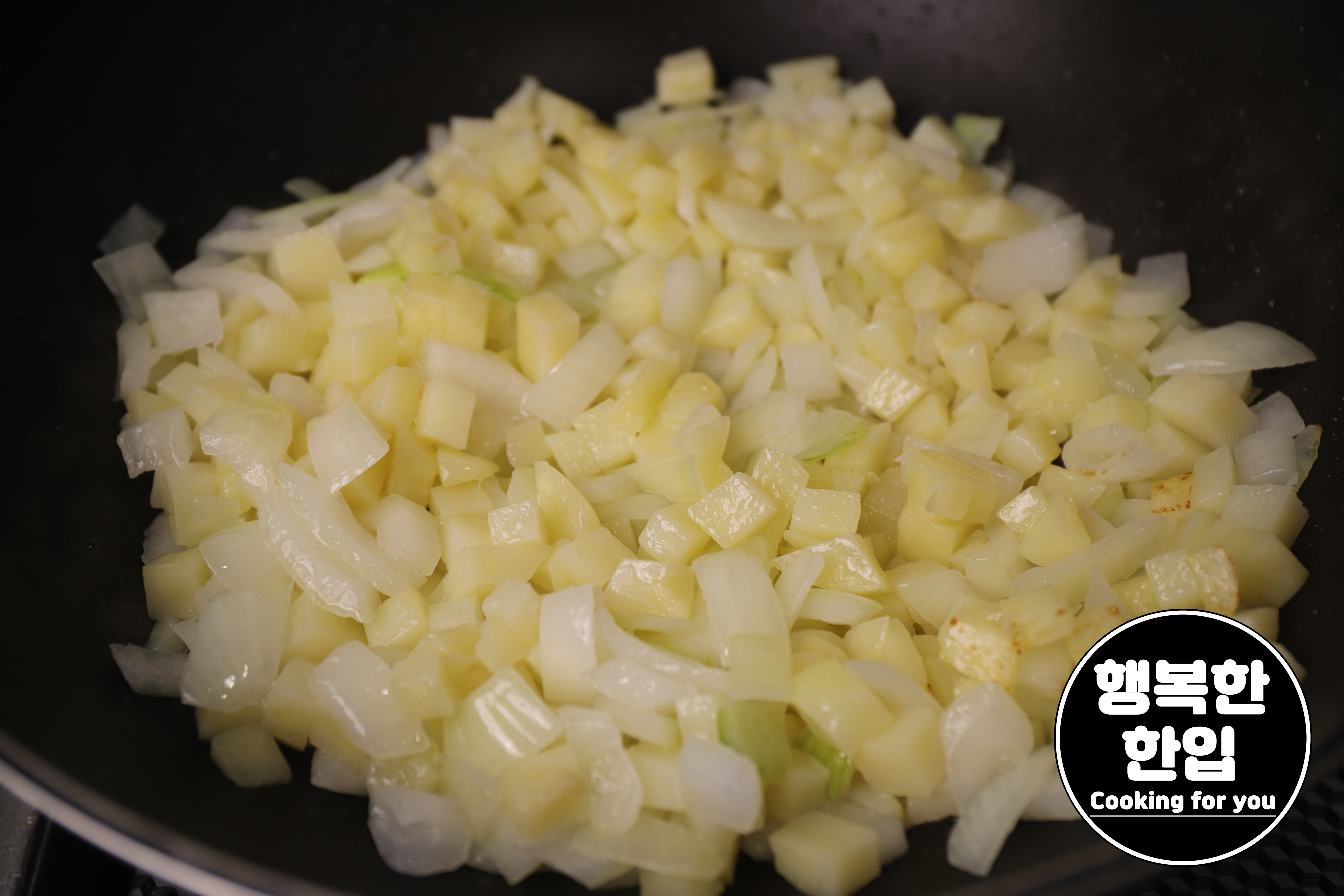 프라이팬에 식용유를 적당히 두르고 감자와 양파 순으로 볶아주세요.