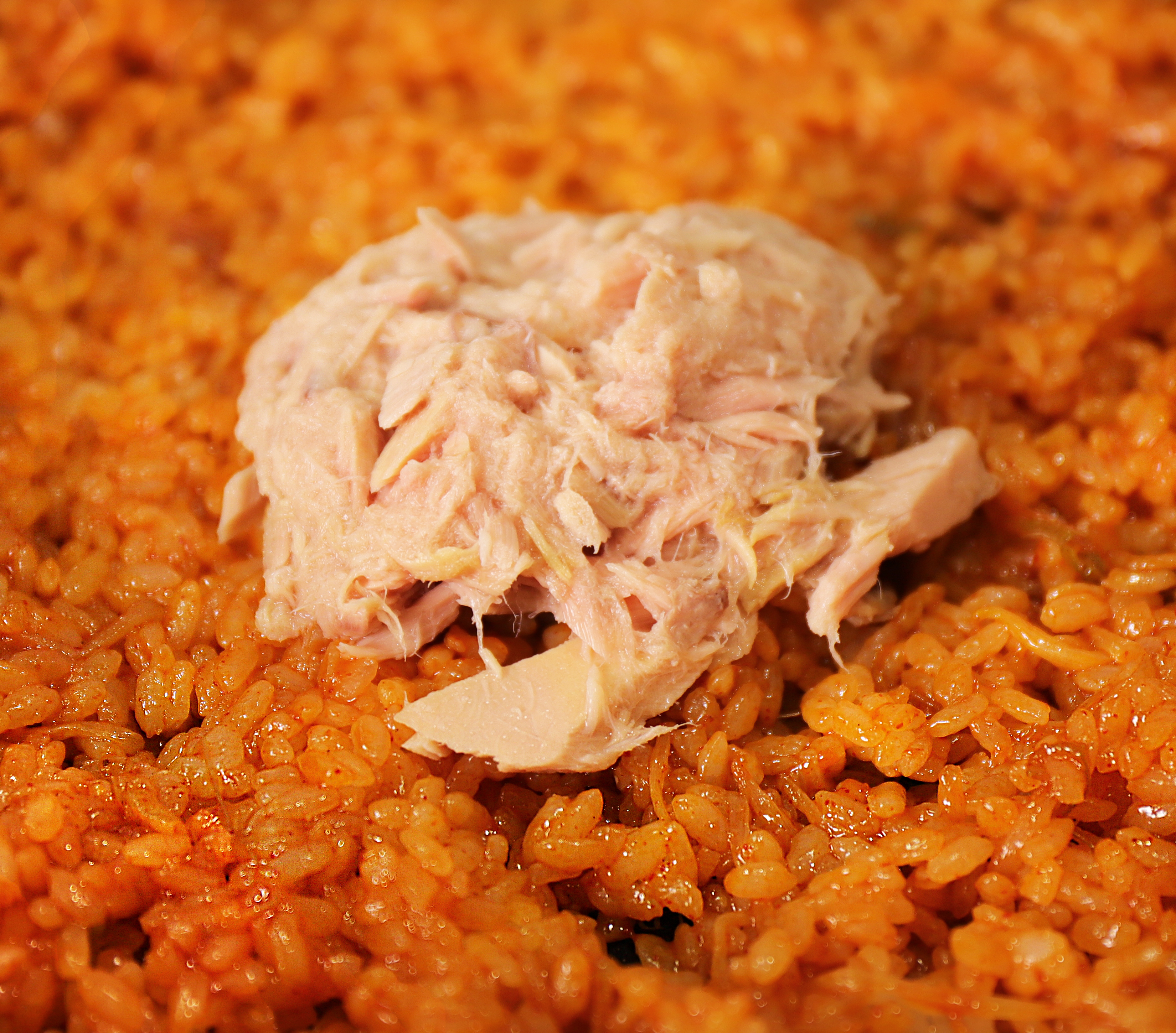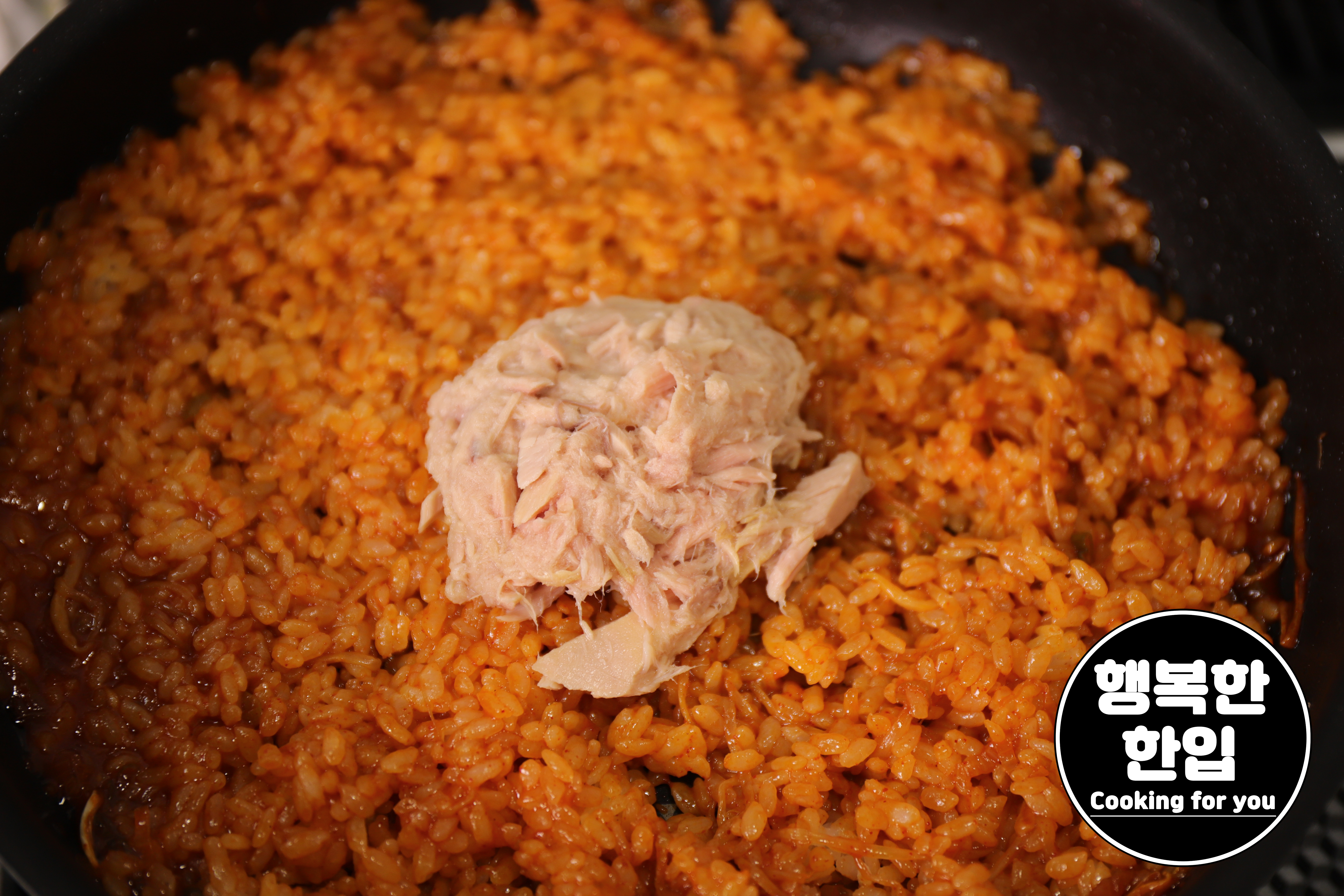 준비한 참치를 적당히 추가해서 담백함을 더해주고 매콤함을 살짝 달래주세요.