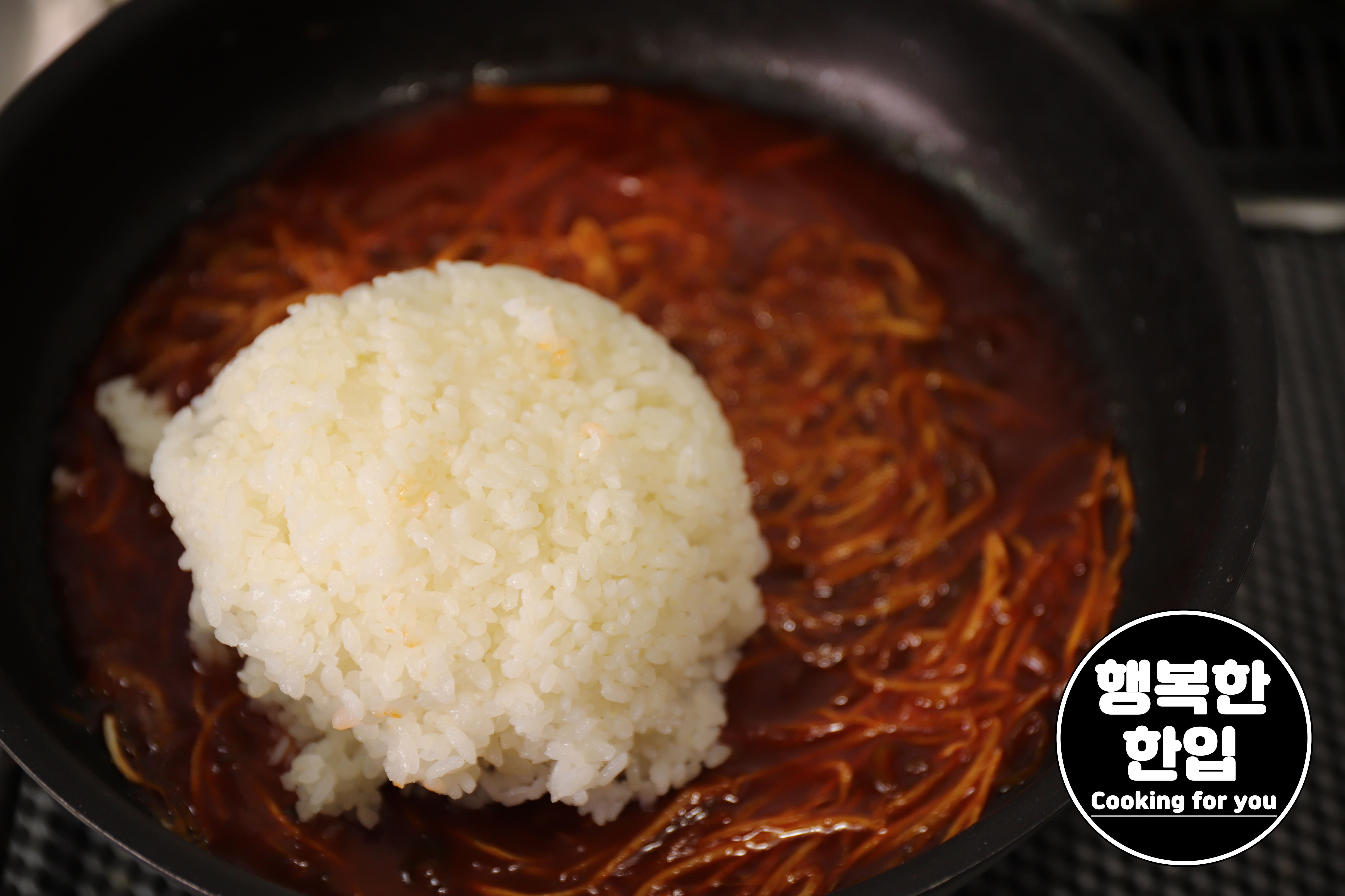 적당한 양의 밥을 추가해서 사정없이 비비고 섞어줍니다.