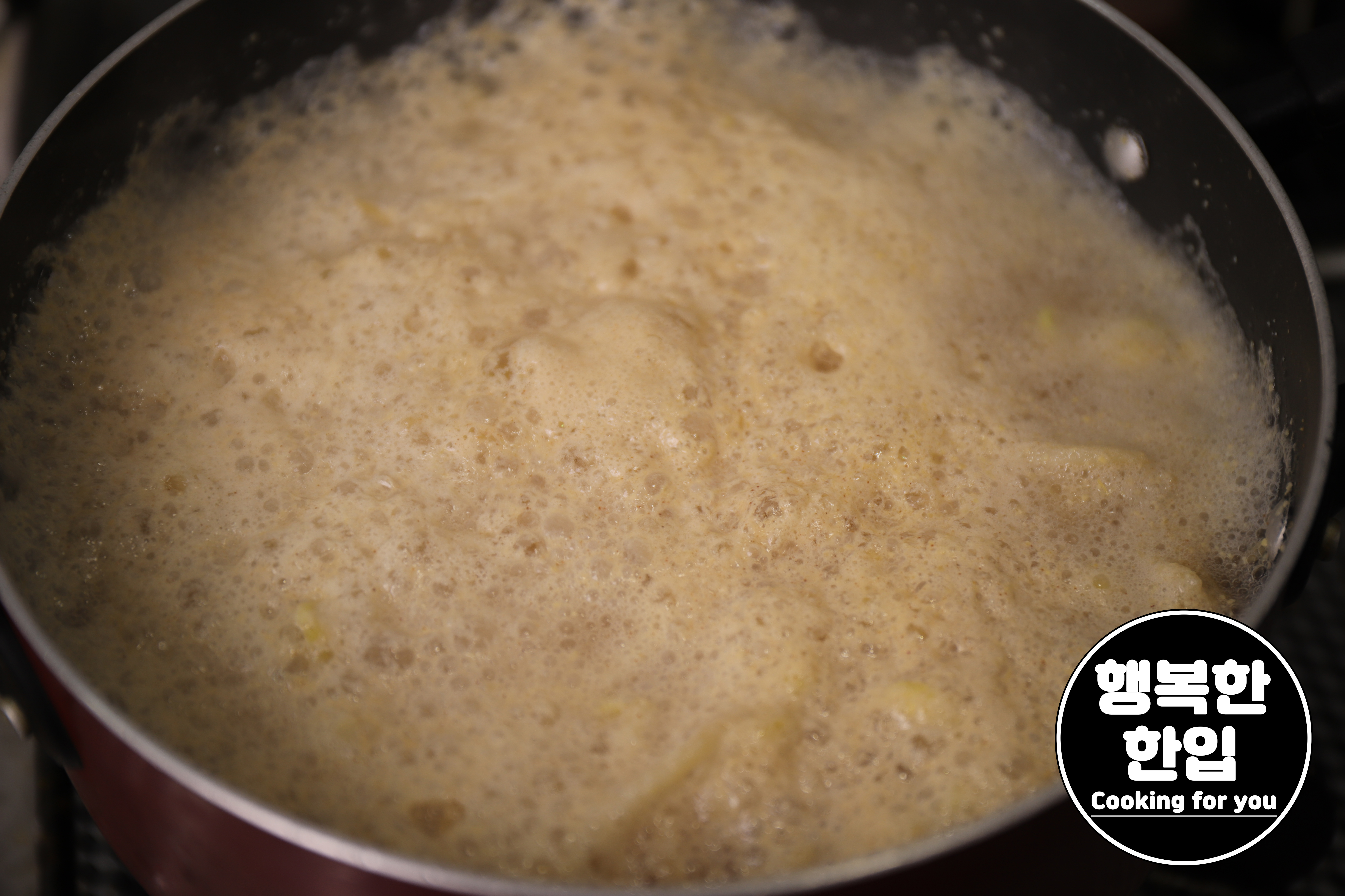 위로 떠오르는 거품과 불순물은 제거해주세요. (제거해주면 보다 깔끔하고 시원한 맛을 느낄 수 있습니다.)
