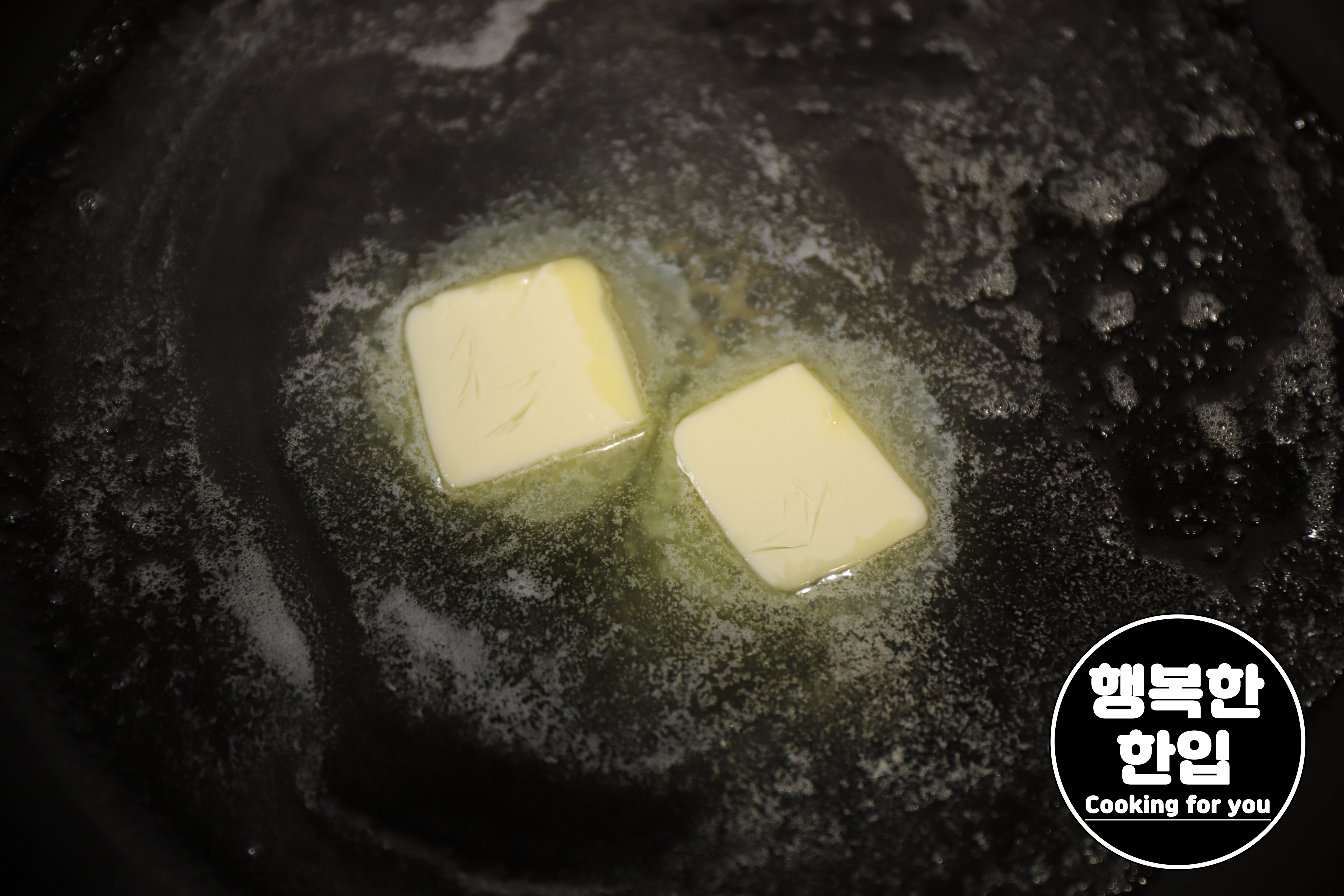 달구어진 프라이팬에 버터 15~20g정도를 넣고 녹여줍니다.